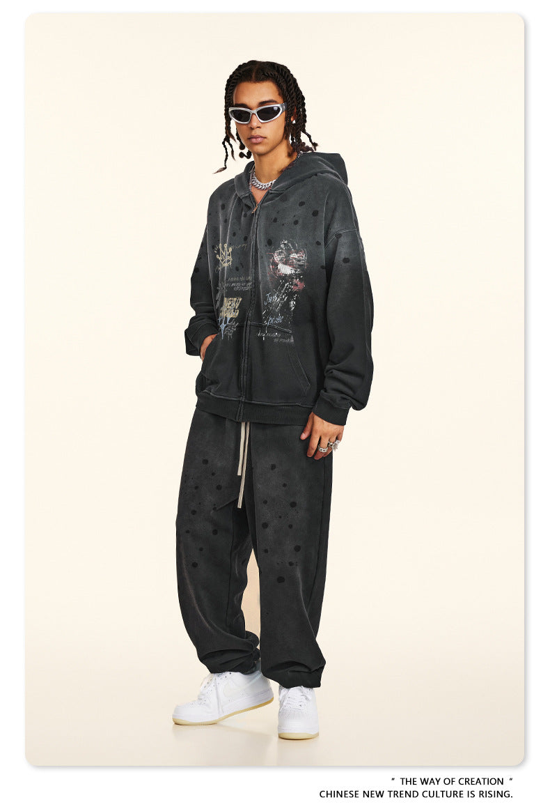 Graffiti Print Oversize Zipper Hoodie WN9936
