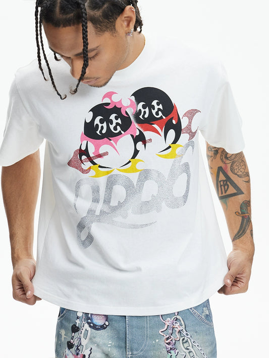 Graphic Rhinestone Design Short Sleeve T-Shirt WN17083