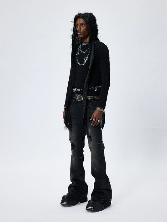 Washed Damage Stacked Stretch Flare Denim Jeans WN17054