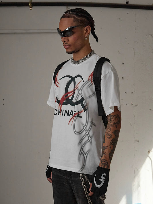 Cartoon Chain Print Stretch Short Sleeve T-Shirt WN17077