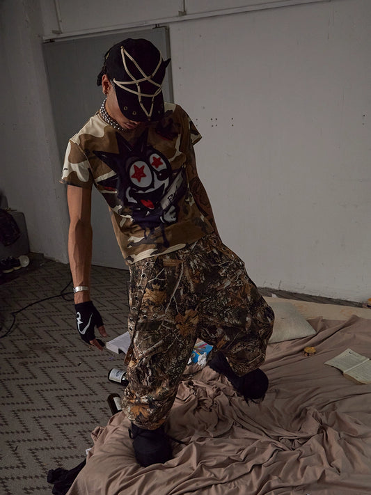 Detachable Belt Branch Camouflage Wide Leg Cargo Pants WN17044
