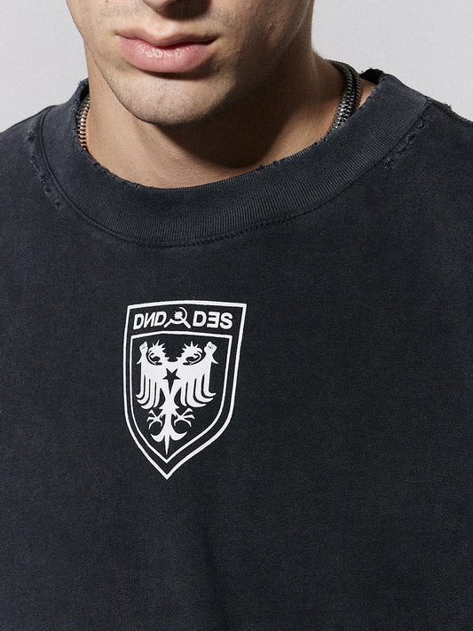 Badge Print Washed Damage Short Sleeve T-Shirt WN17023