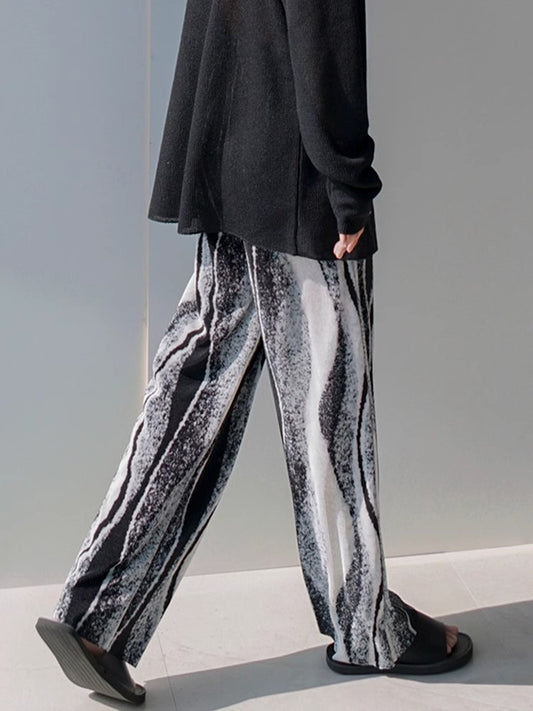 Plan Elastic Waist Wide-Leg Straight Pants WN7406