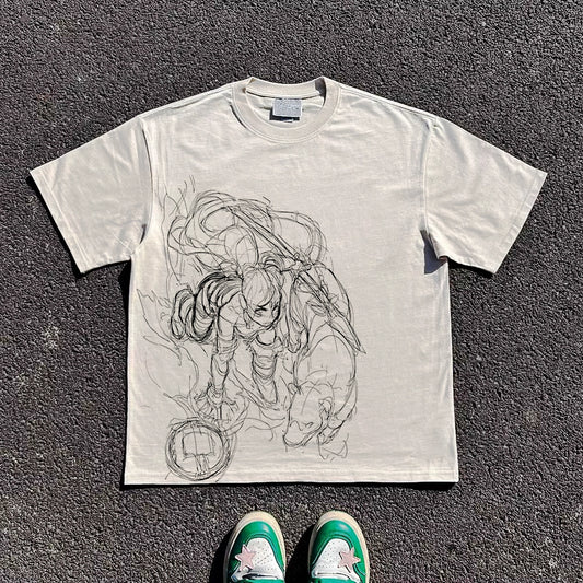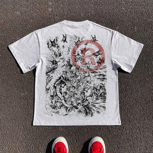 Breathable Graphic Print Oversize Short Sleeve T-Shirt WN16668