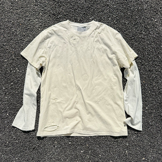 Fake Layered Damage Oversize Long Sleeve T-Shirt WN16694