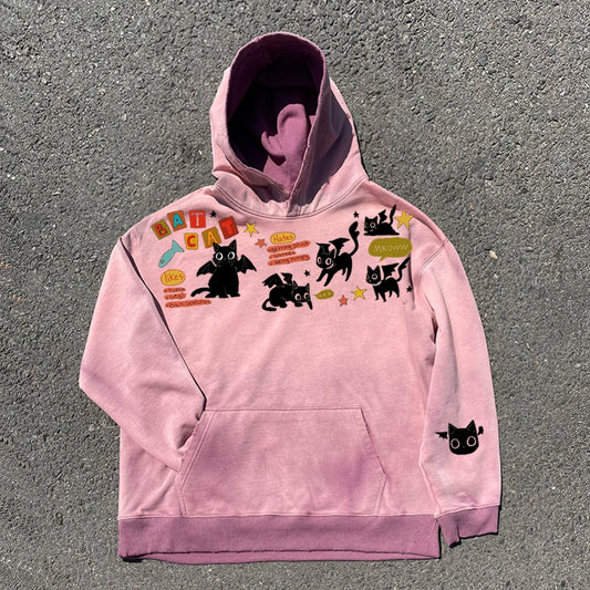 Cartoon Cat Print Heavyweight Hoodie WN16684