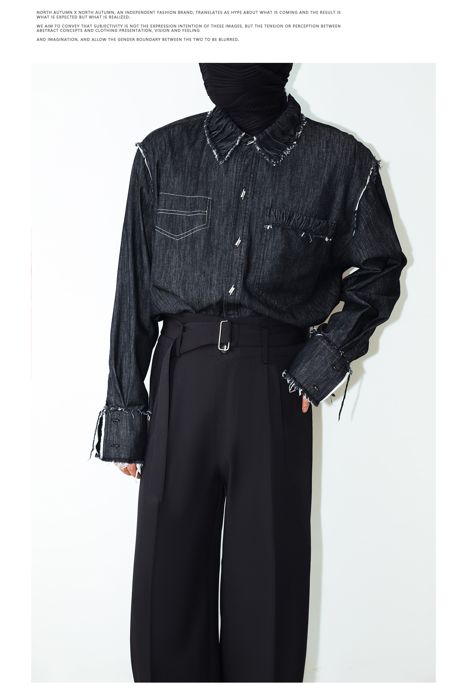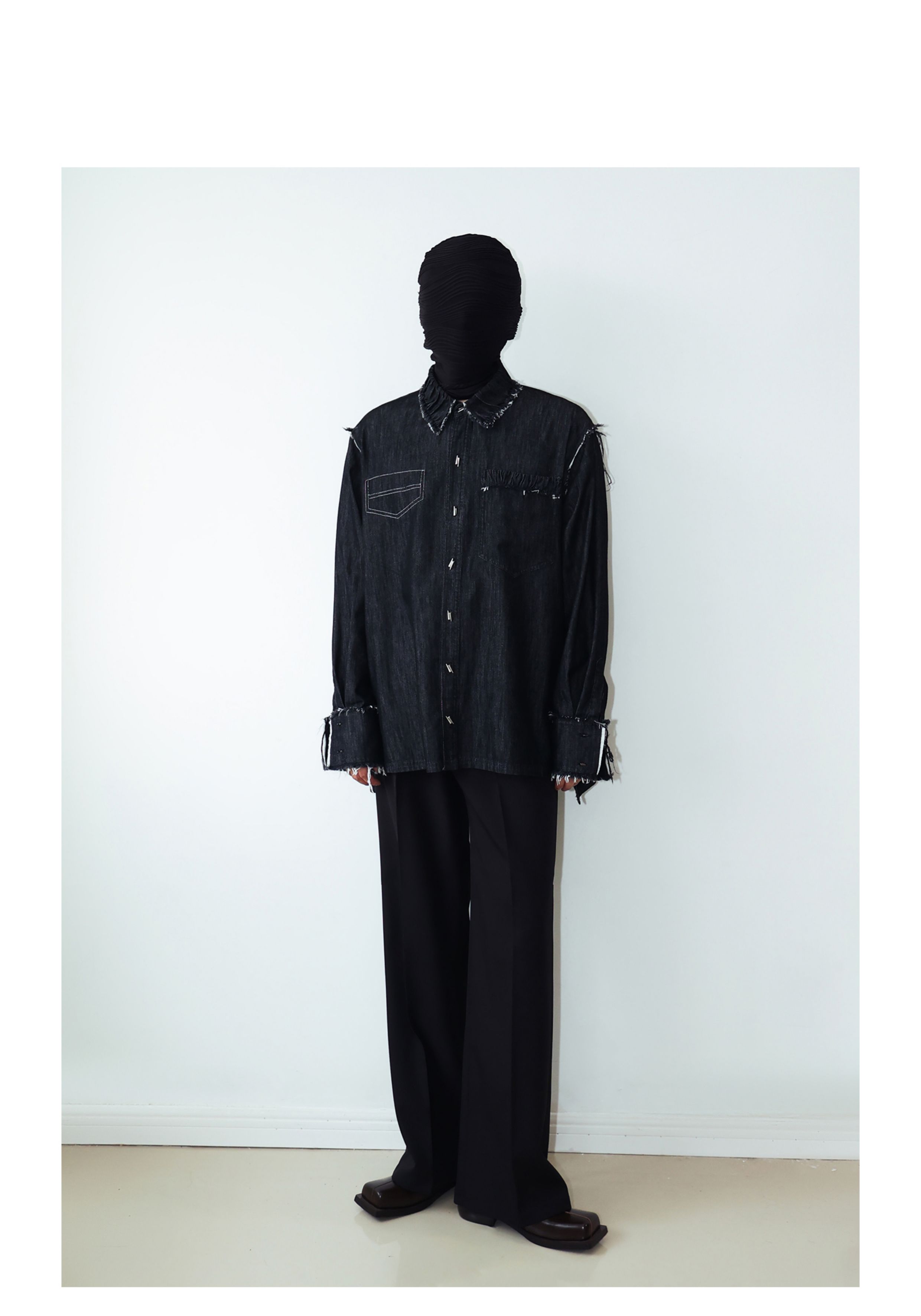 Raw Edge Oversize Long Sleeve Shirt WN11828