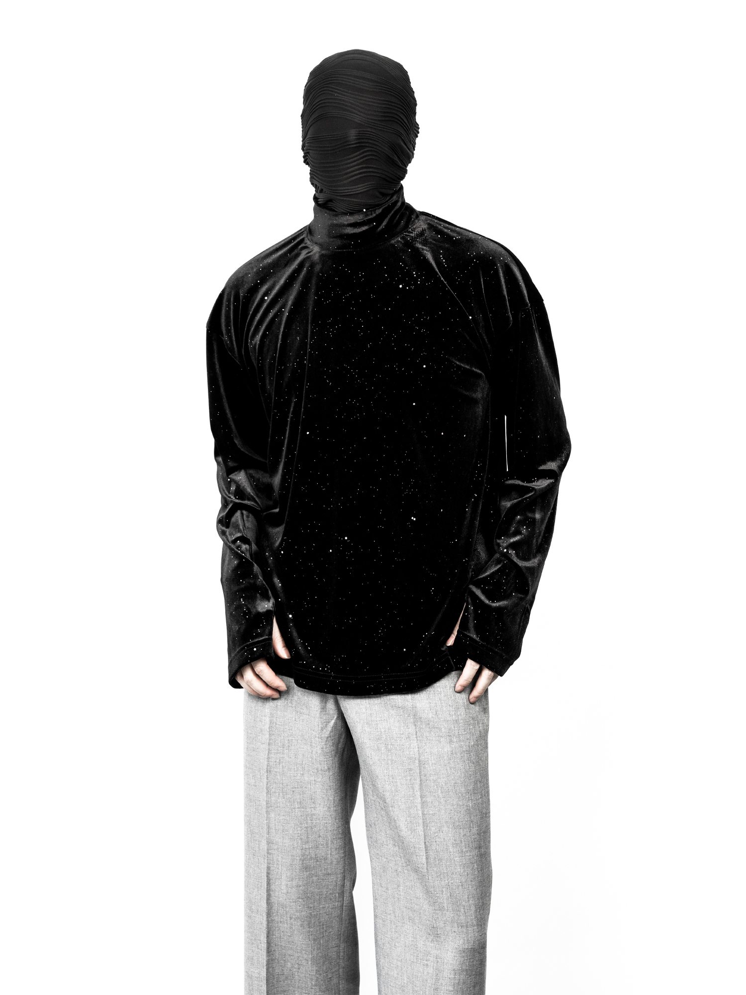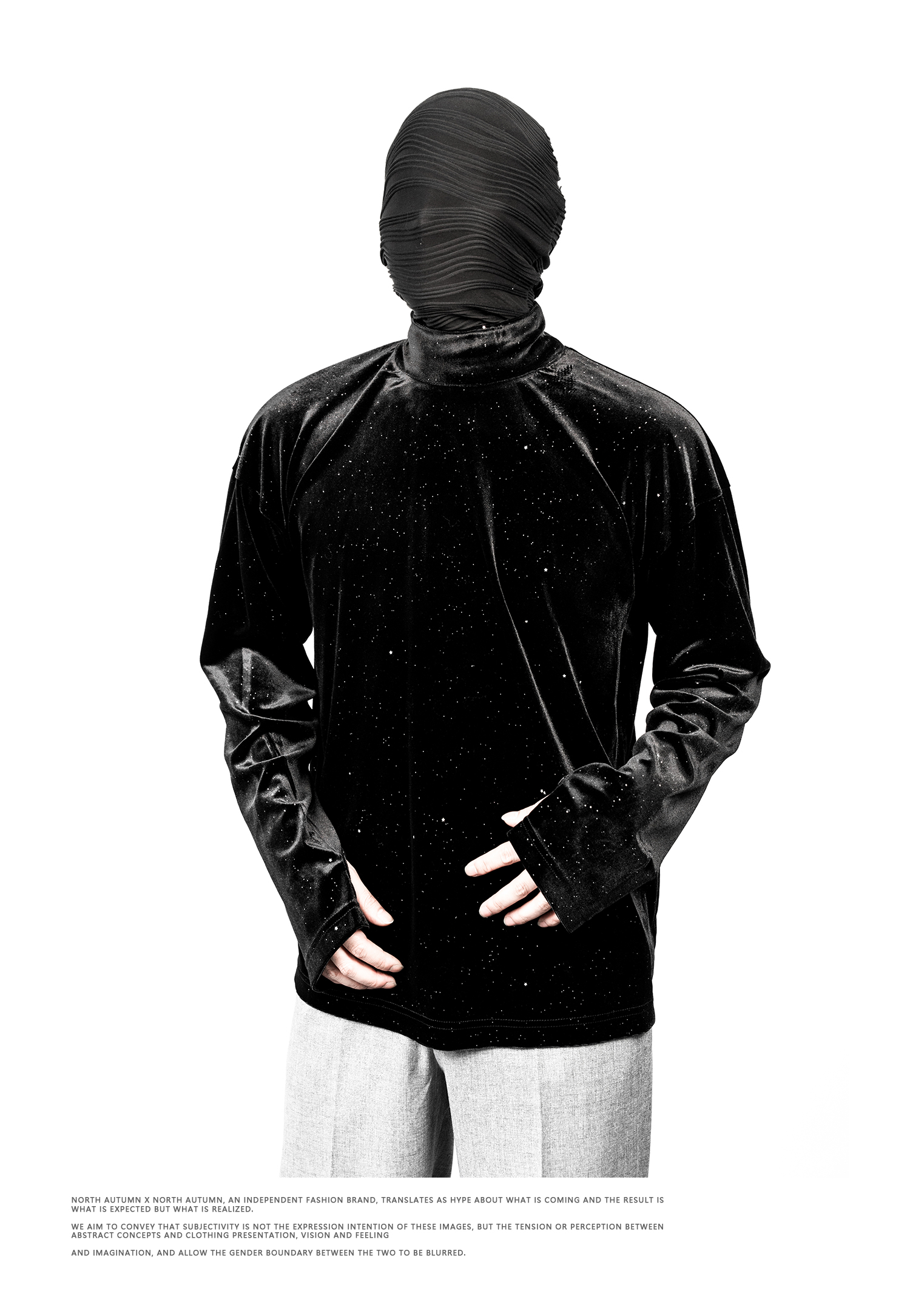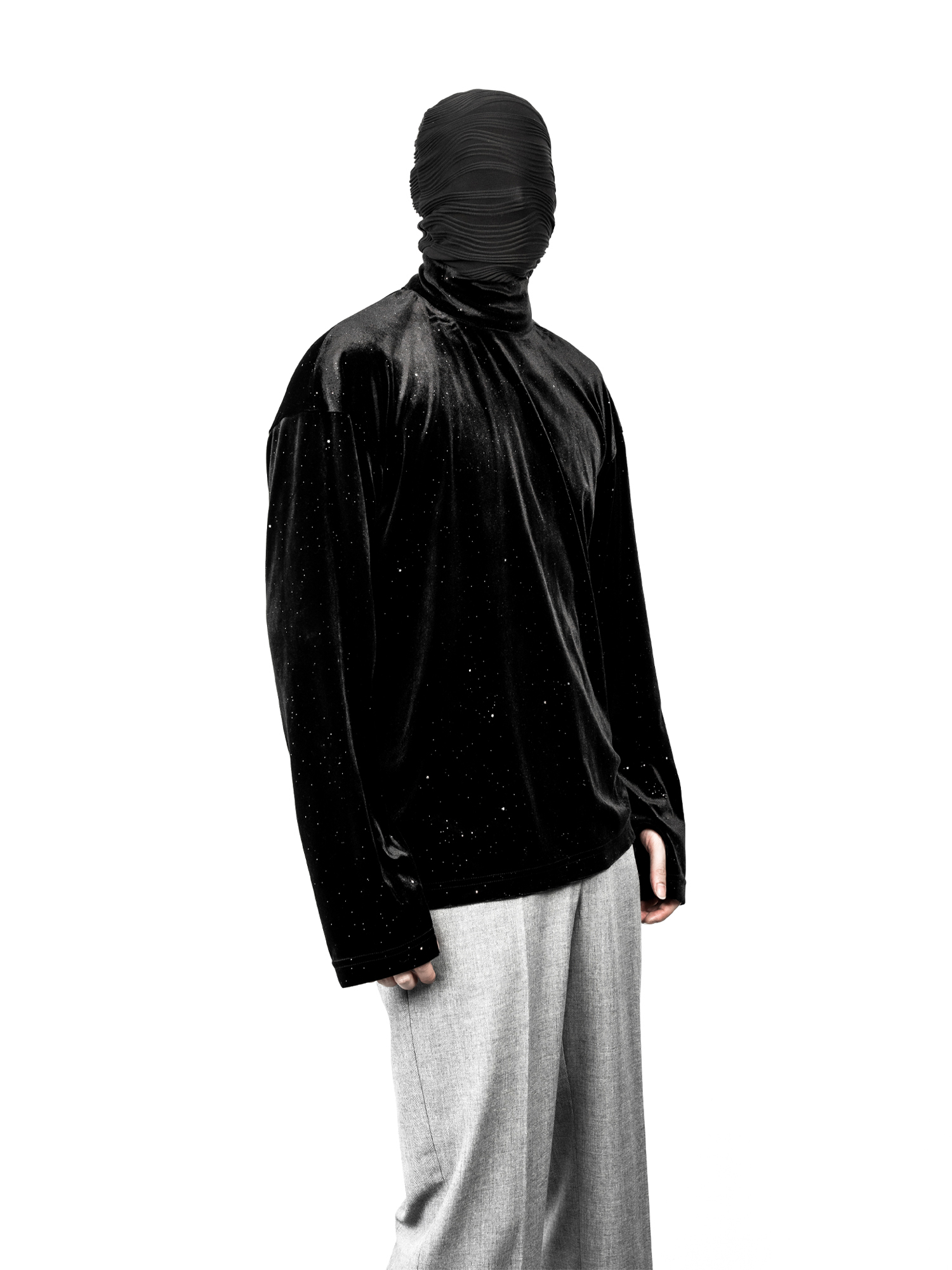 Velvet High-Neck Long Sleeve T-Shirt WN11894