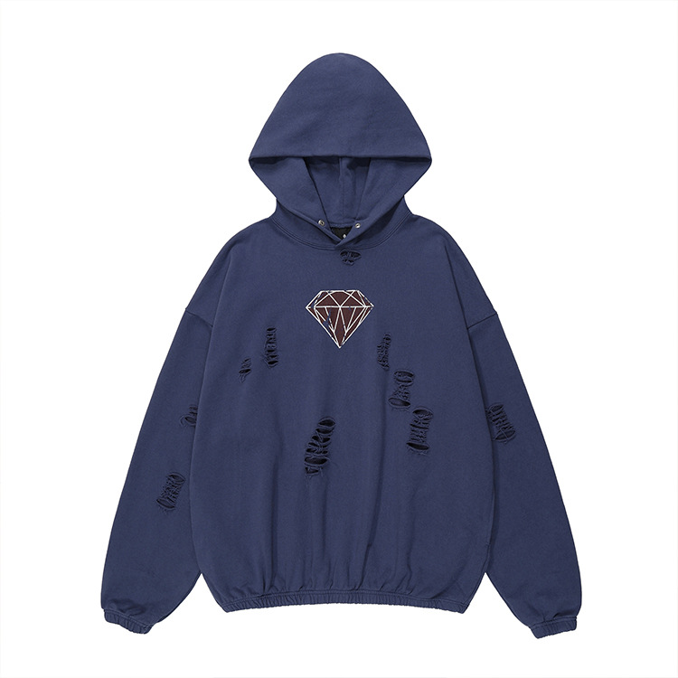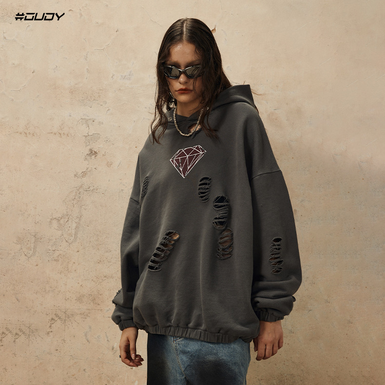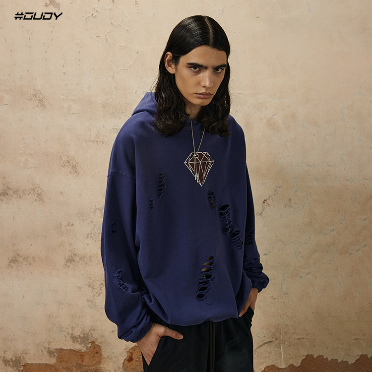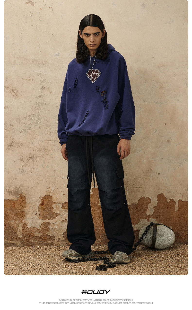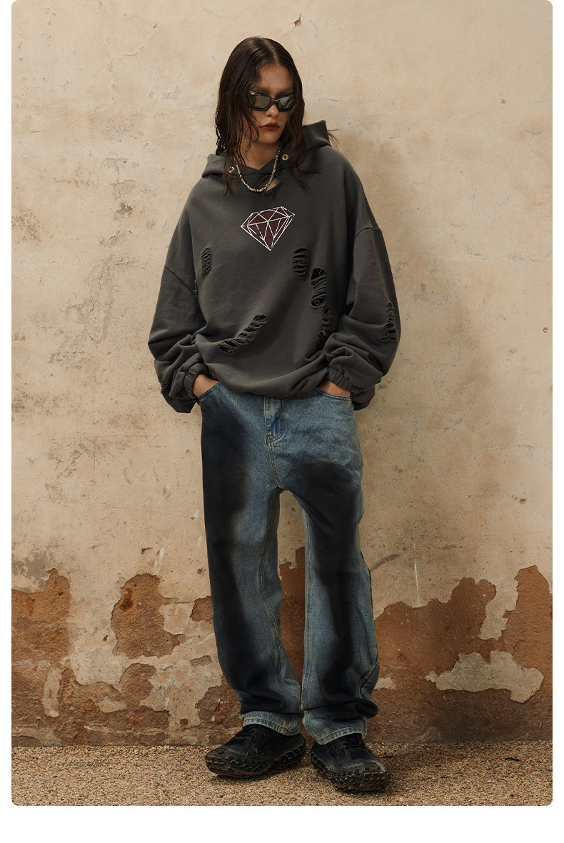 Handcrafted Damage Oversize Pullover Hoodie WN12329