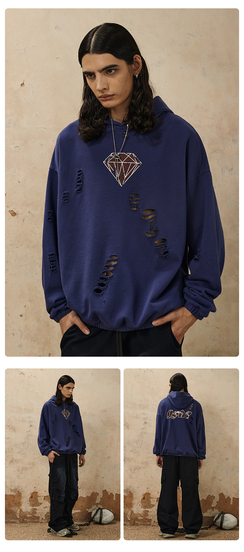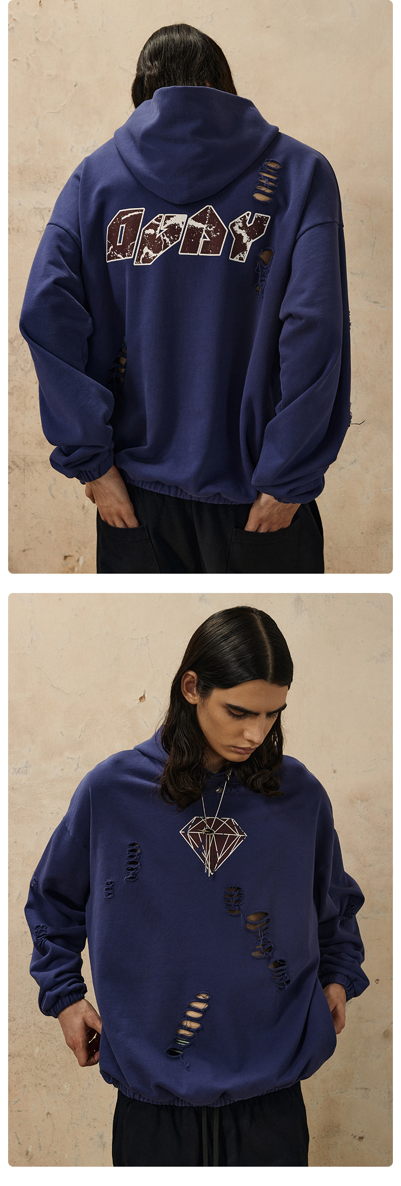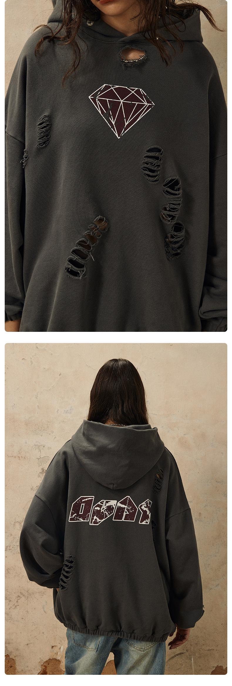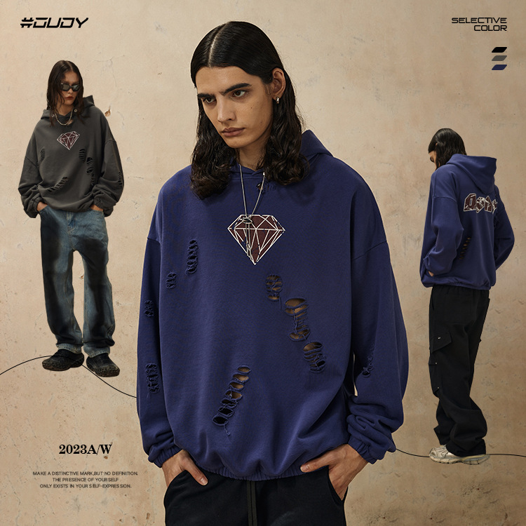 Handcrafted Damage Oversize Pullover Hoodie WN12329