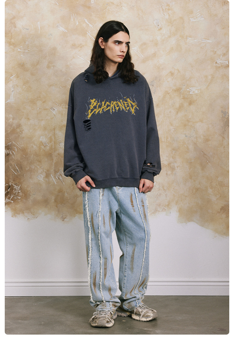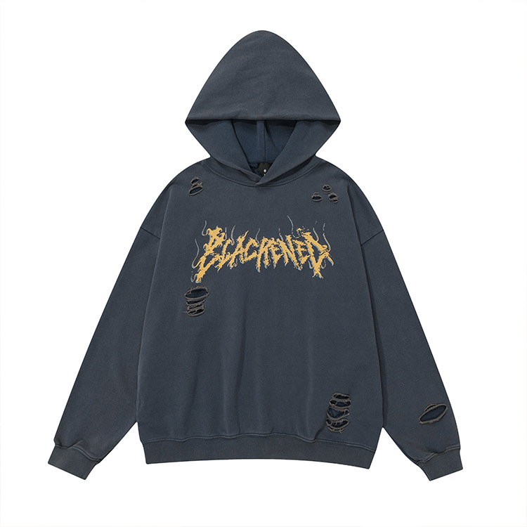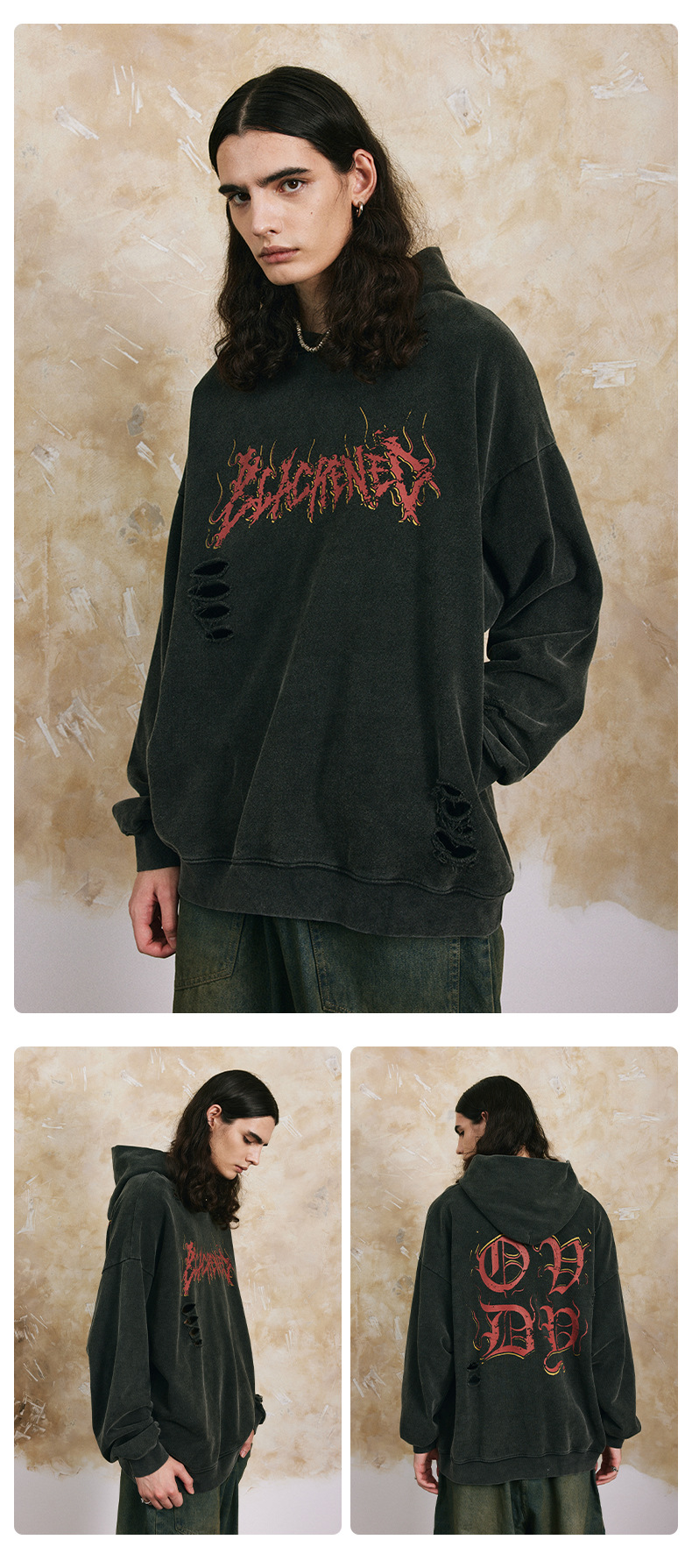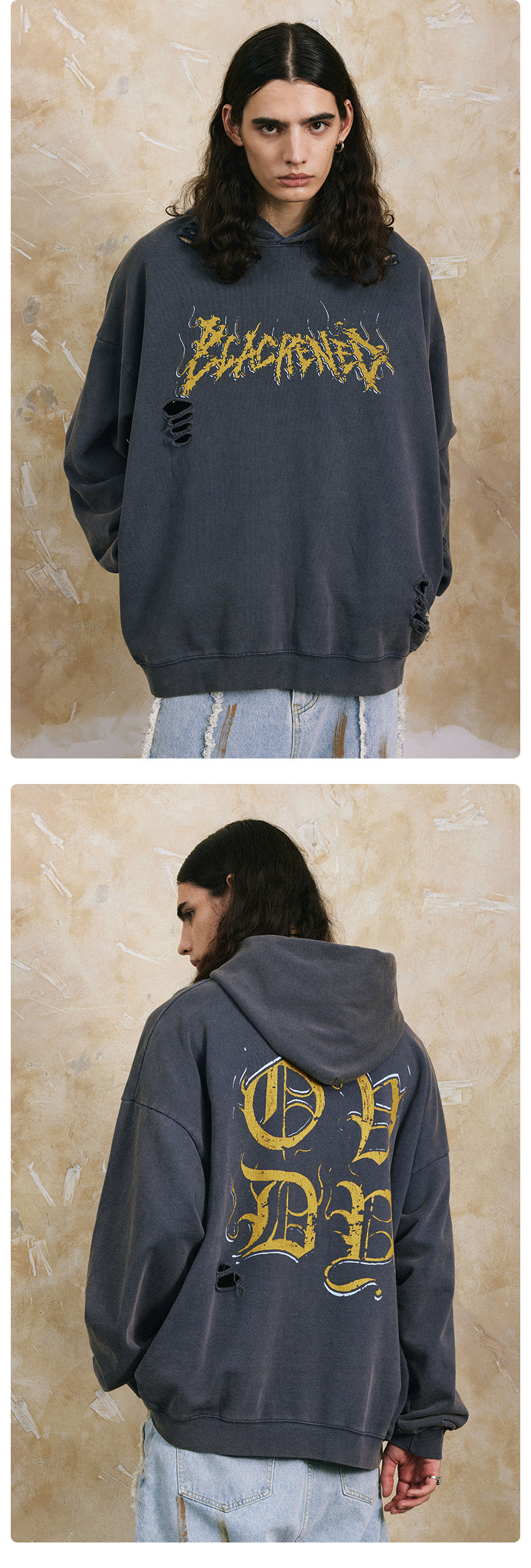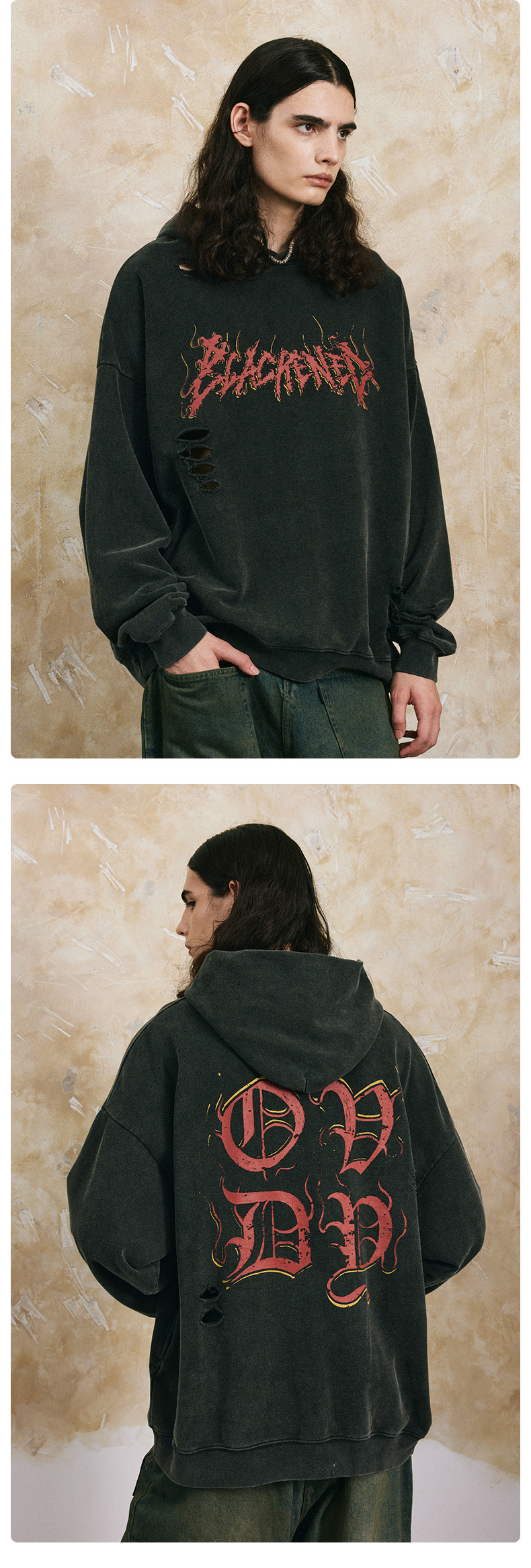Washed Damage Fleece Linning Pullover Hoodie WN12552