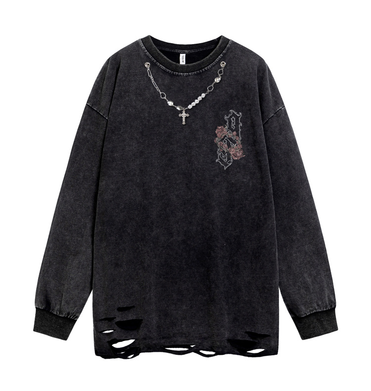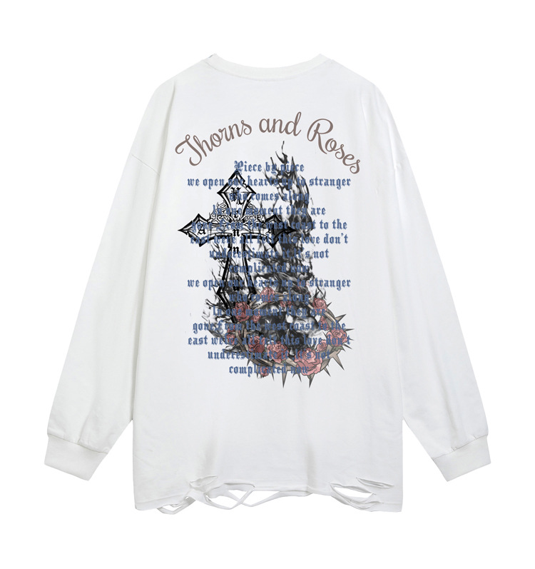 Oversize Cross Graphic Letter Print Damage Long Sleeve T-Shirt WN16494