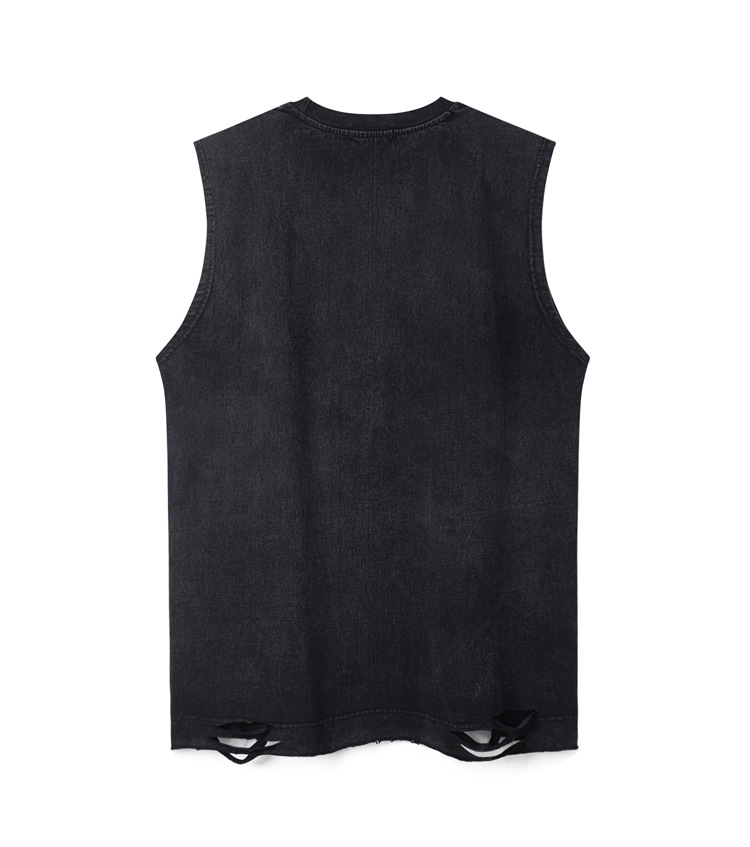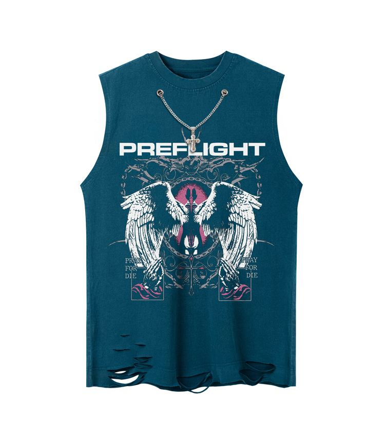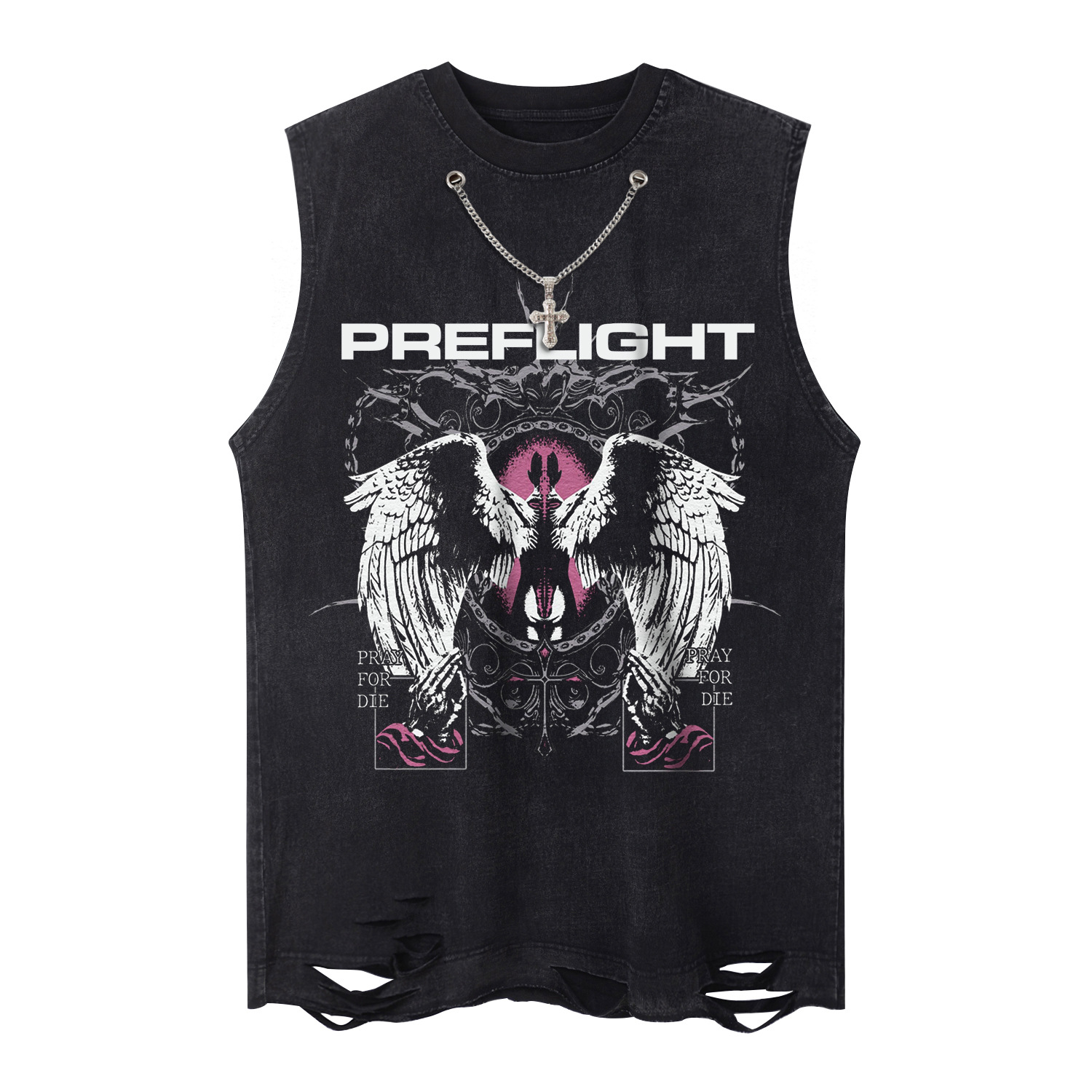 Oversize Wing Print Washed Damage Tank Top WN16500