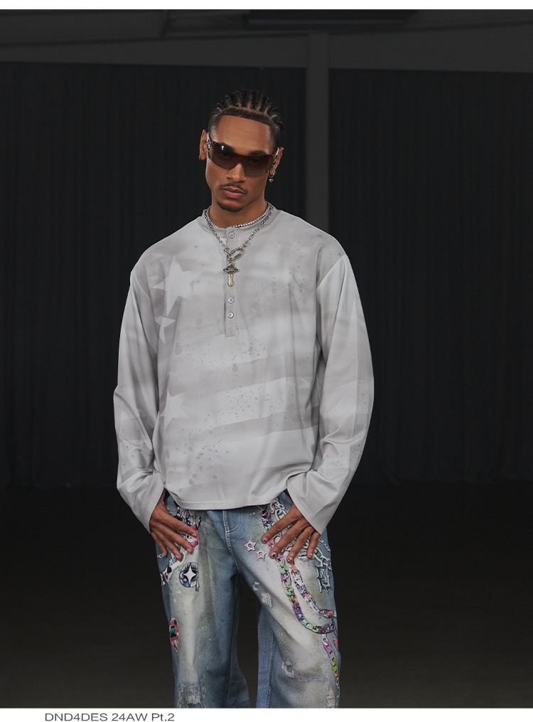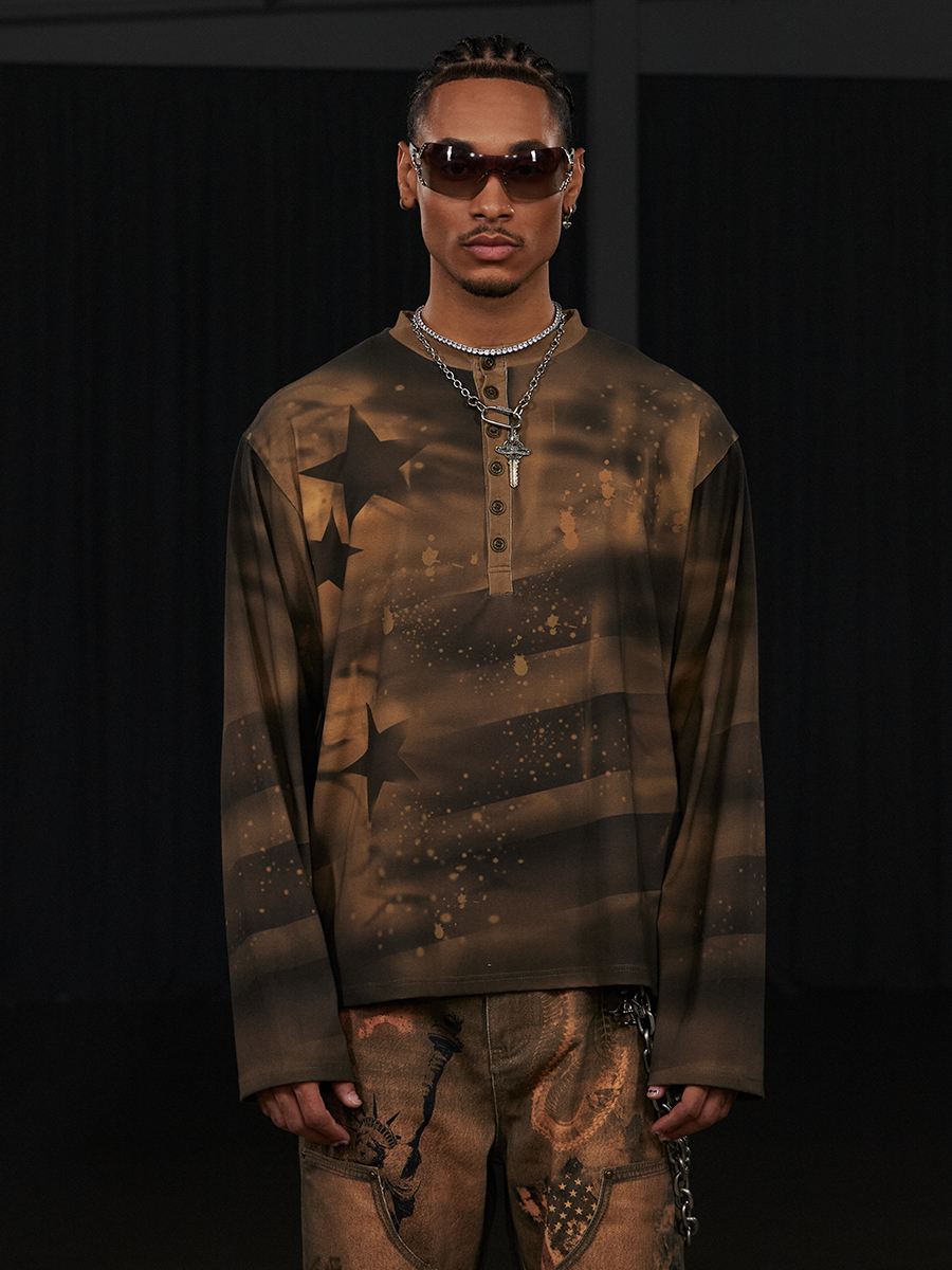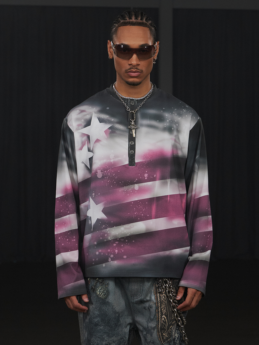Graffiti Star Print Long Sleeve T-Shirt WN17146