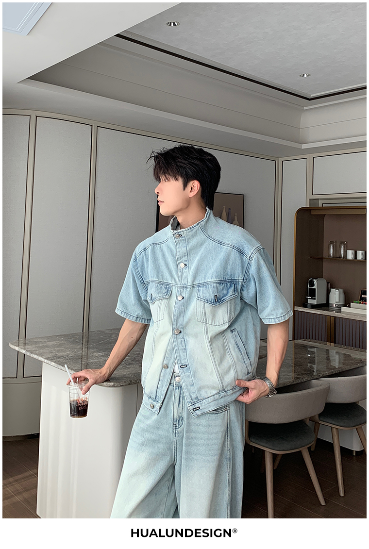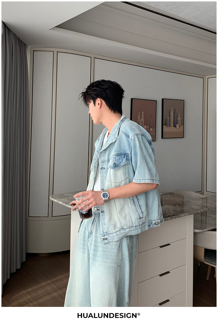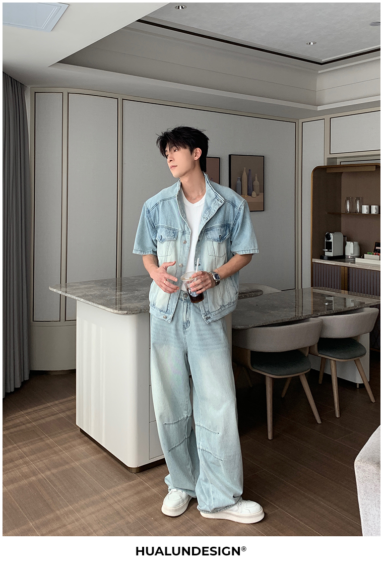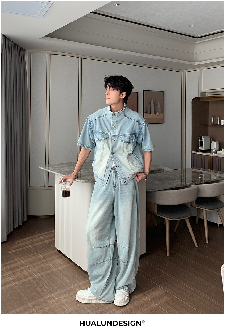 Denim Shirt Jacket & Wide Leg Denim Jeans Setup WN20451