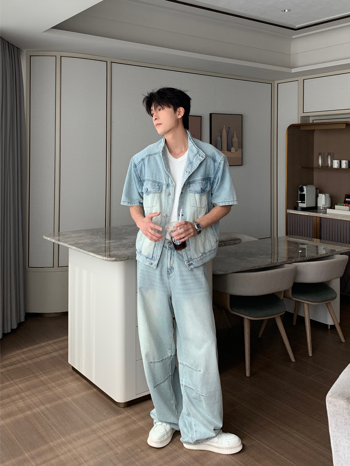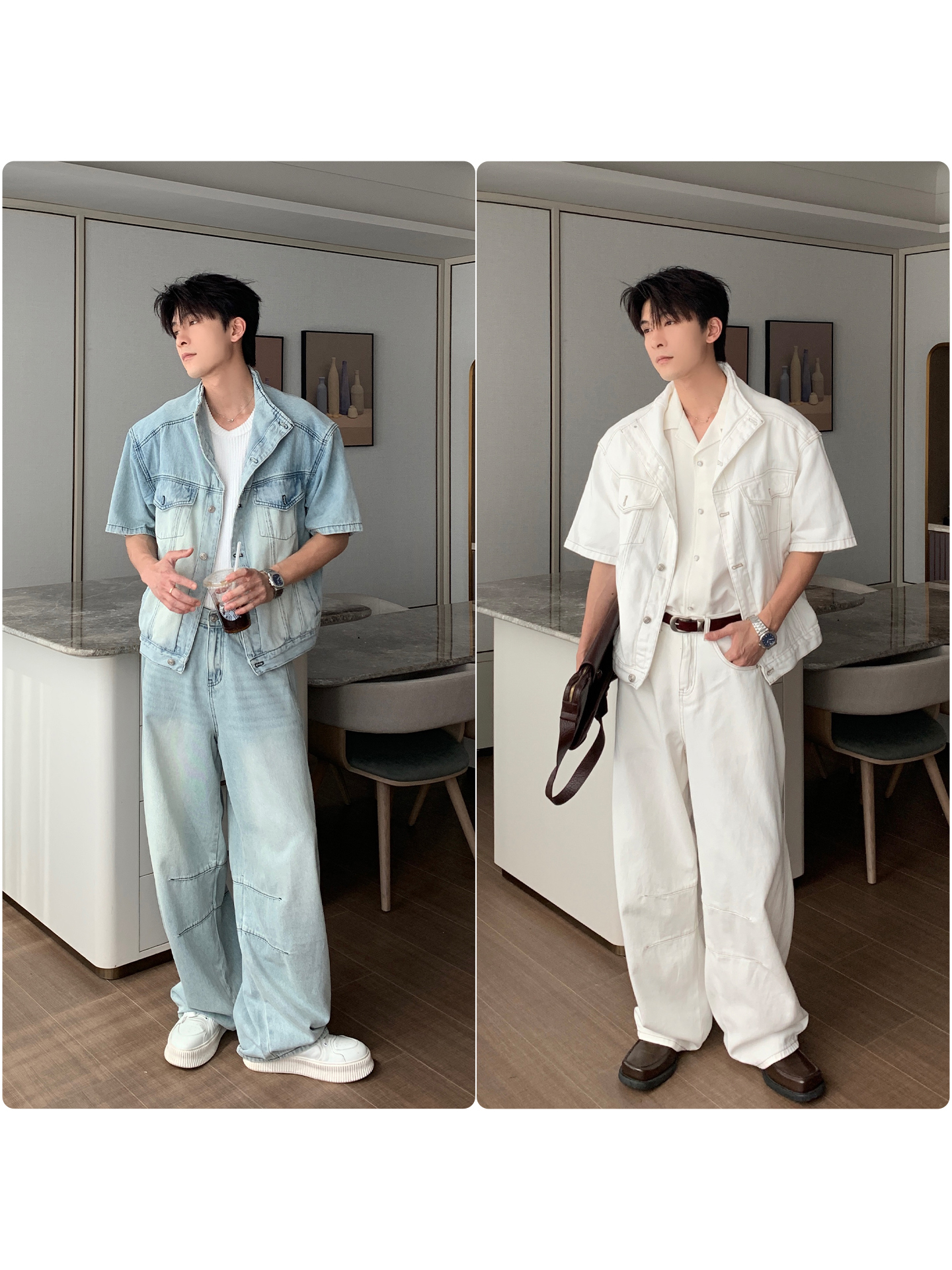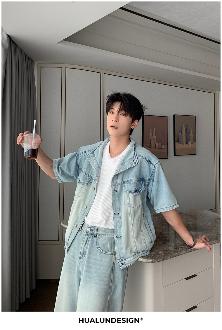 Denim Shirt Jacket & Wide Leg Denim Jeans Setup WN20451