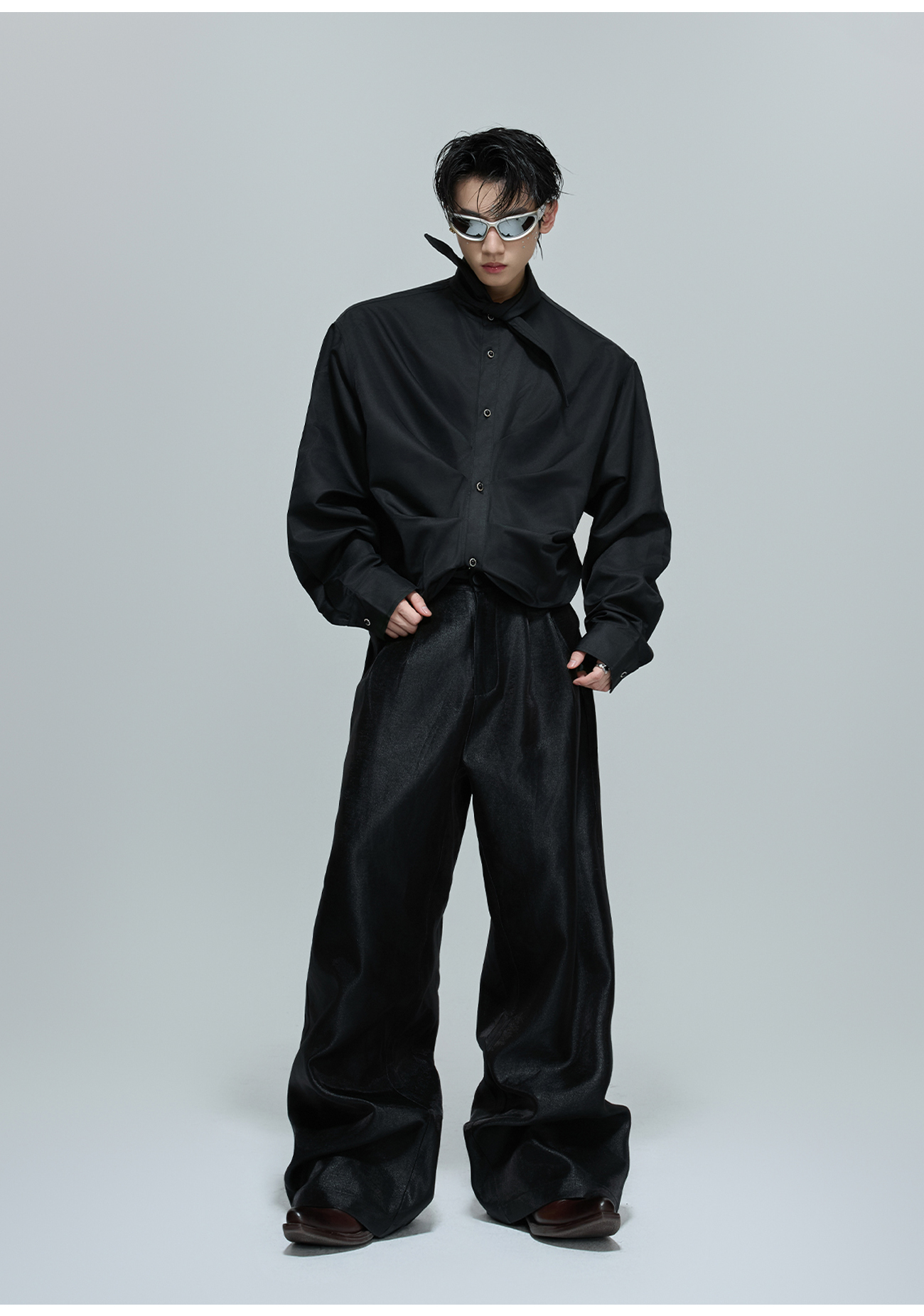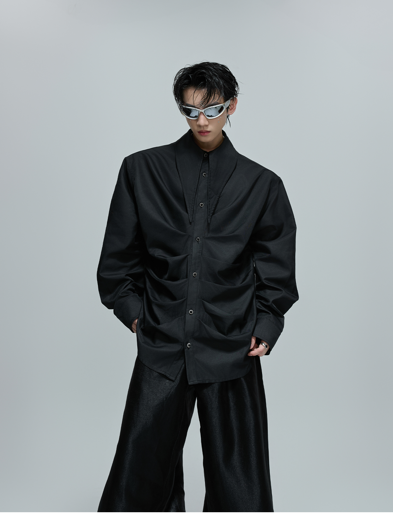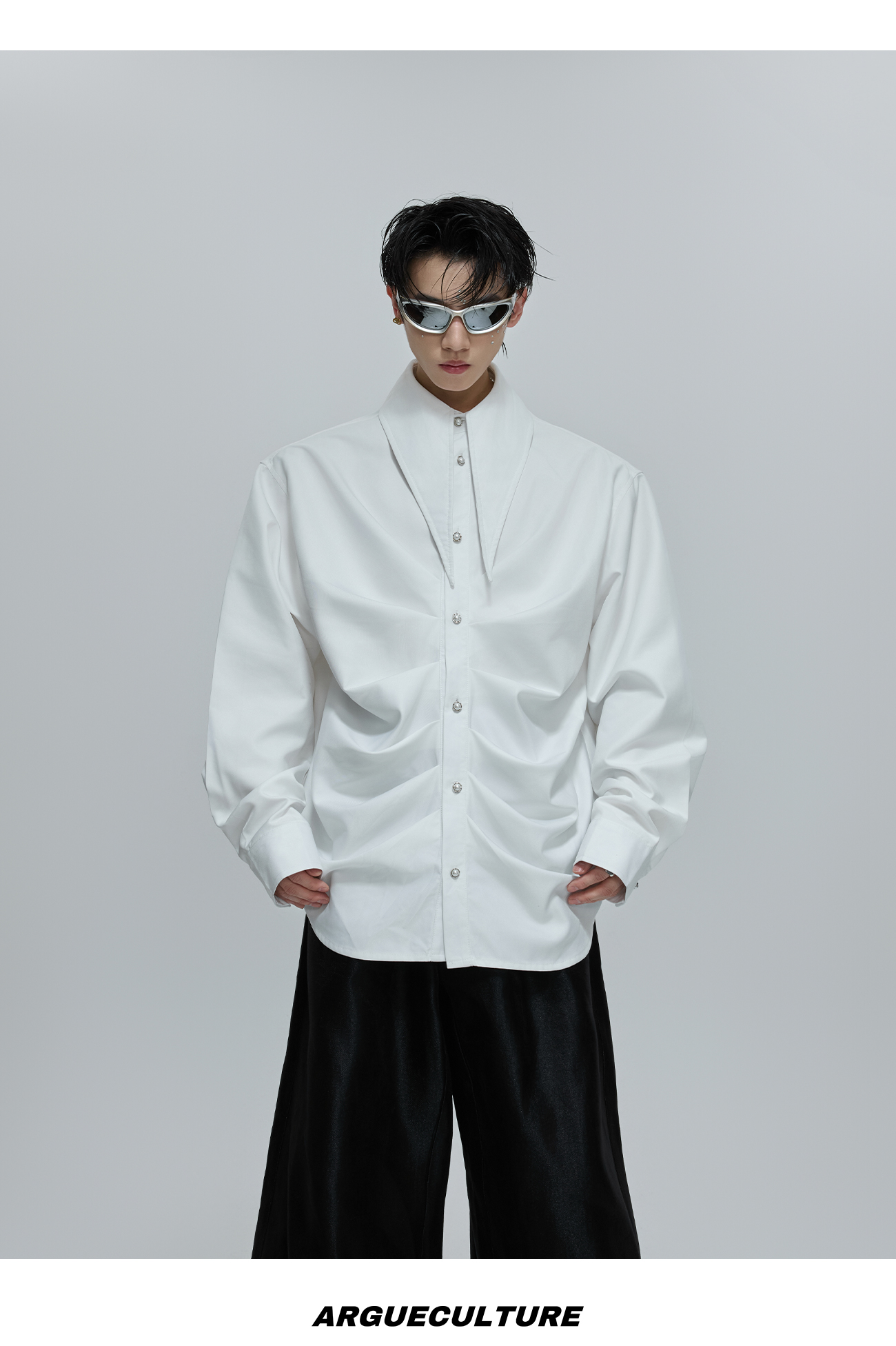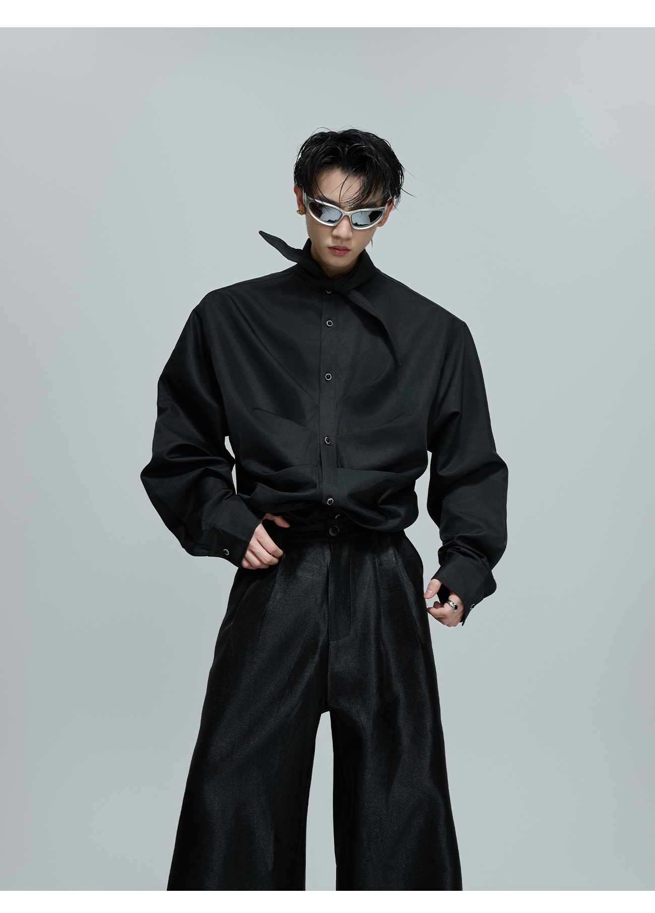 Deconstructed Pleats Scarf Collar Long Sleeve Shirt WN21697