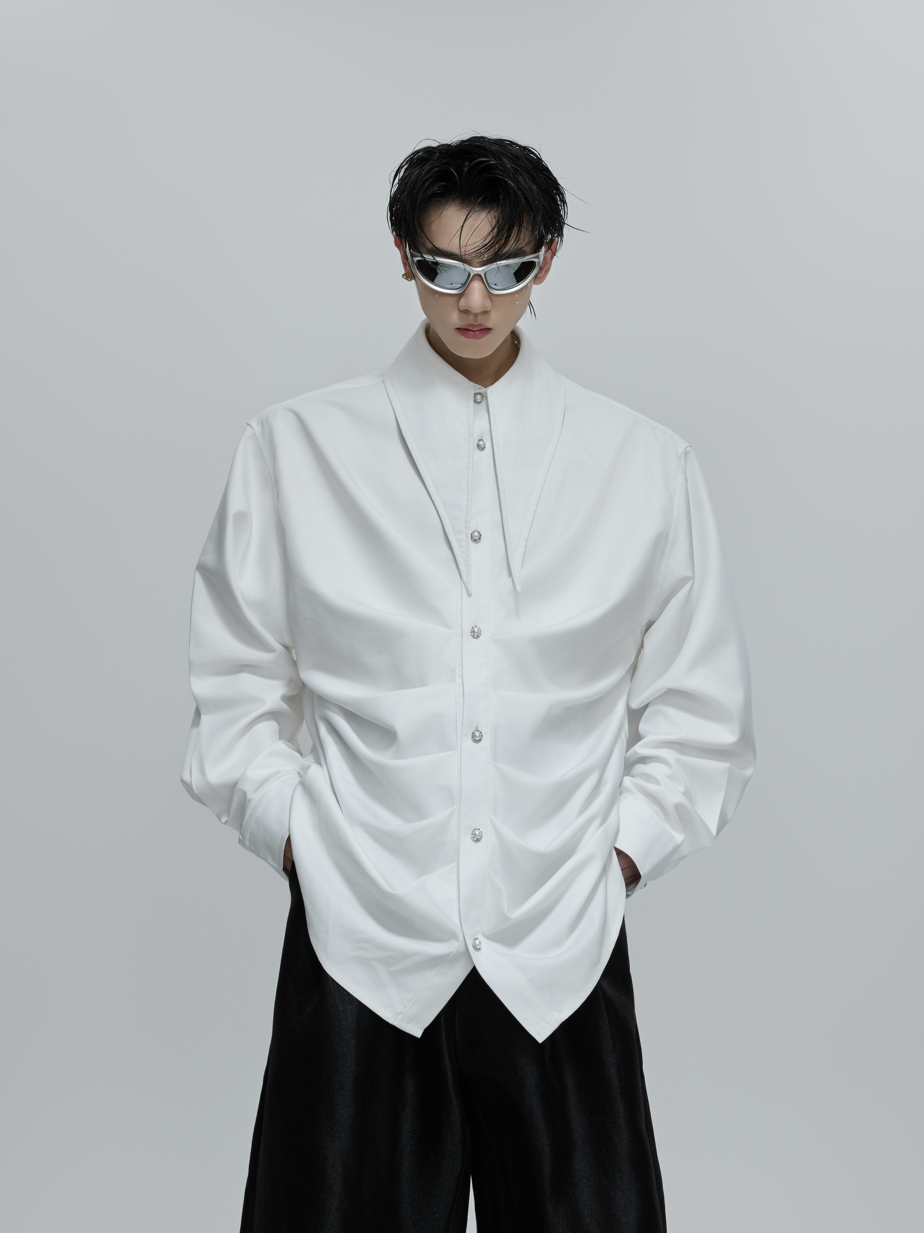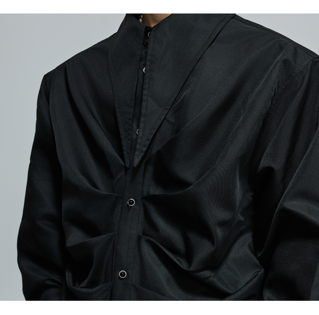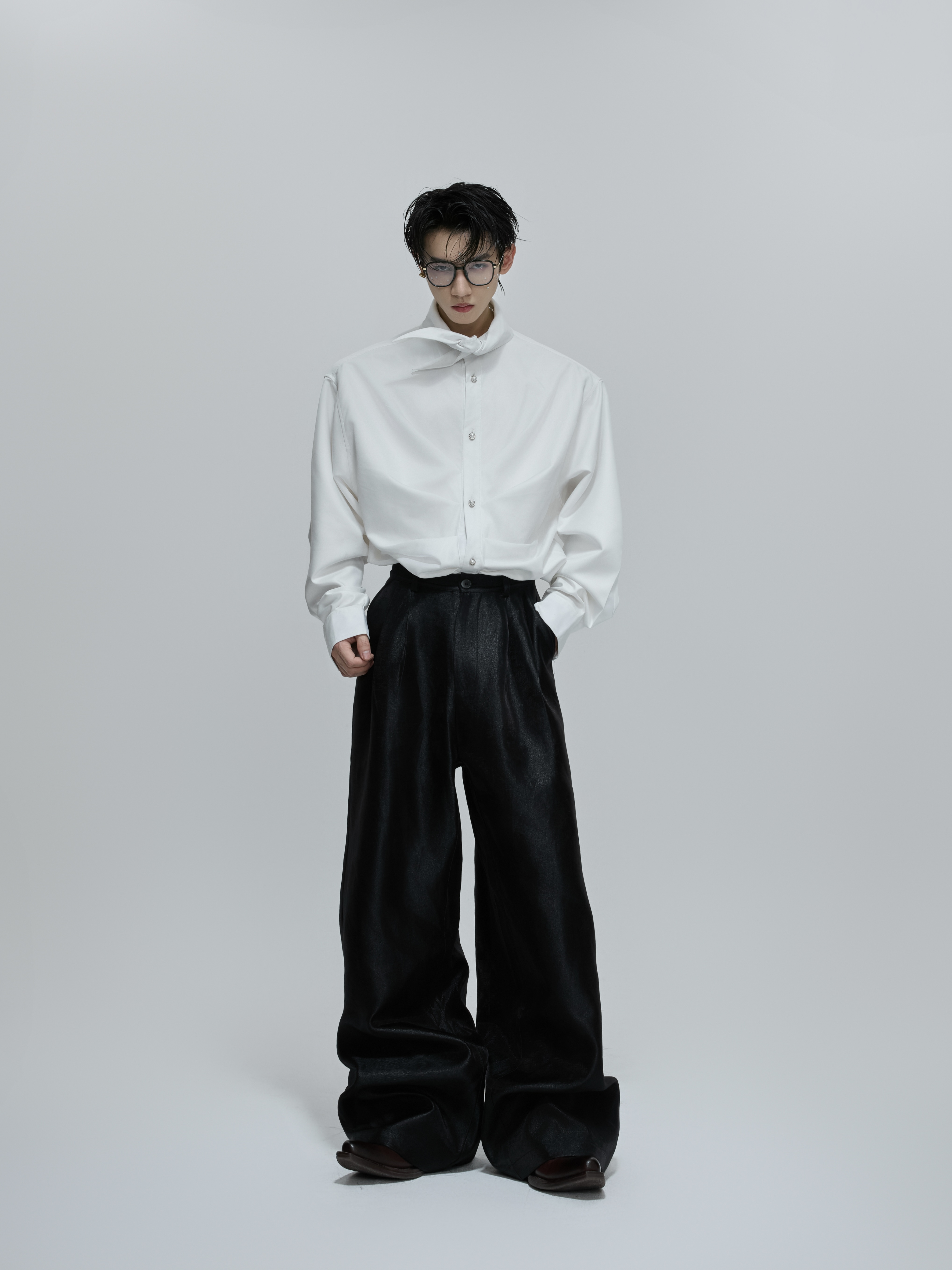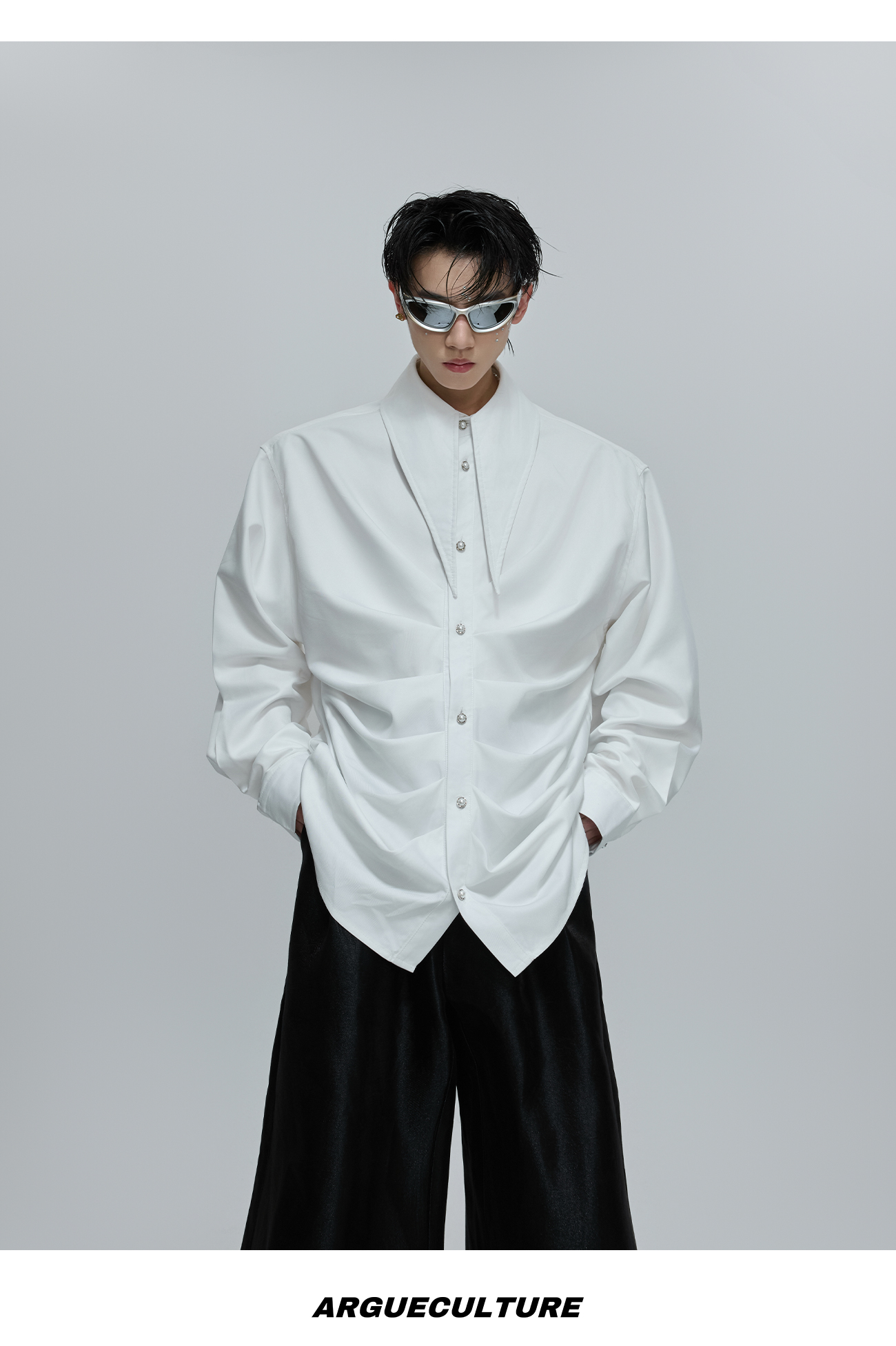 Deconstructed Pleats Scarf Collar Long Sleeve Shirt WN21697