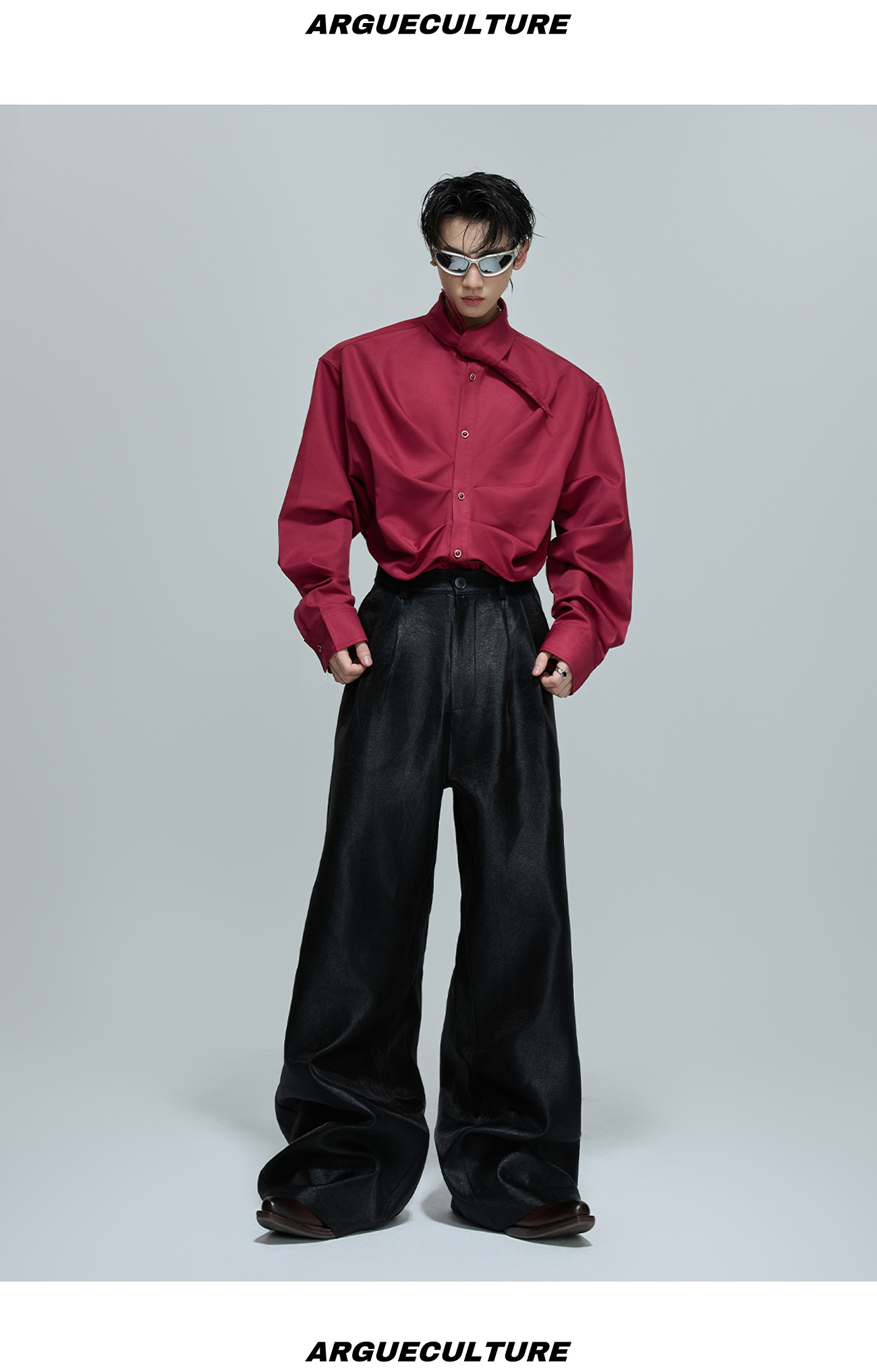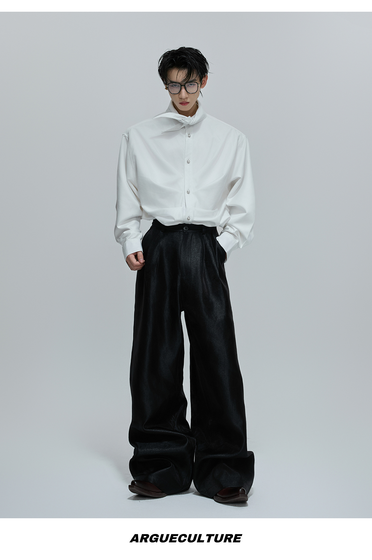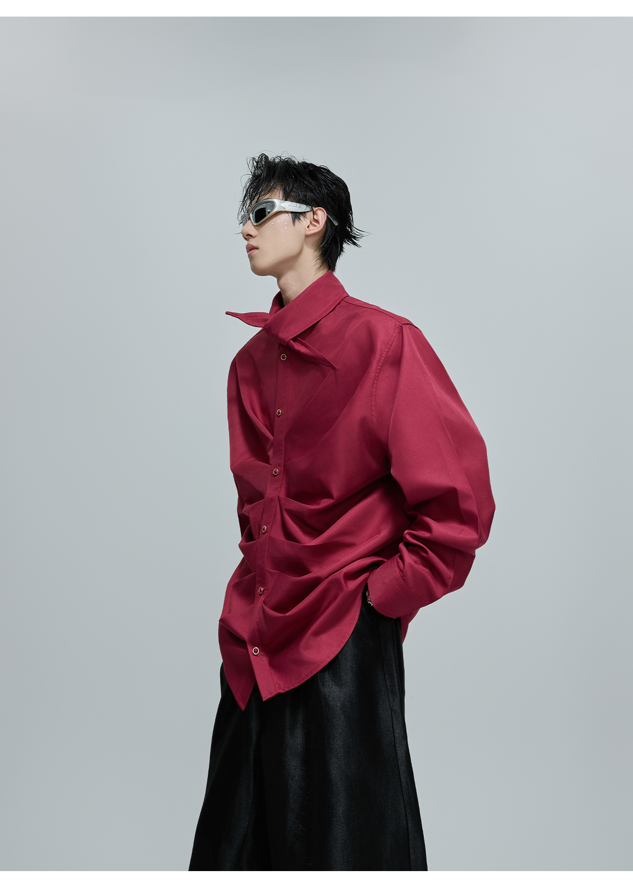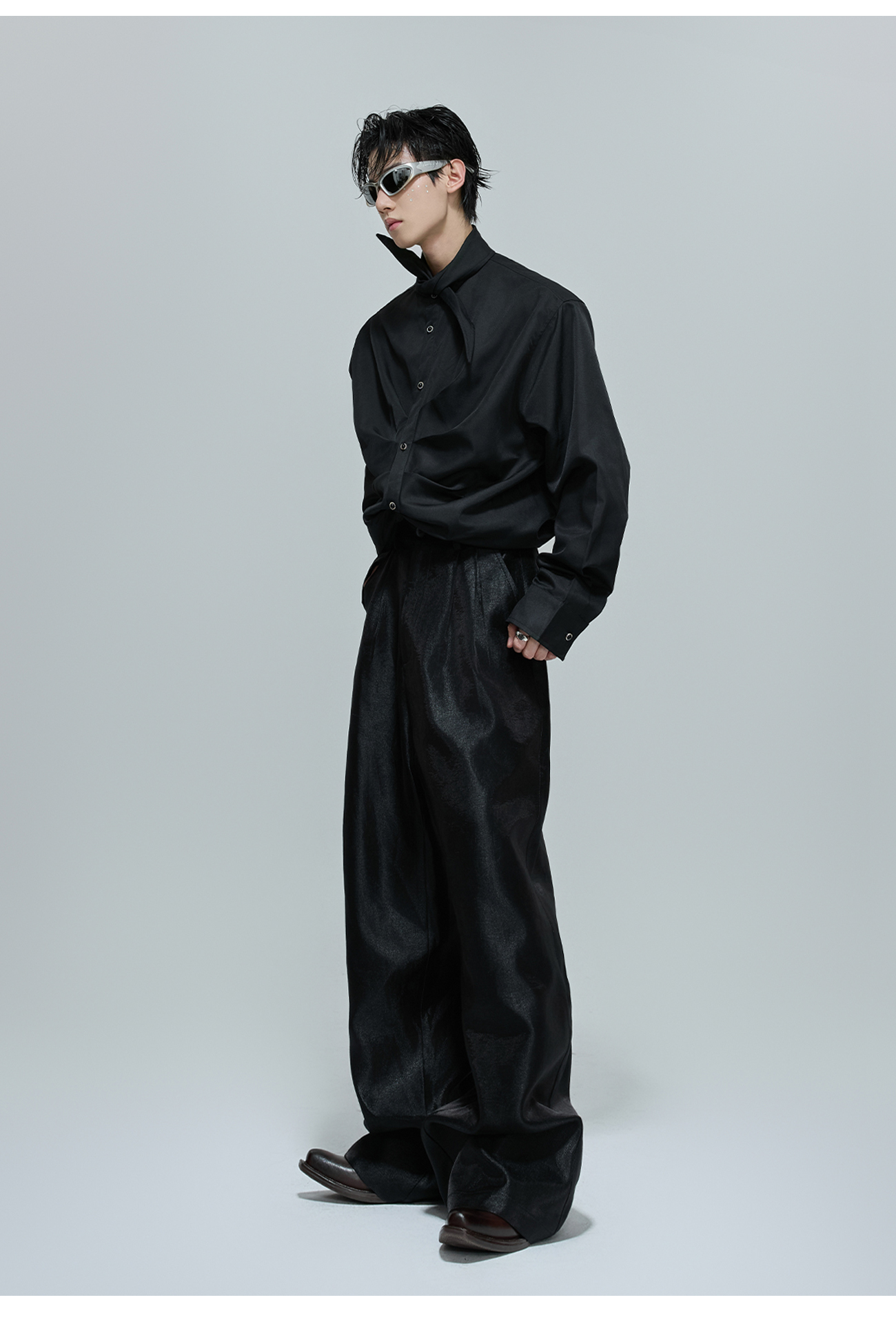 Deconstructed Pleats Scarf Collar Long Sleeve Shirt WN21697