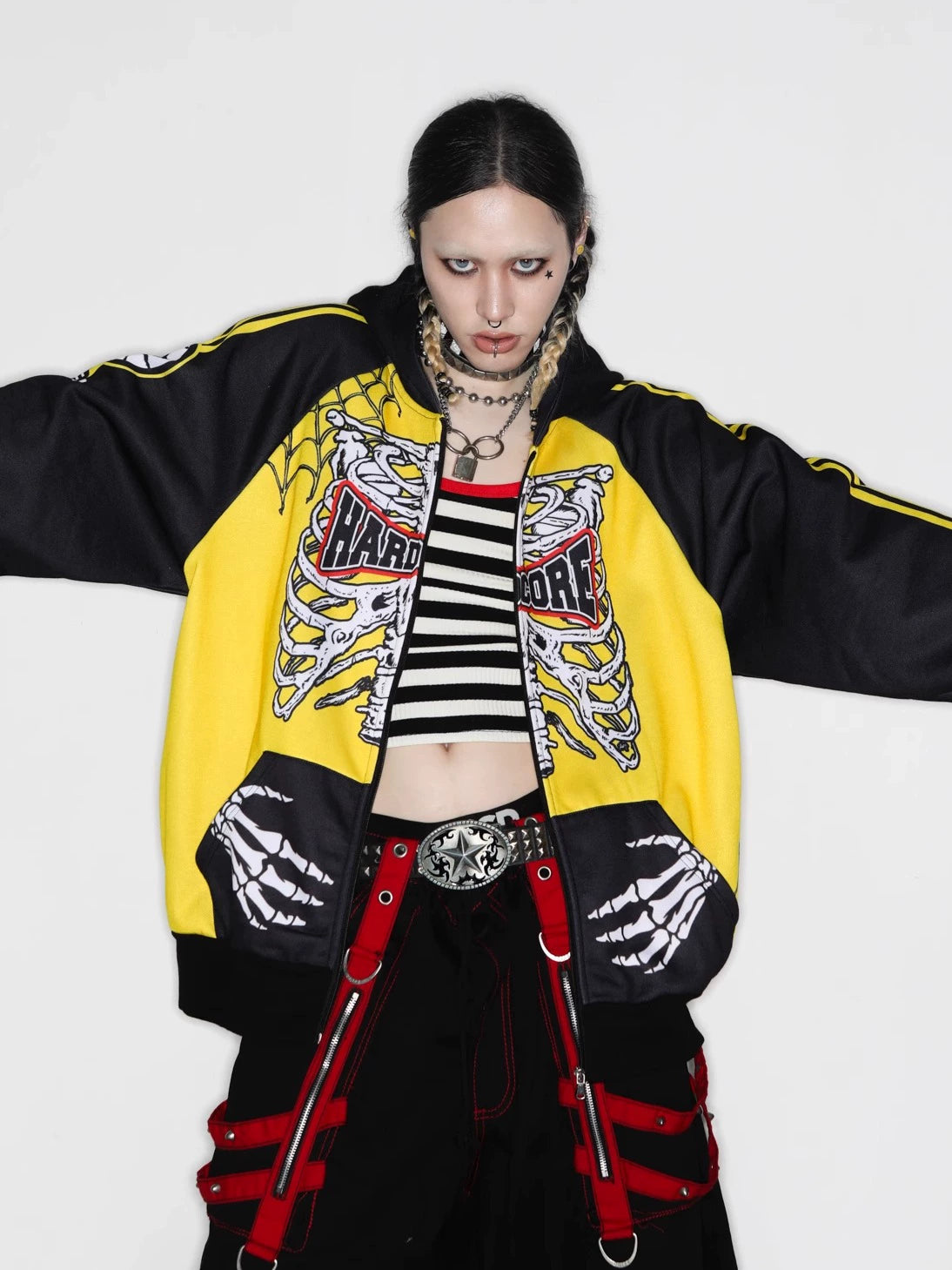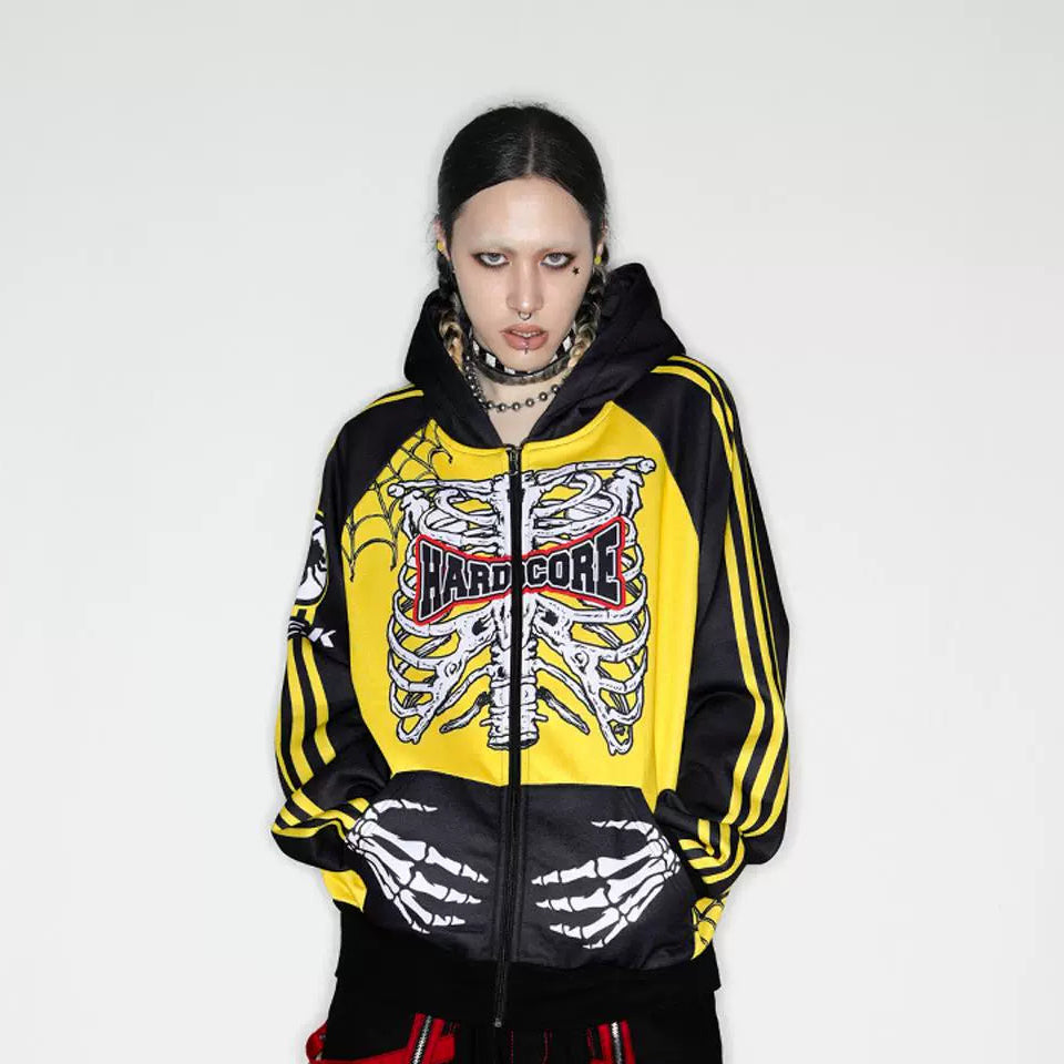 Skull Print Fleece Lining Zipper Hoodie WN22280