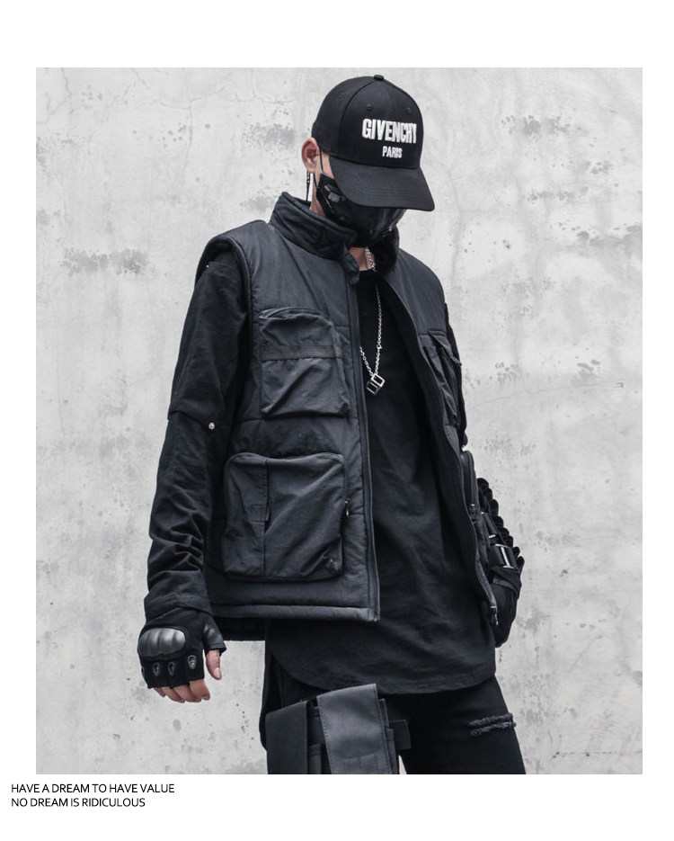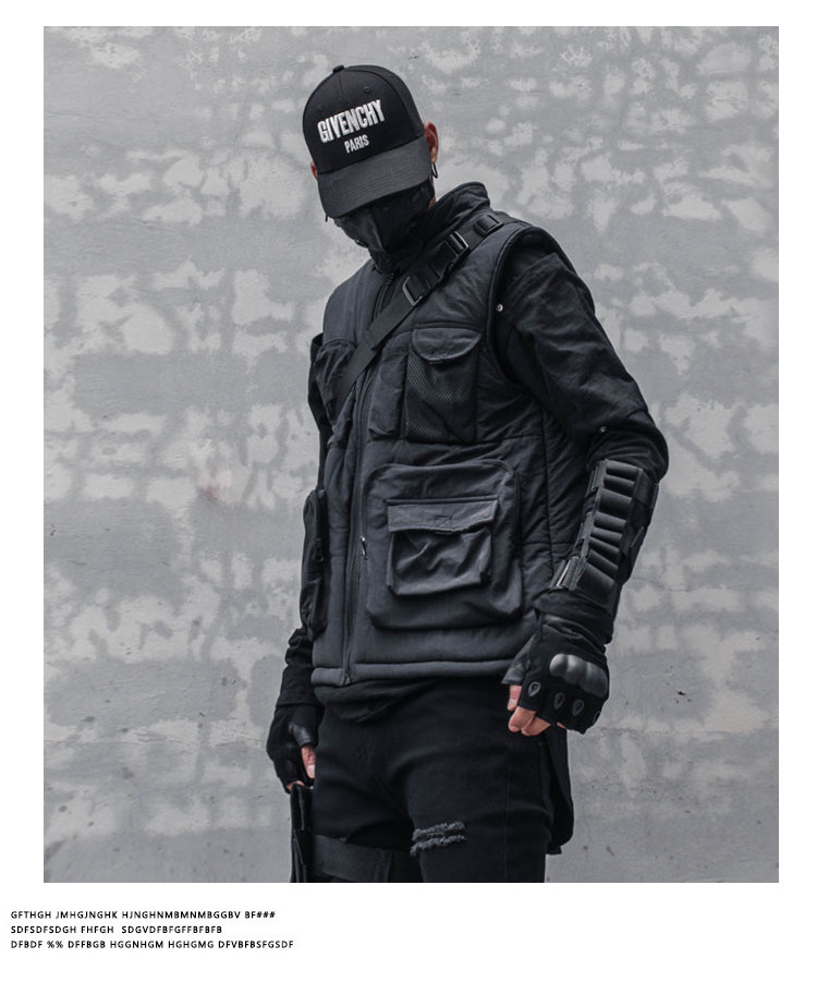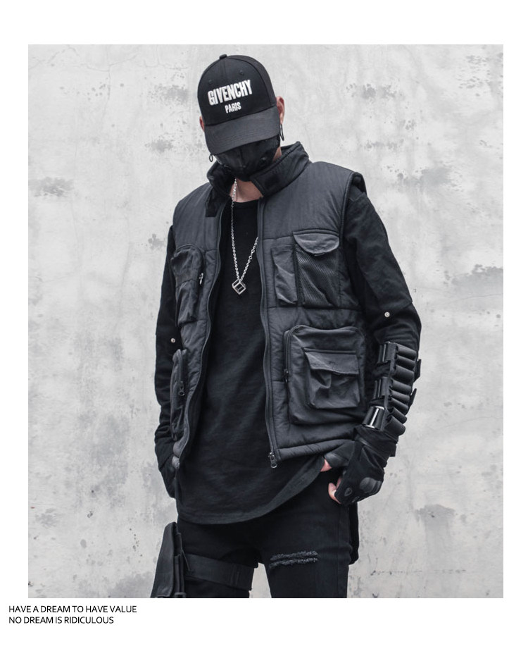 Multi-Pocket Fleece Lining Stand Neck Vest WN22522