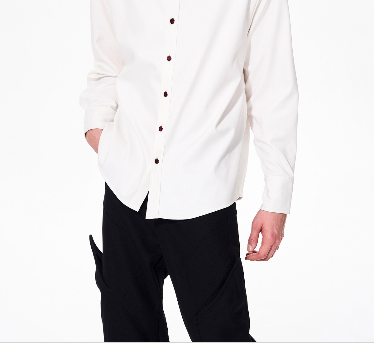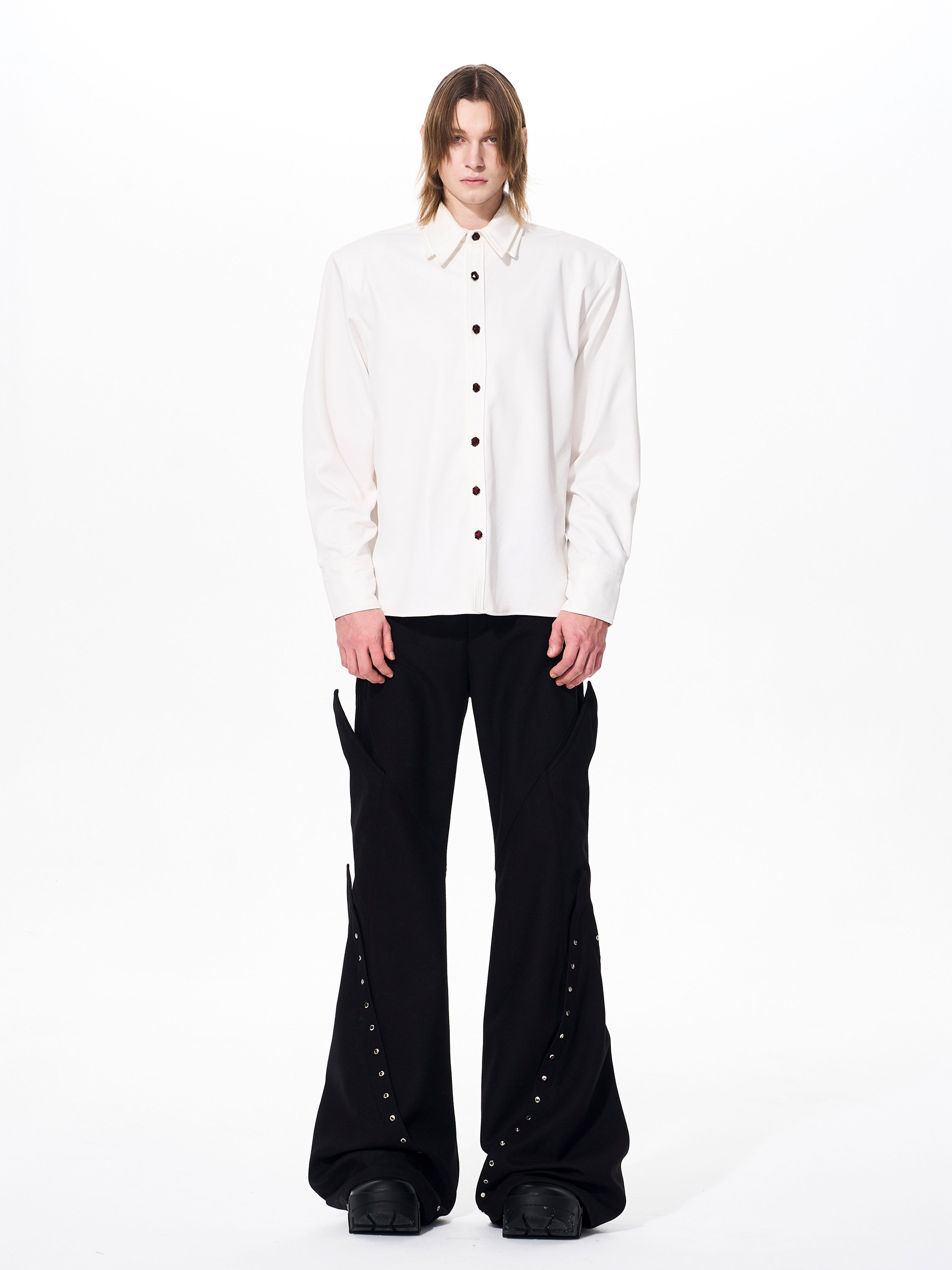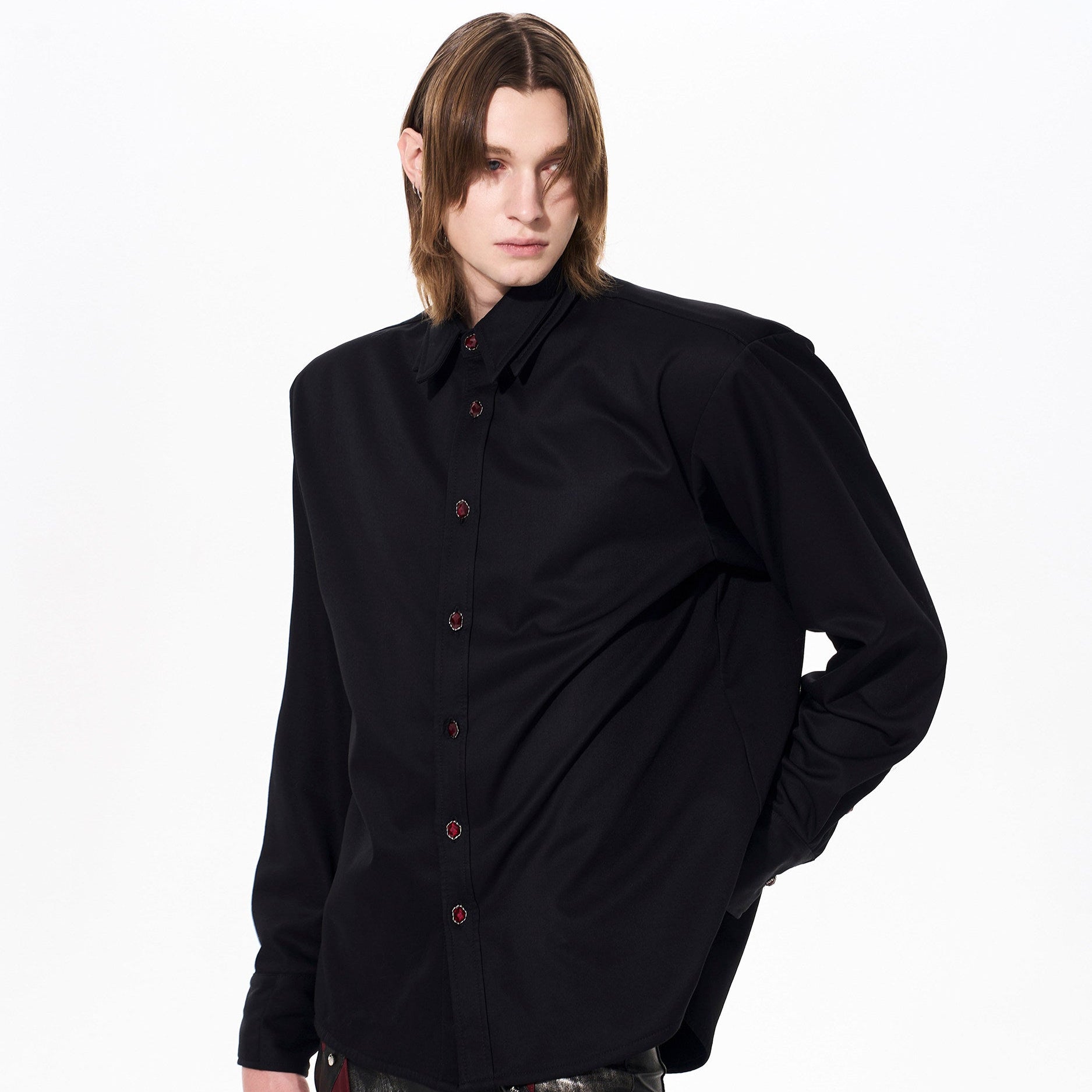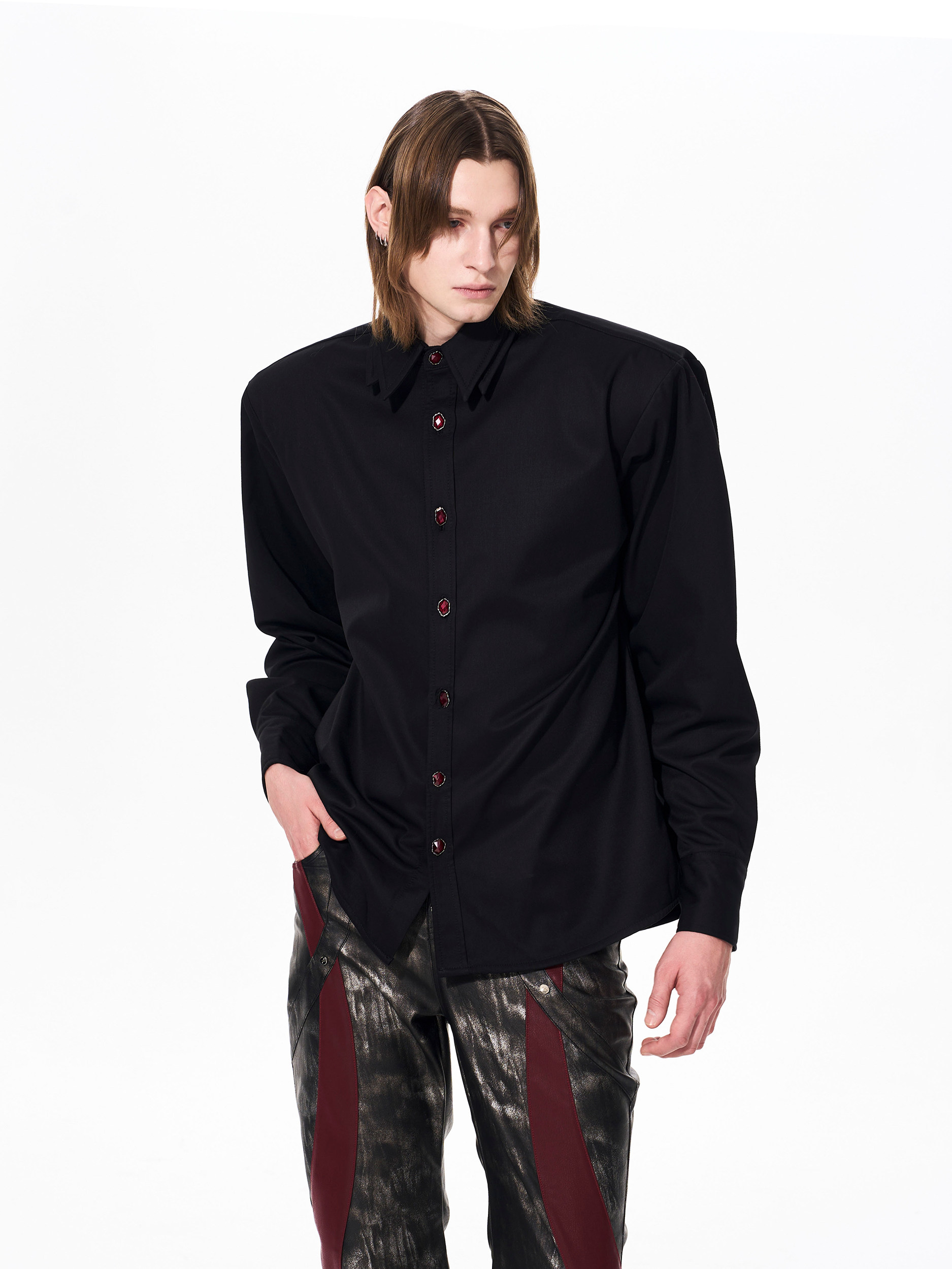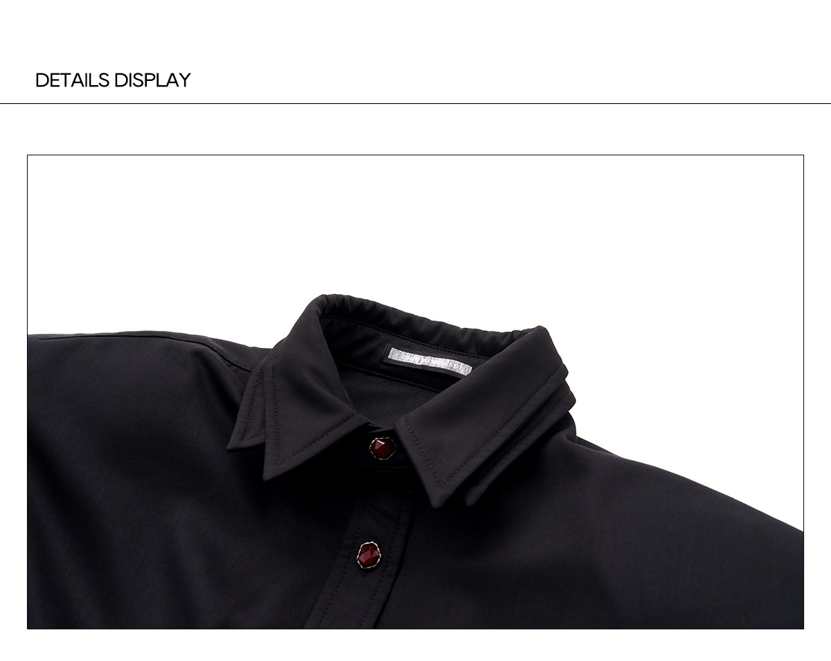 Double Collar Fleece Lining Shoulder-Pad Long Sleeve Shirt WN23265