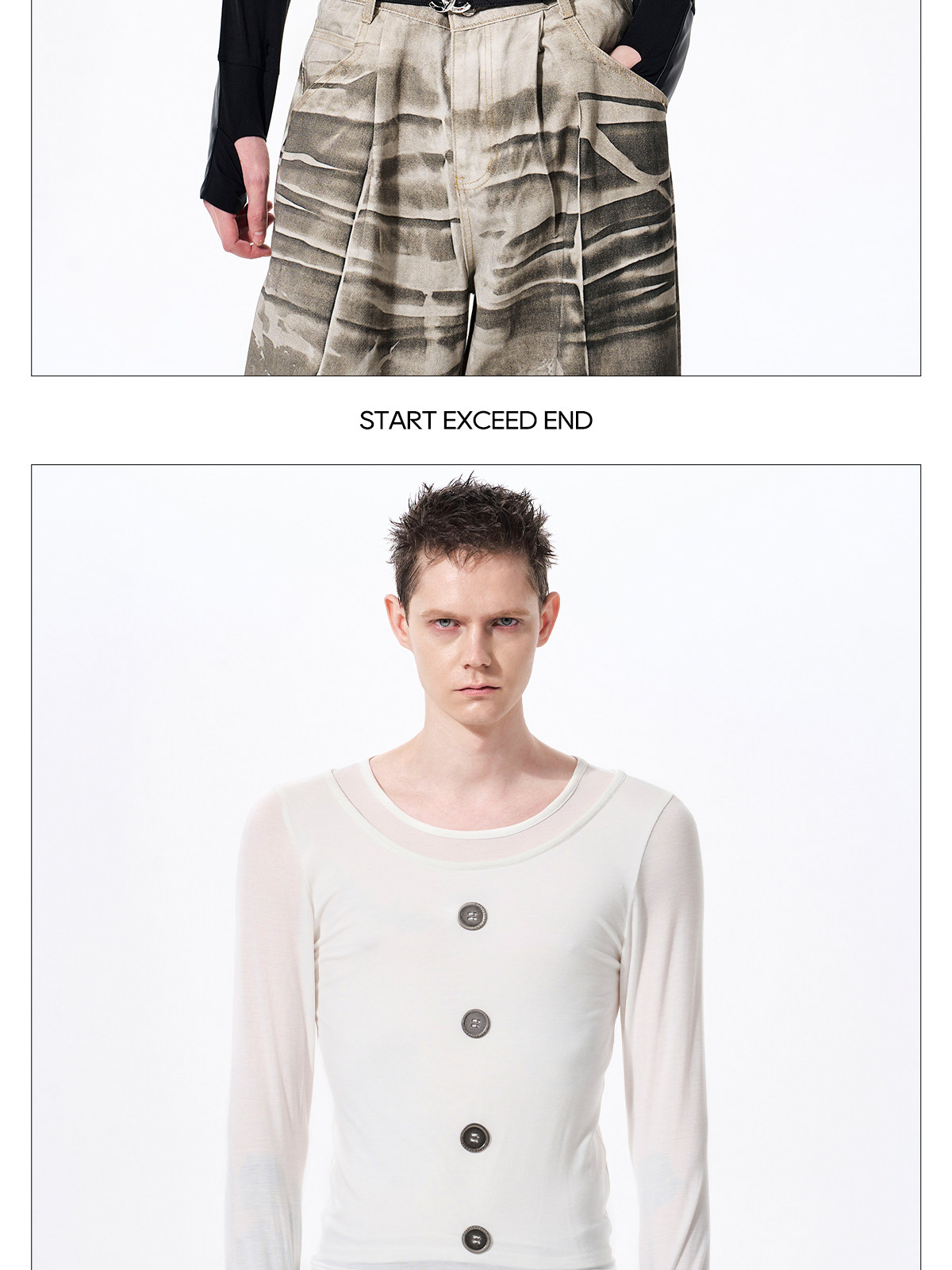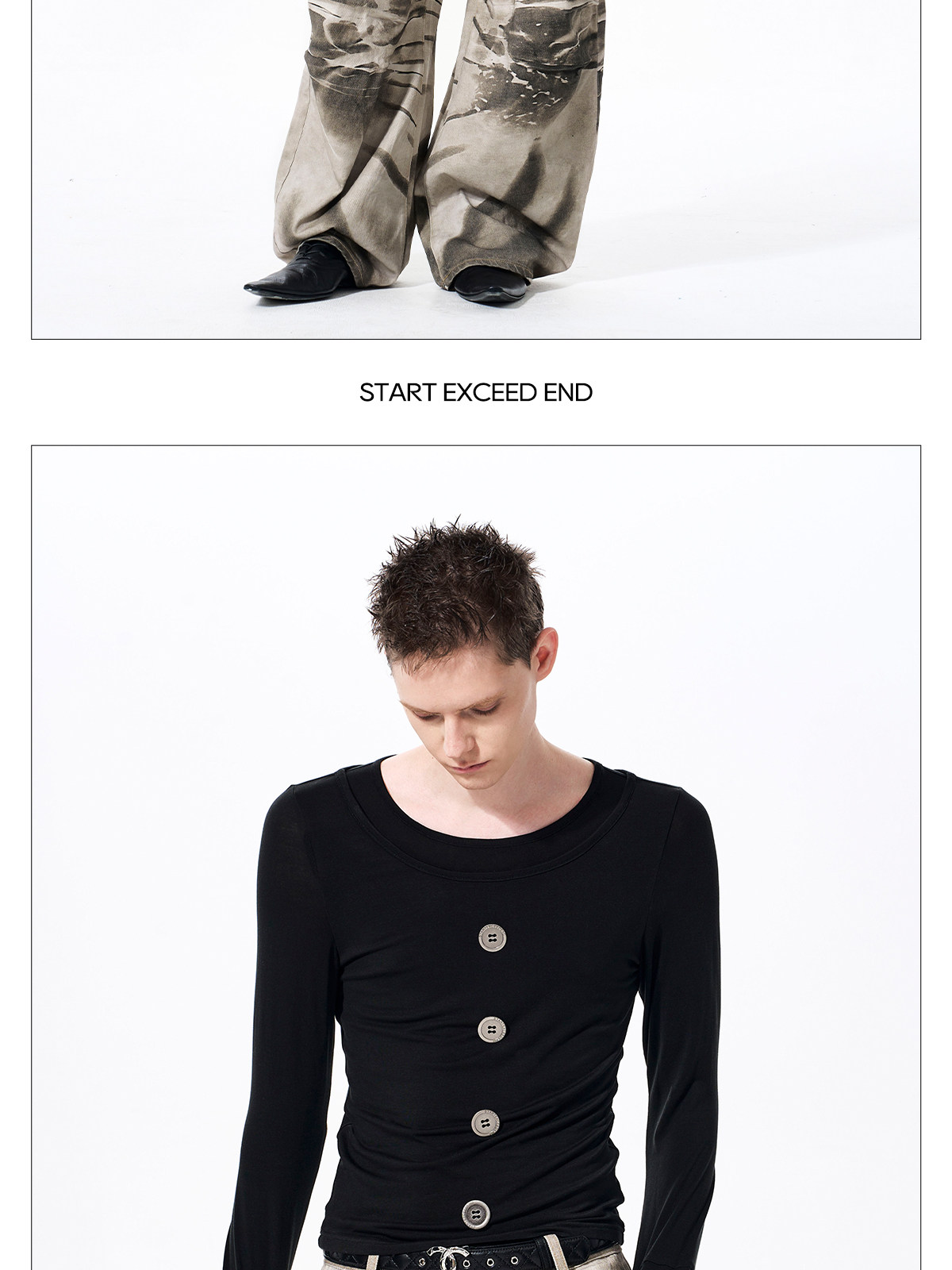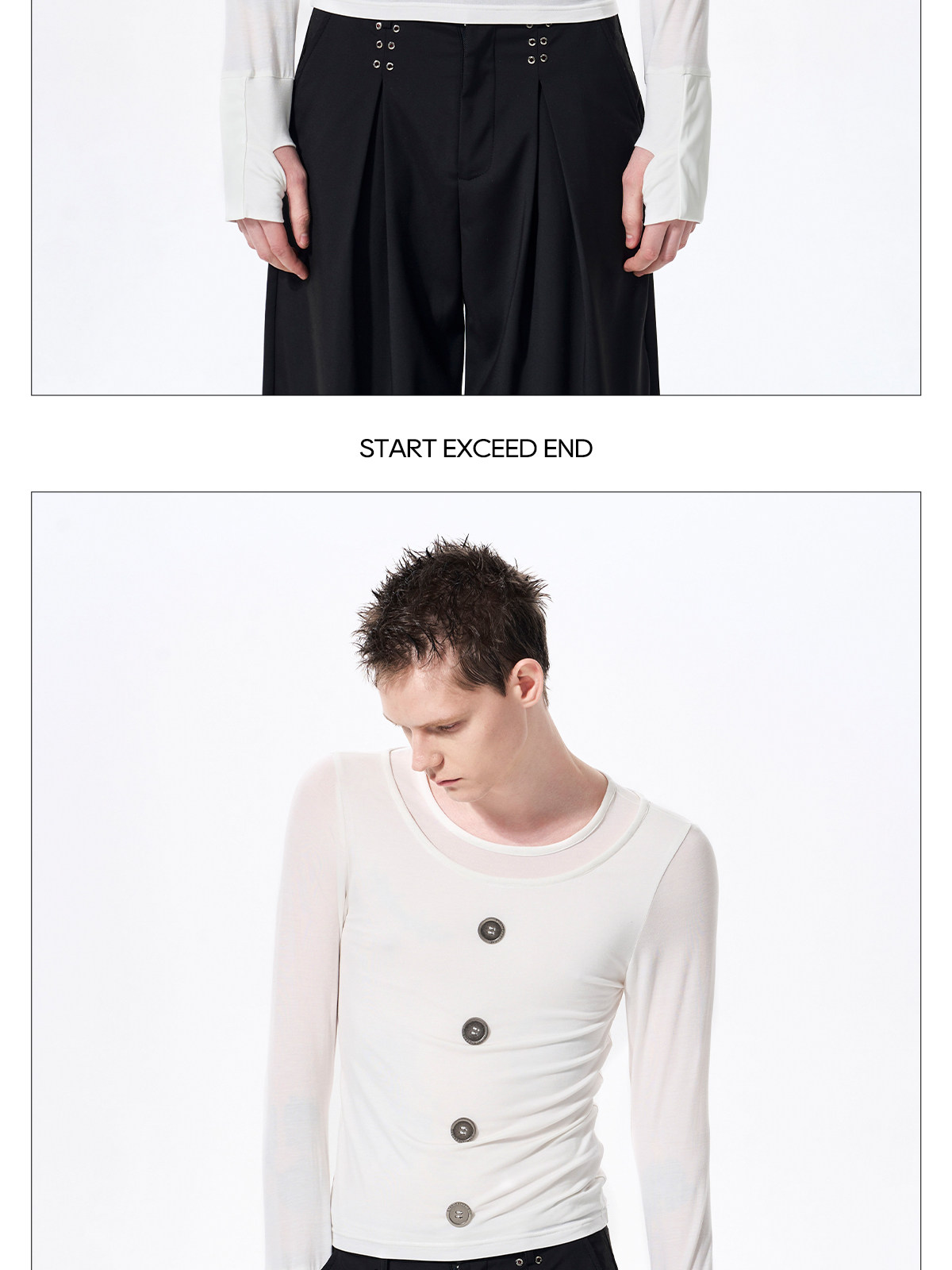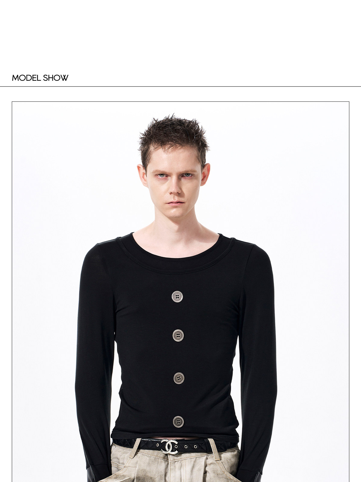 Tencel Fake Layered Button Long Sleeve T-Shirt WN23270