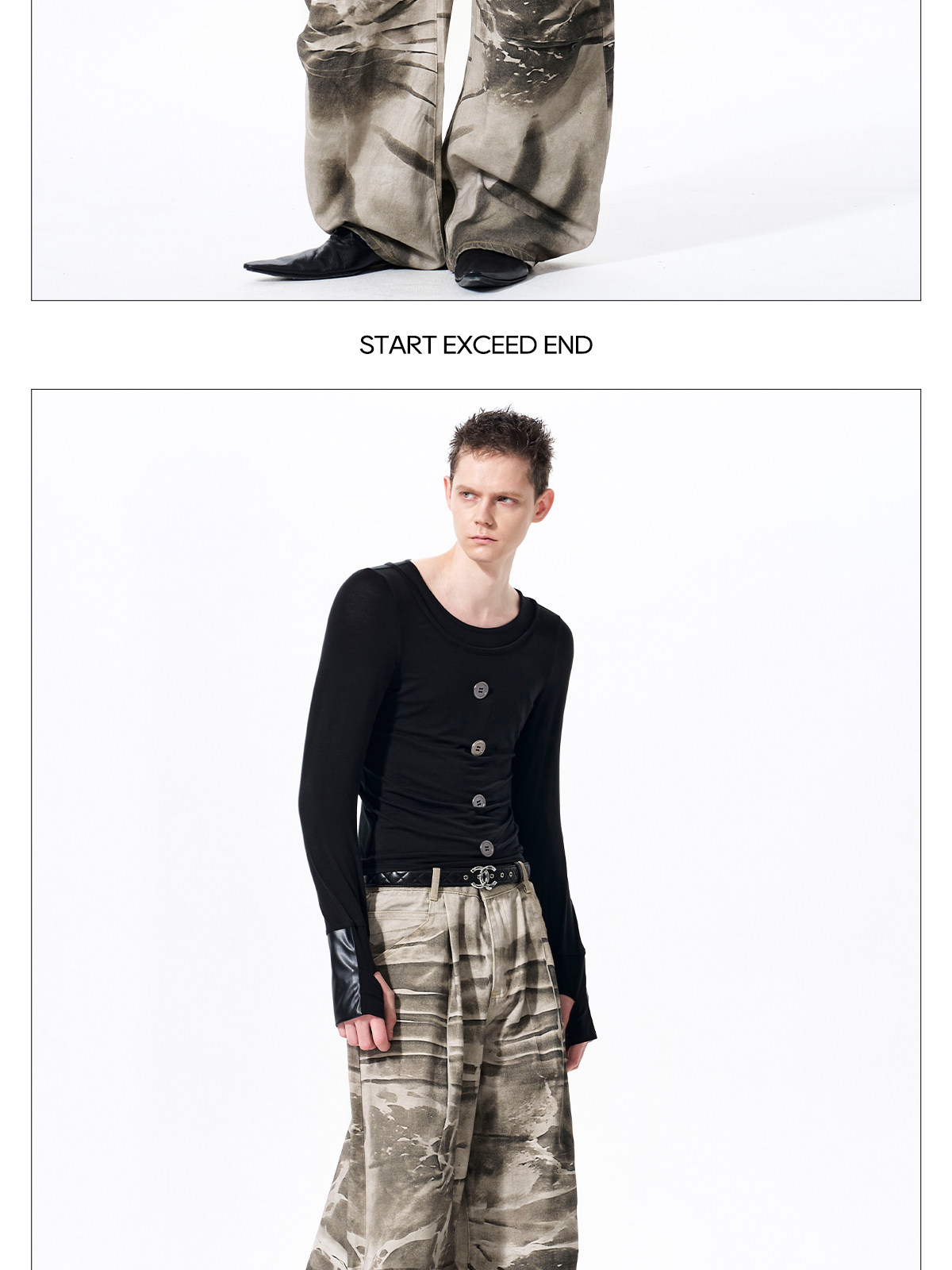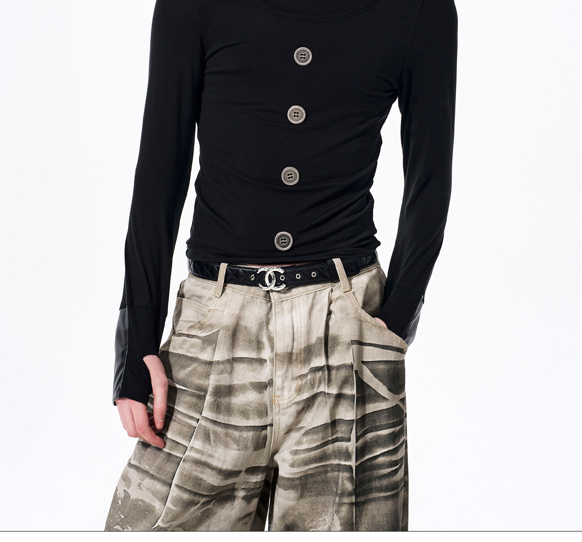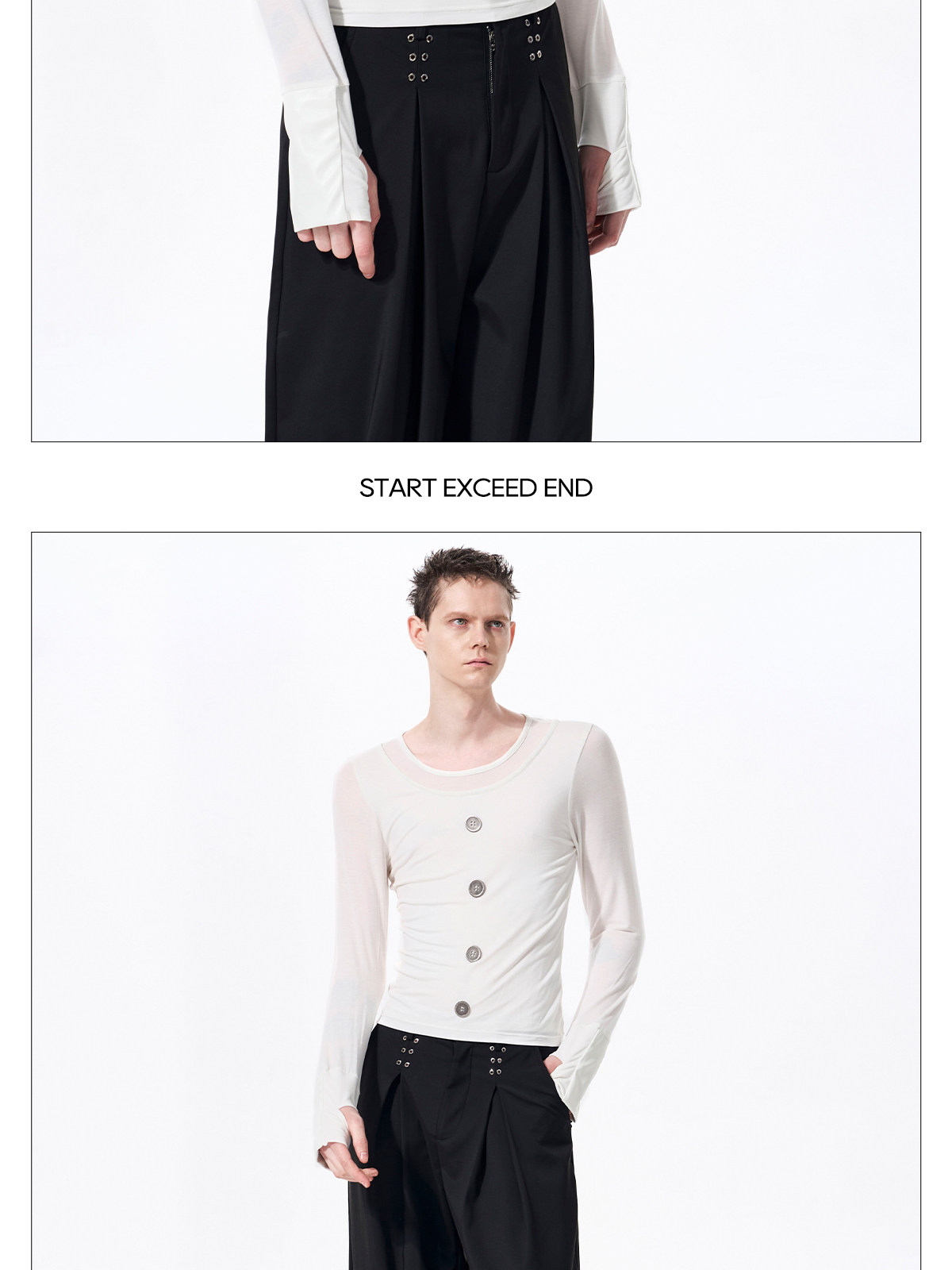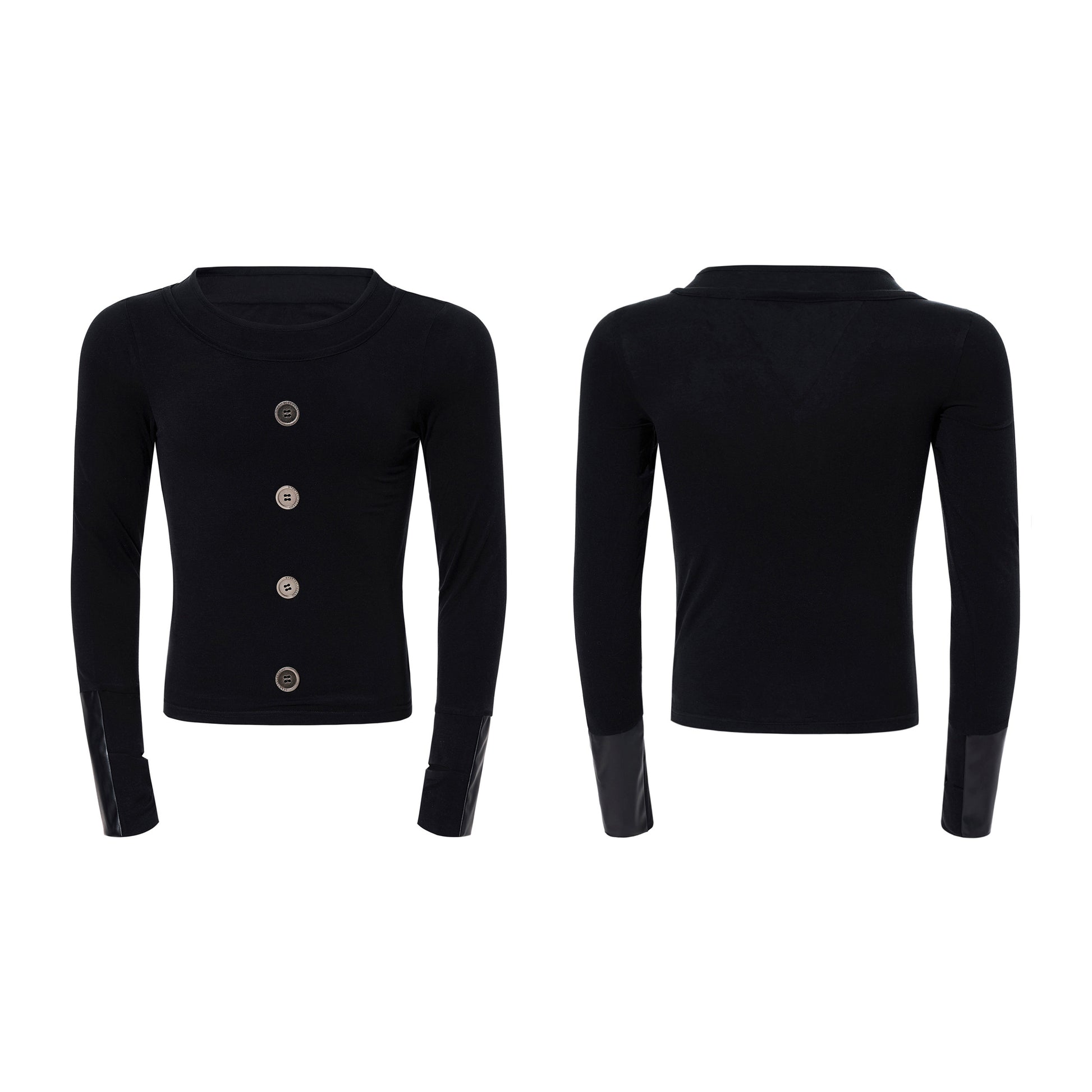Tencel Fake Layered Button Long Sleeve T-Shirt WN23270