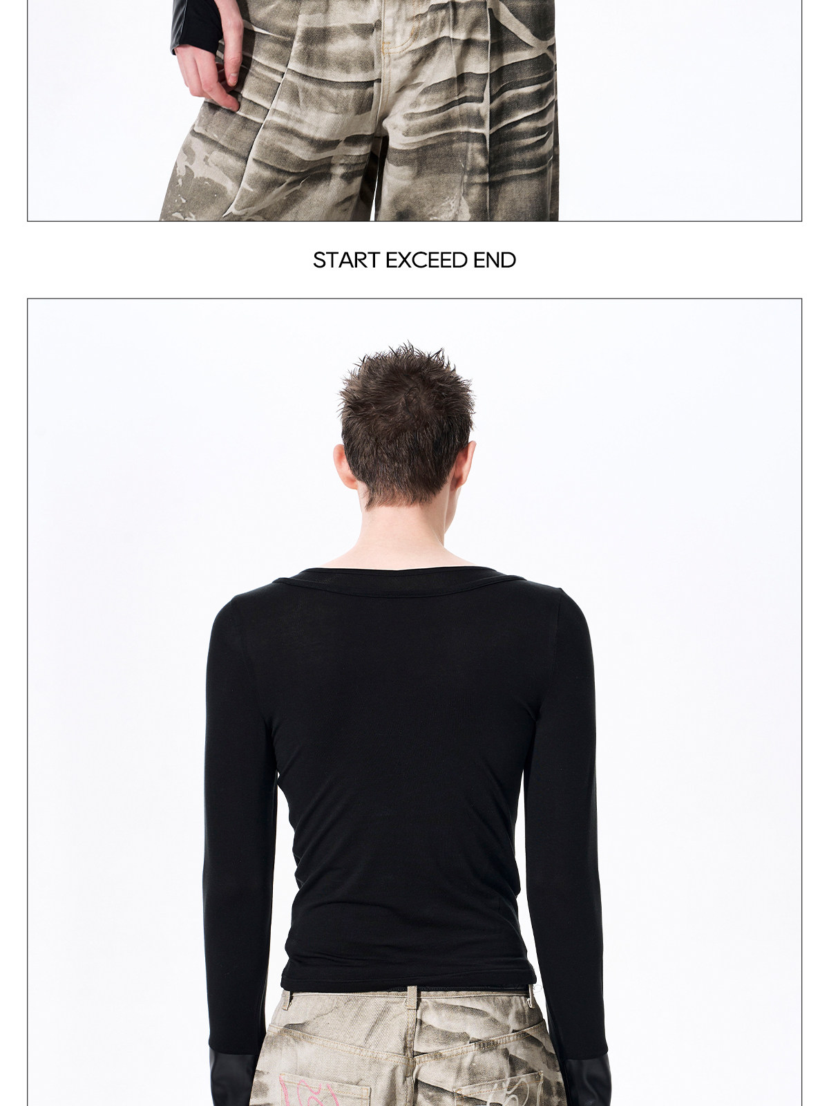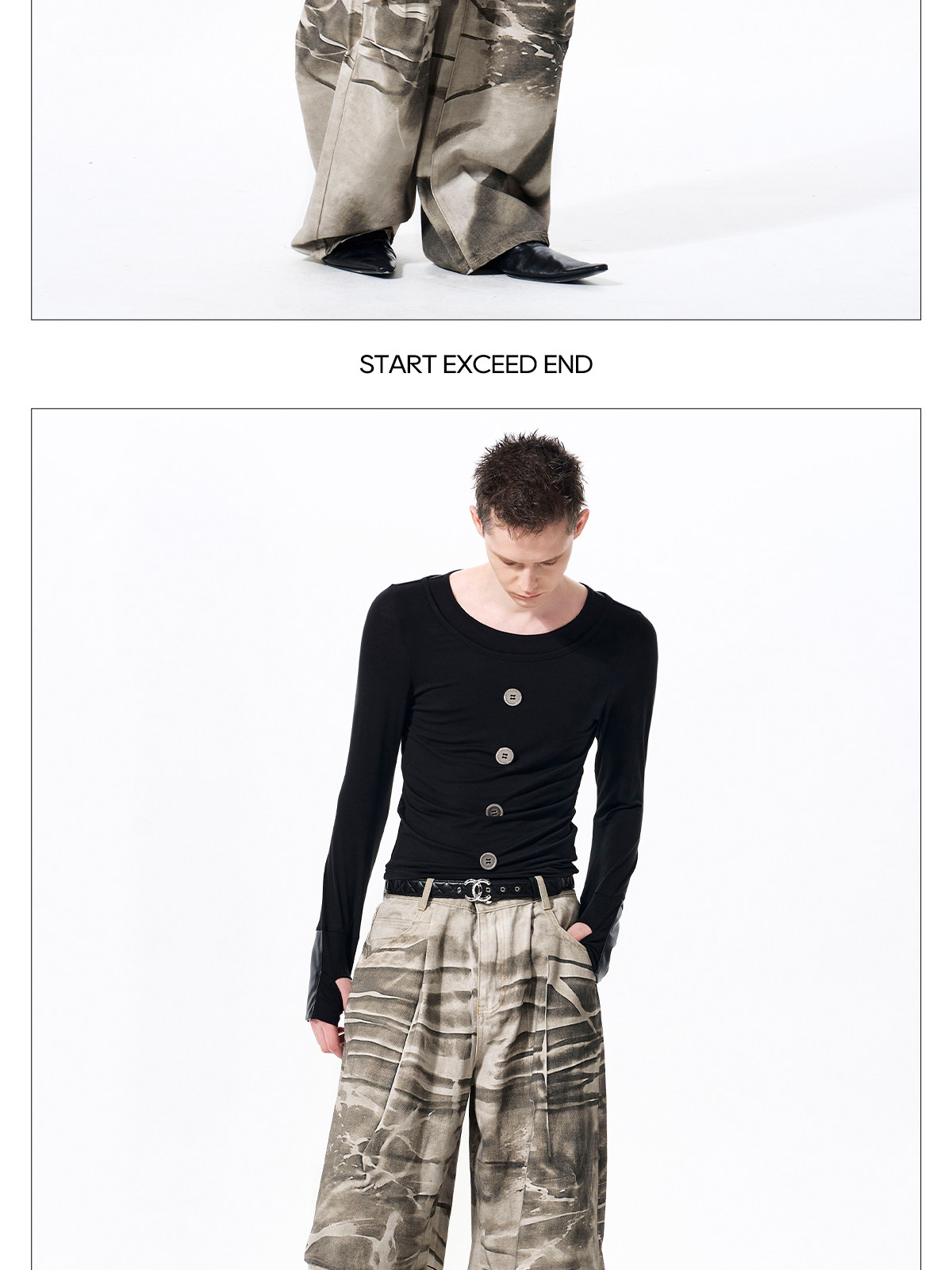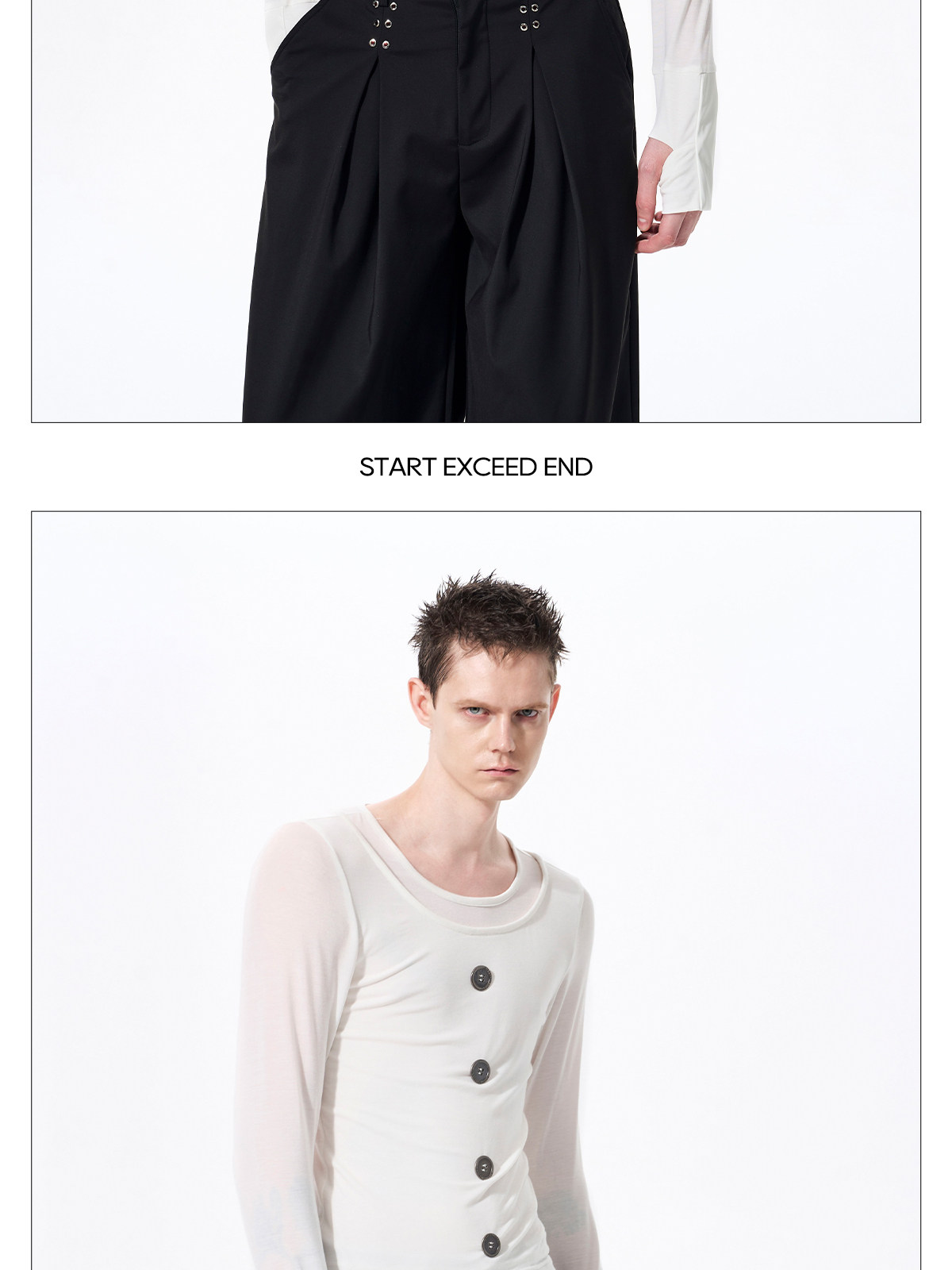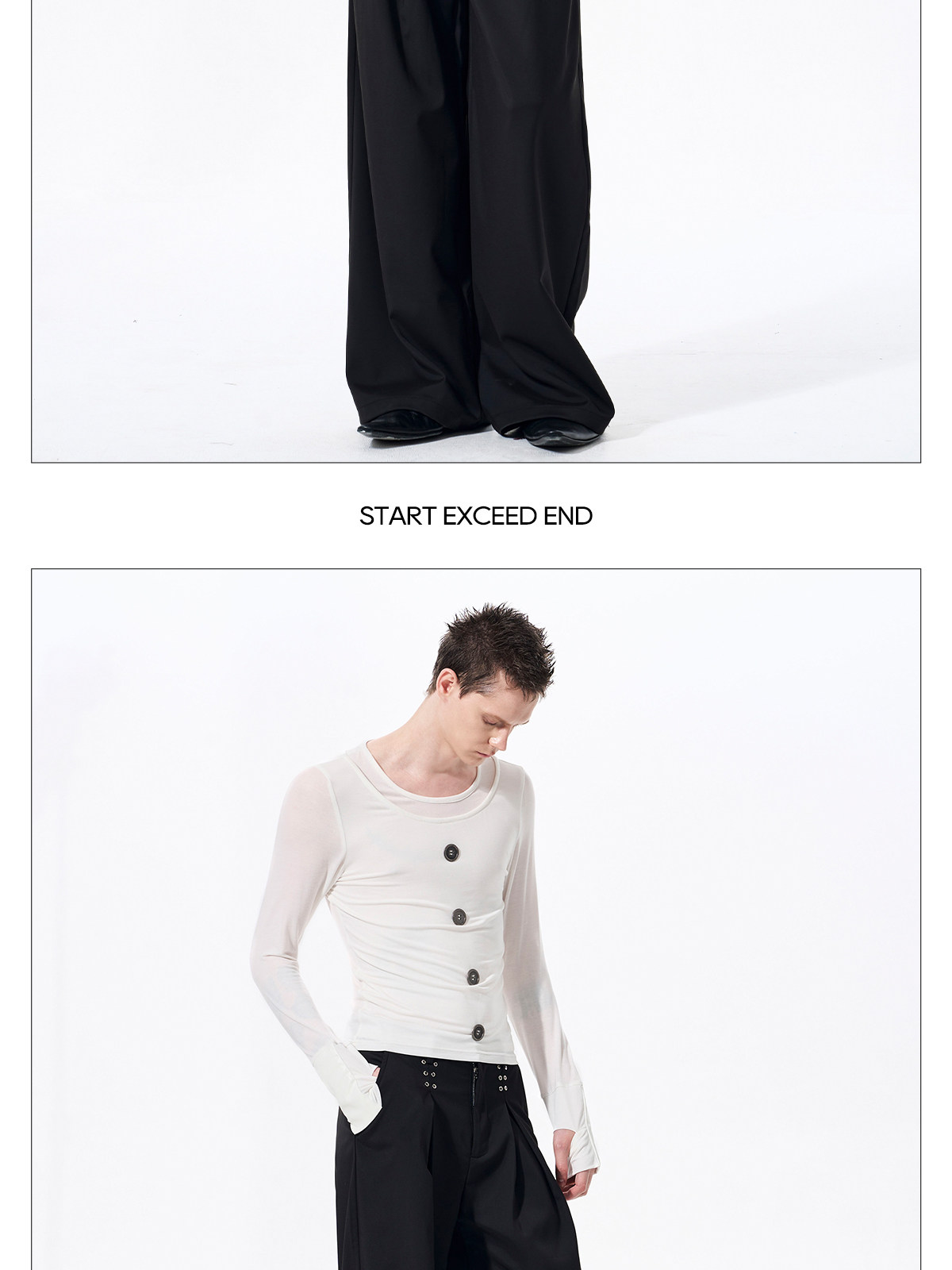 Tencel Fake Layered Button Long Sleeve T-Shirt WN23270