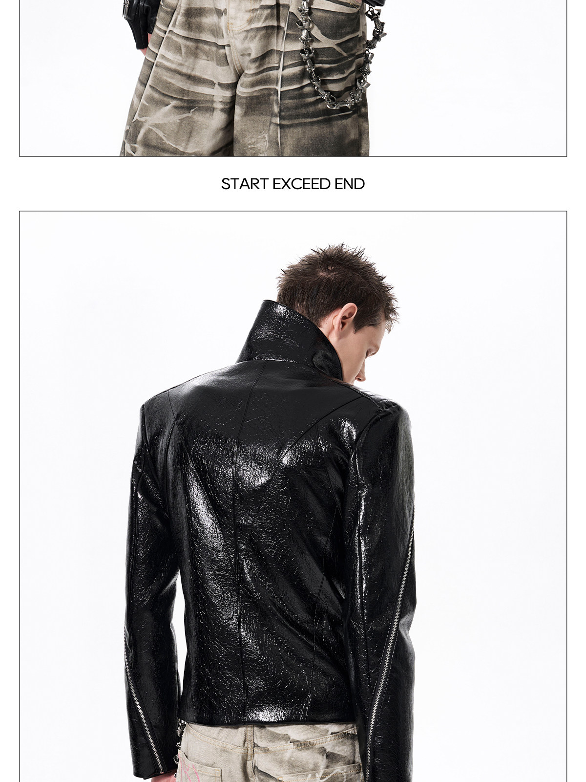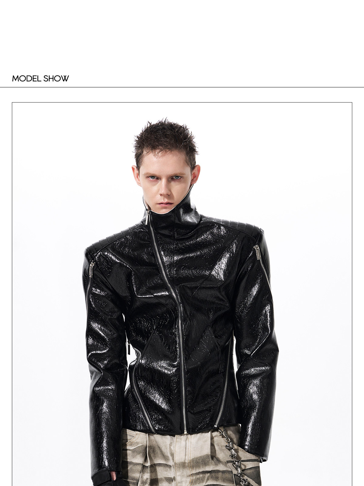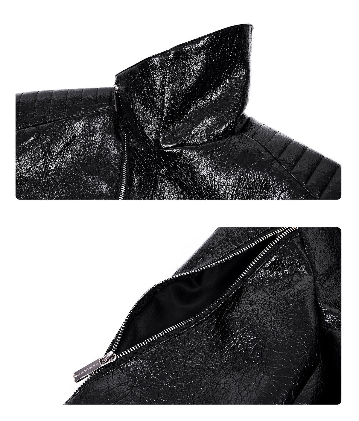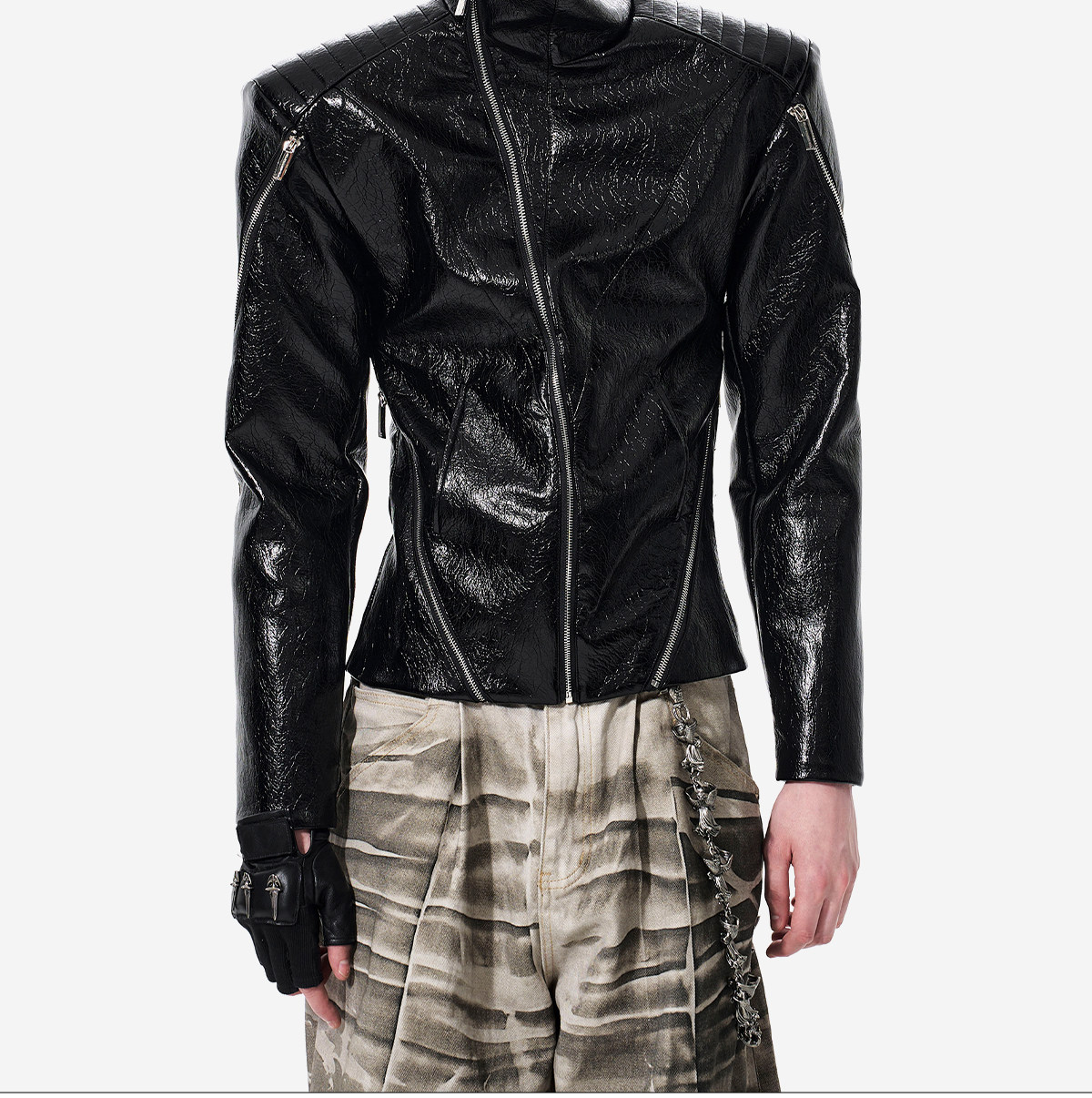 Deconstructed Asymmetrical Zipper Stand Neck Leather Jacket WN23271