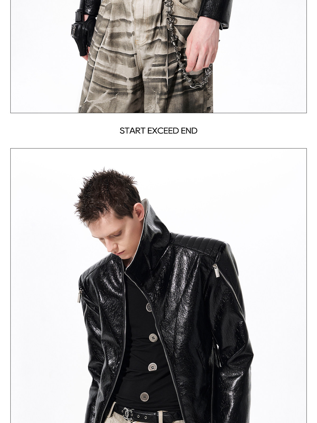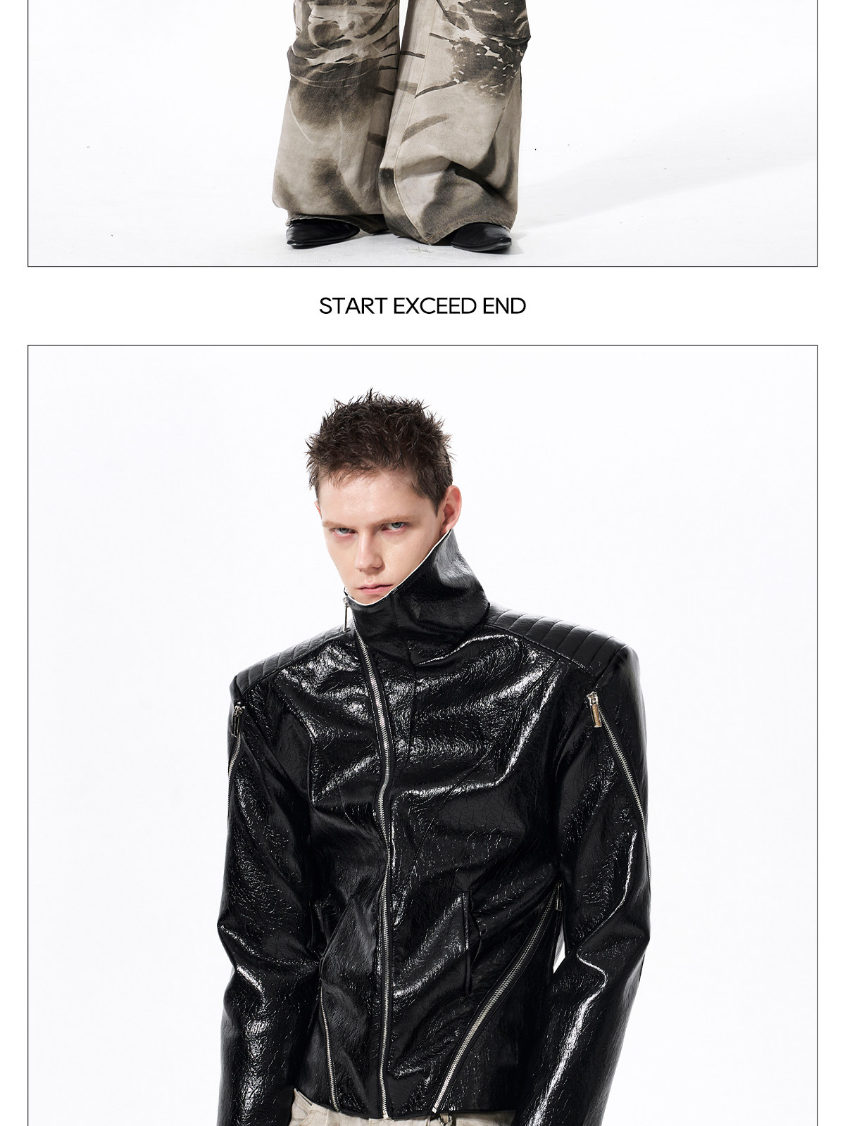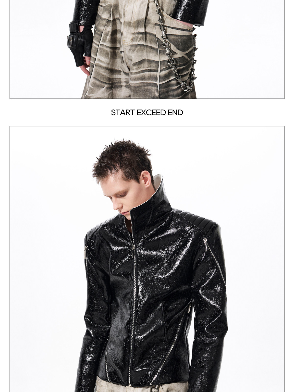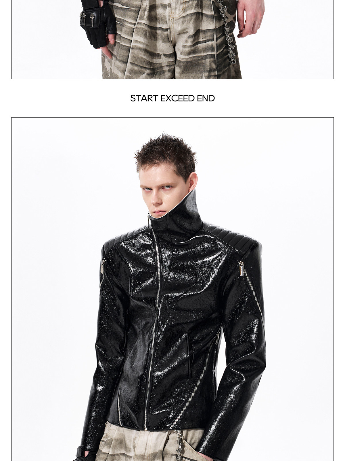 Deconstructed Asymmetrical Zipper Stand Neck Leather Jacket WN23271