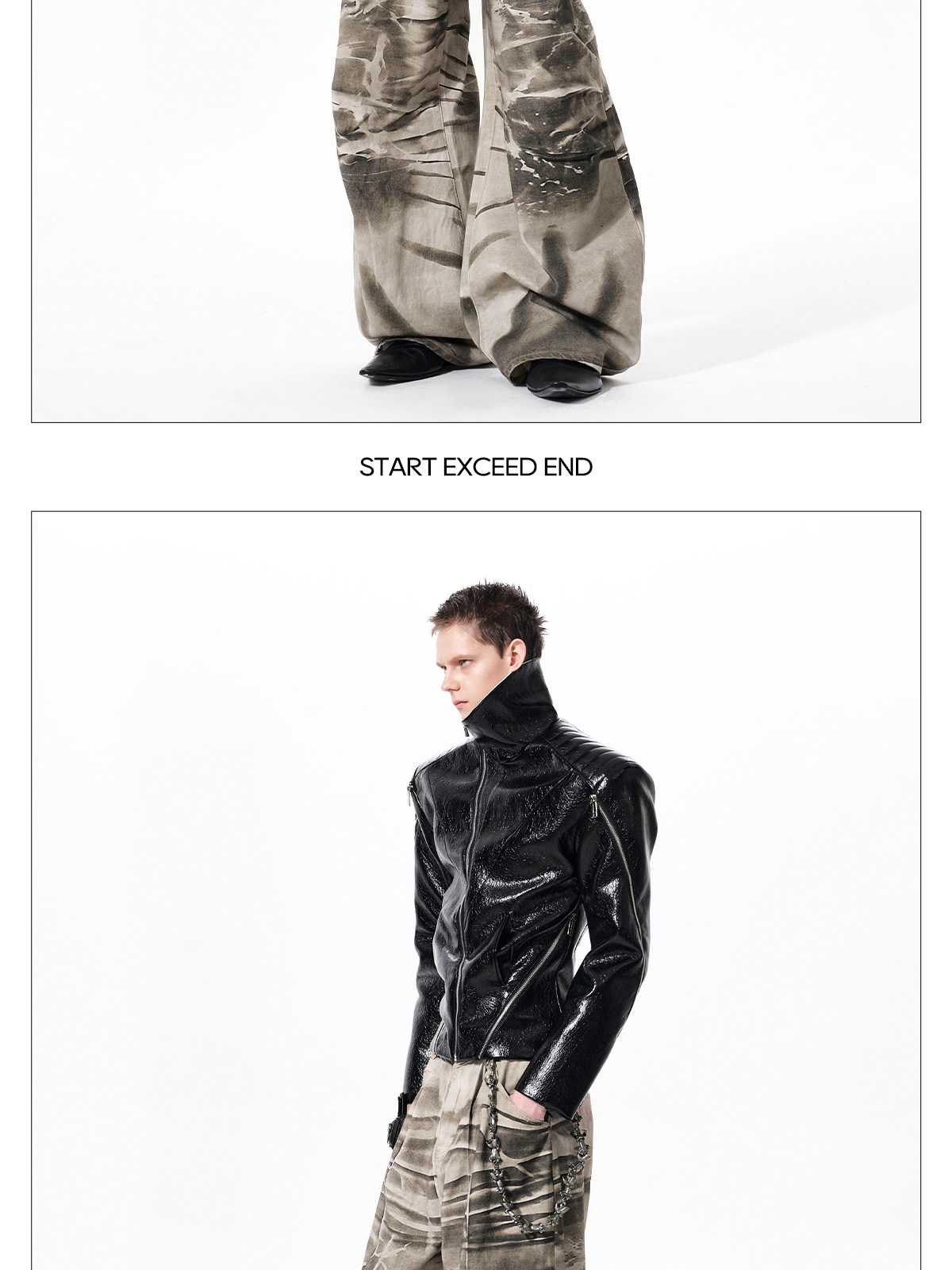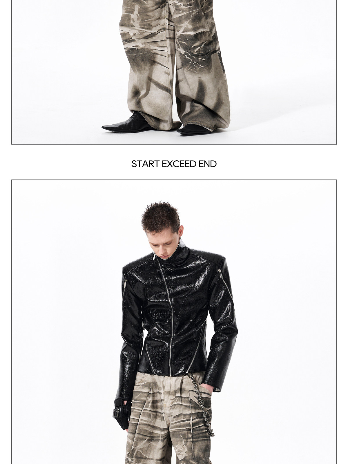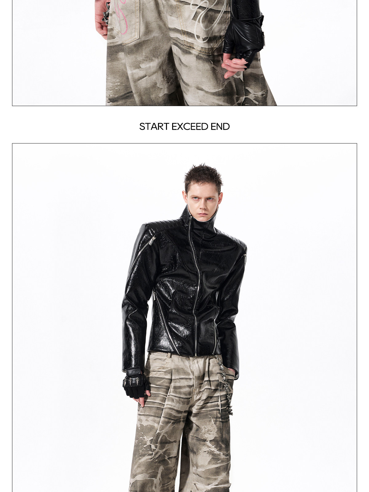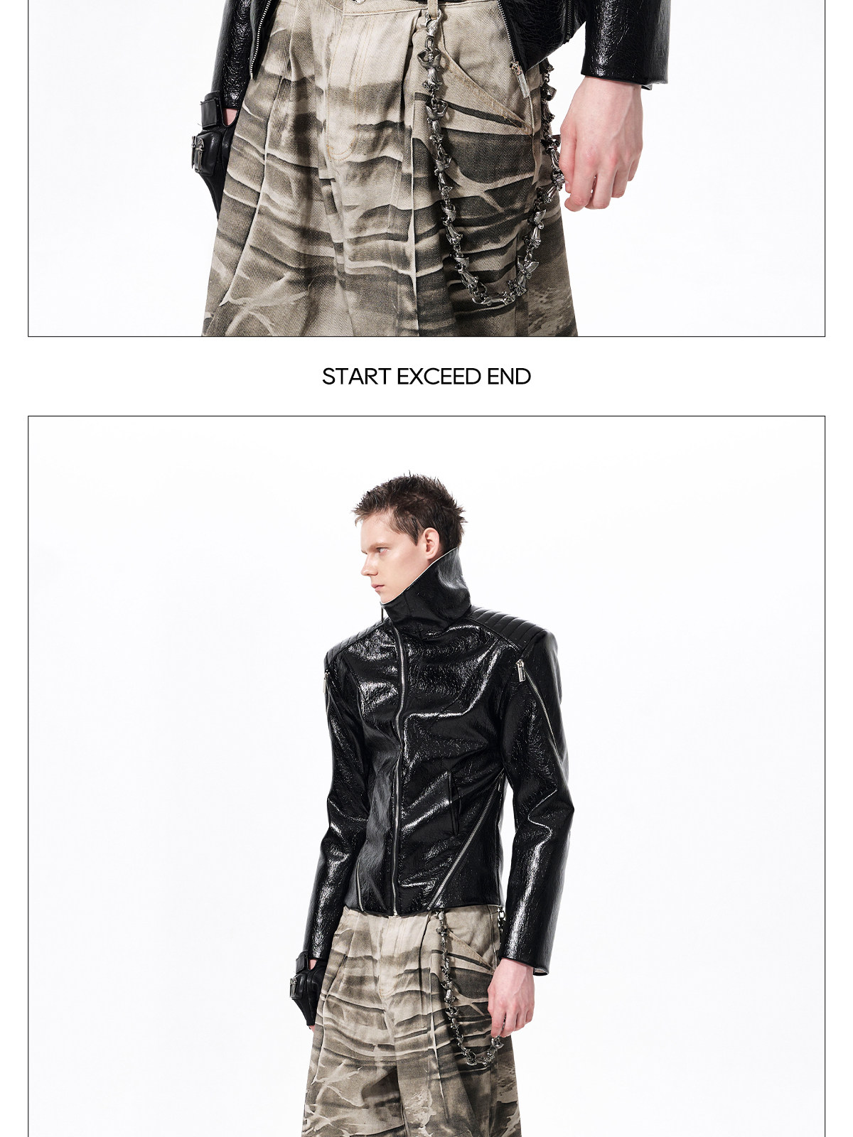 Deconstructed Asymmetrical Zipper Stand Neck Leather Jacket WN23271