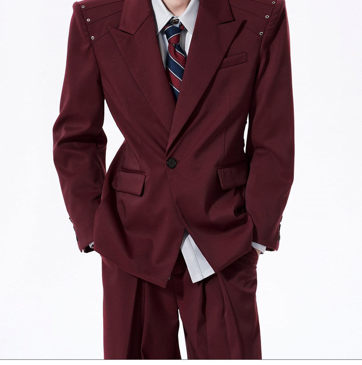 Oversize Waist-Cinched Tailored Jacket & Trousers Setup WN23272