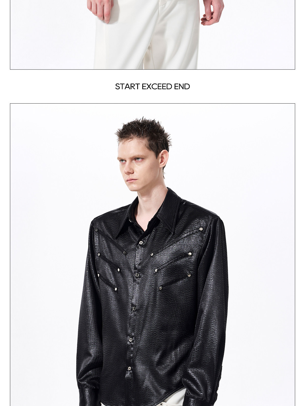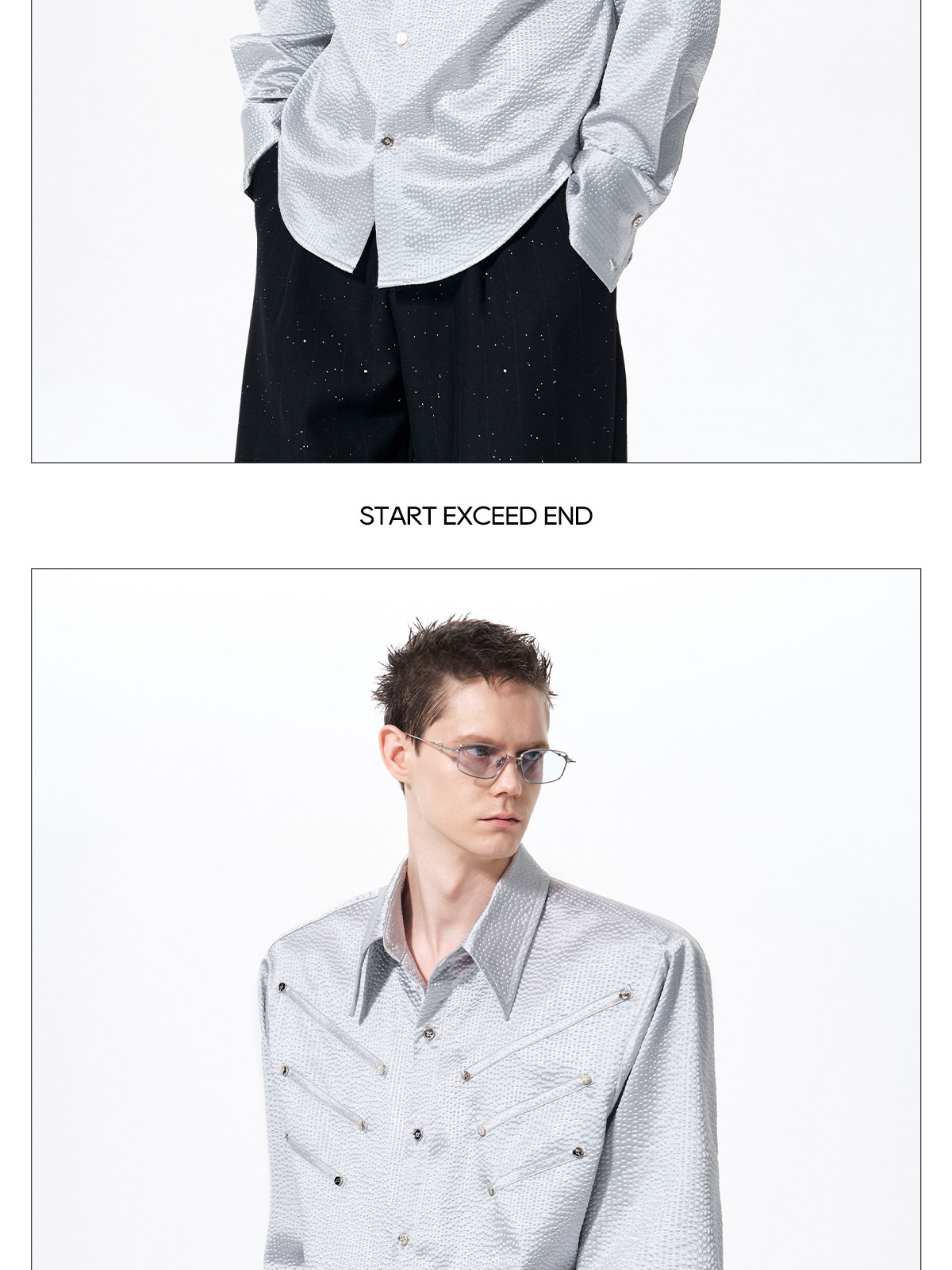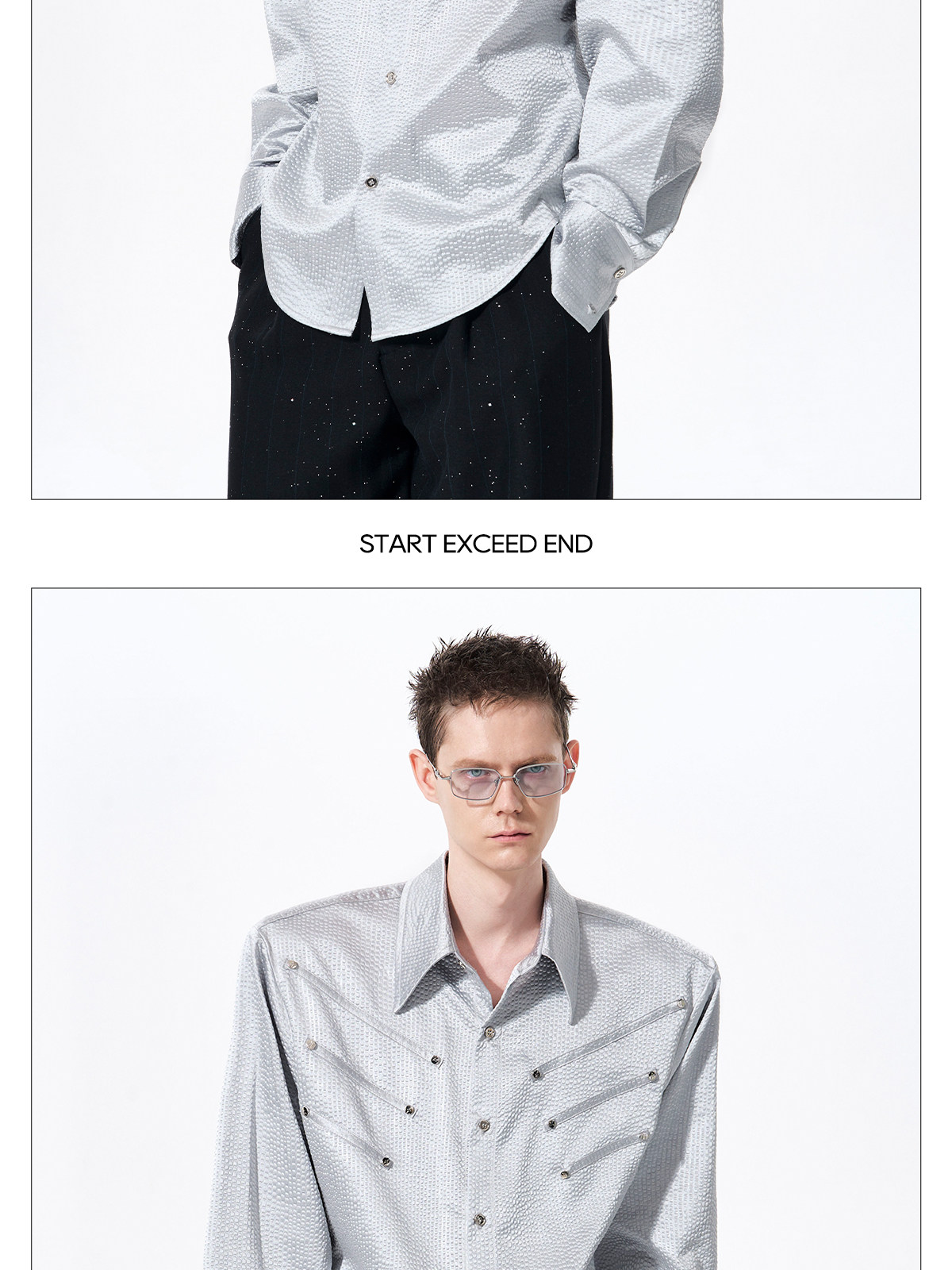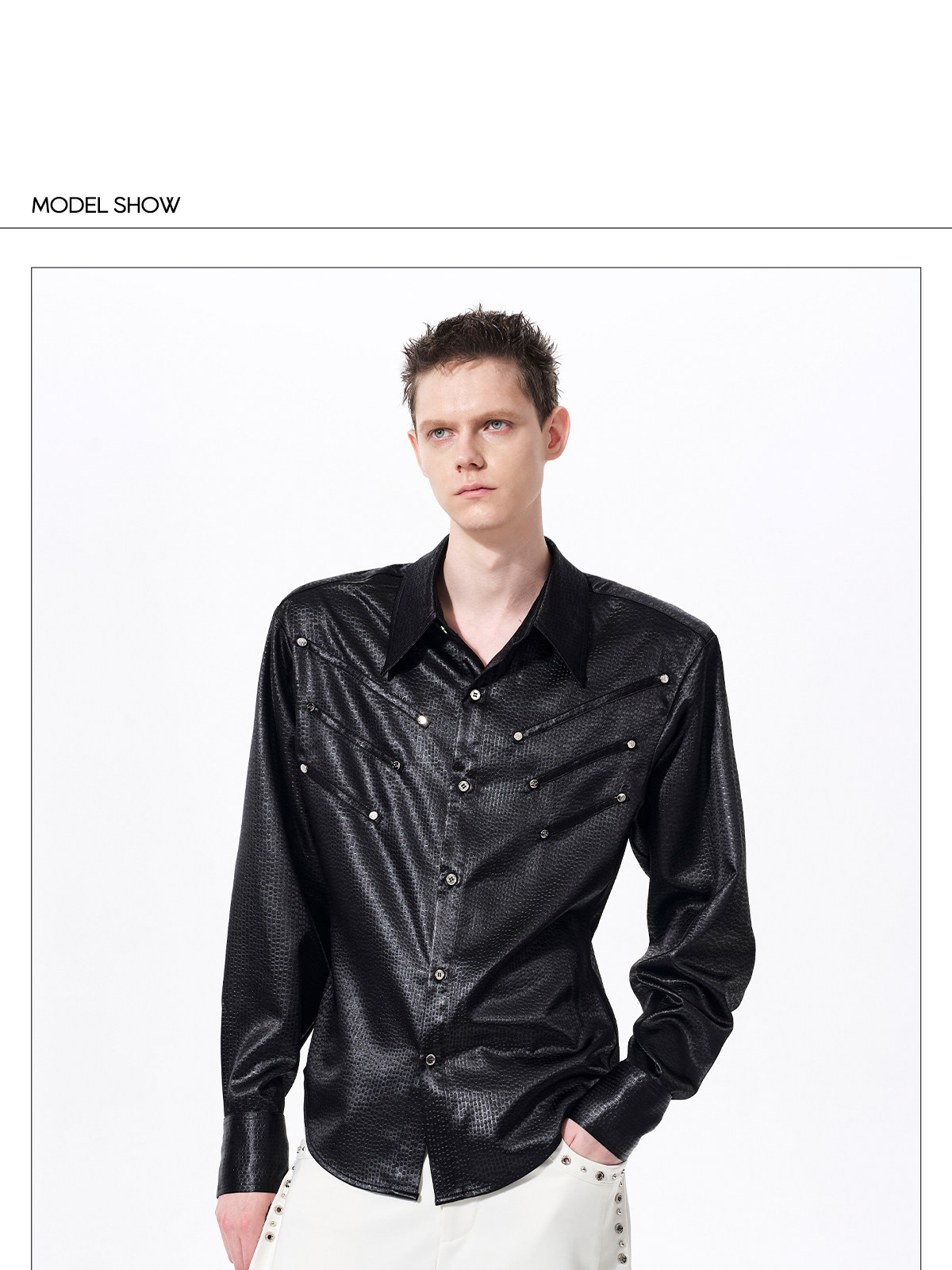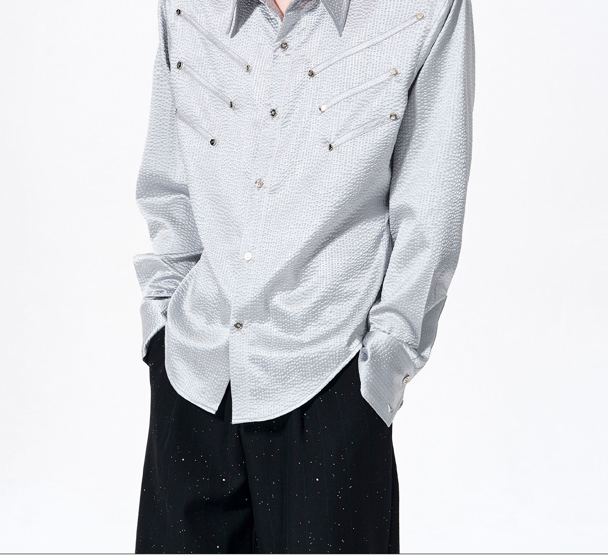 Texture Fishbone Shoulder-Pad Wrinkle-Resistant Long Sleeve Shirt WN23275
