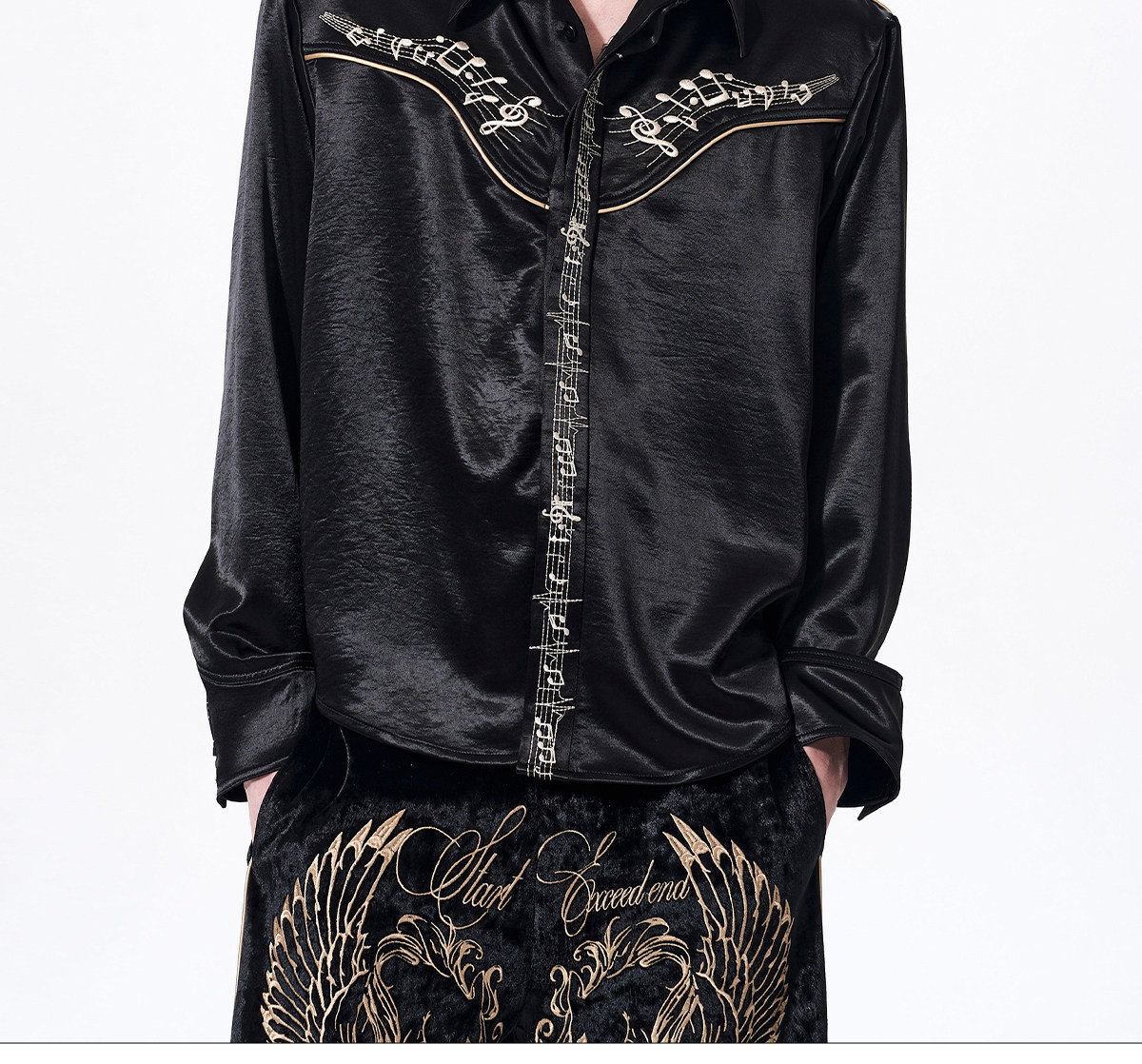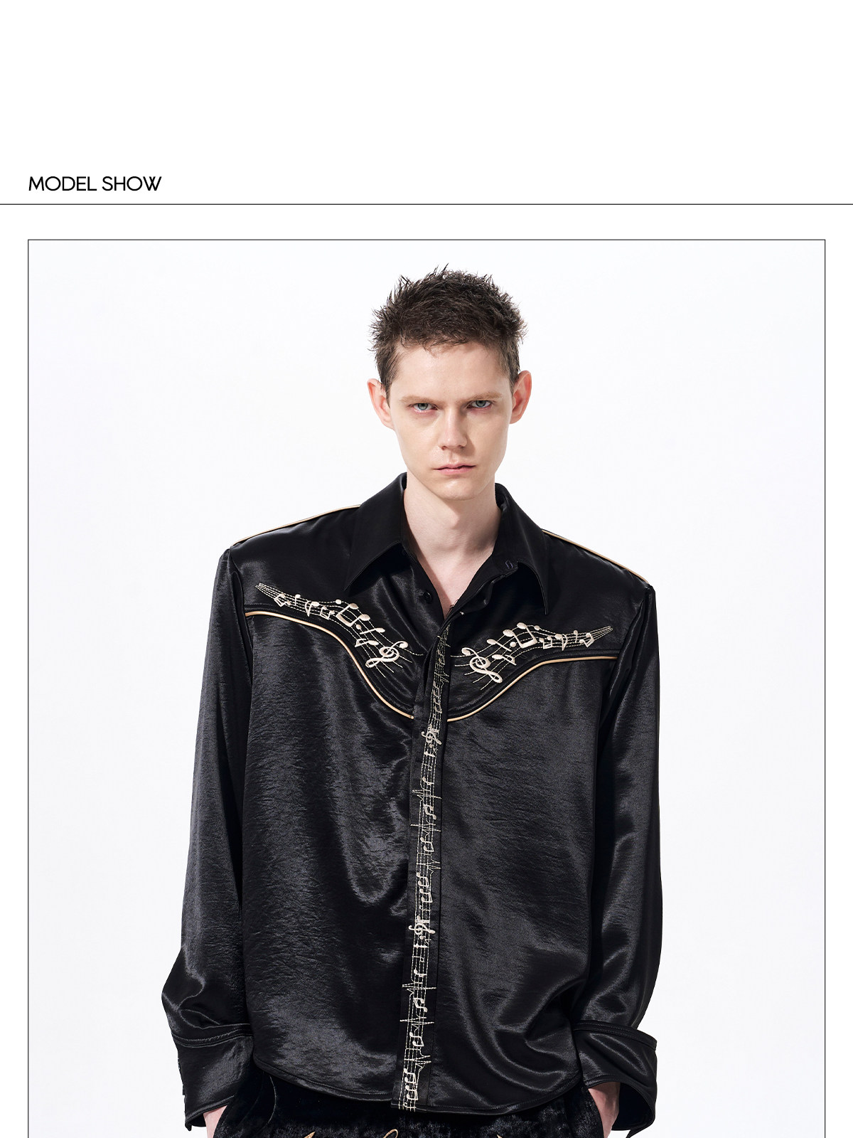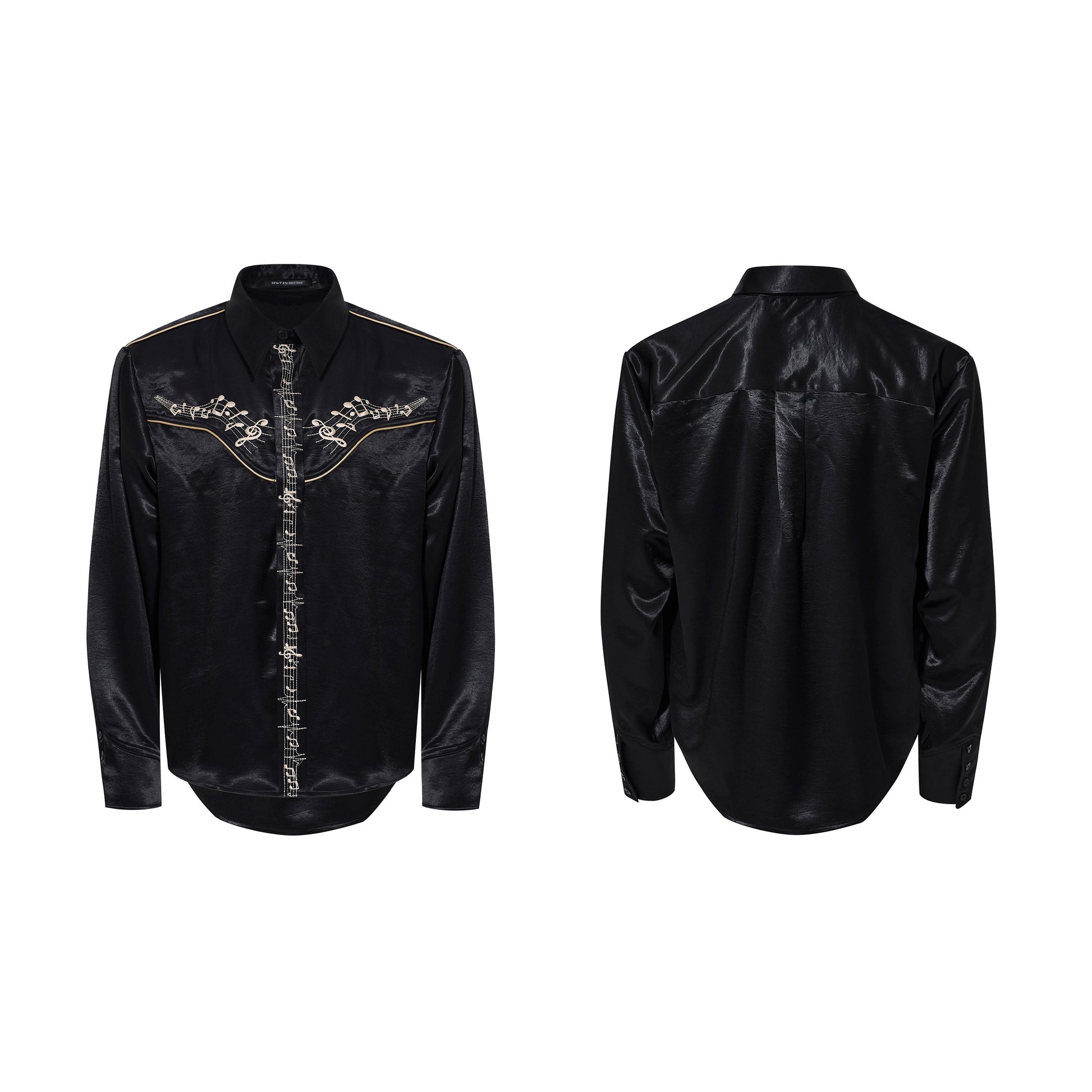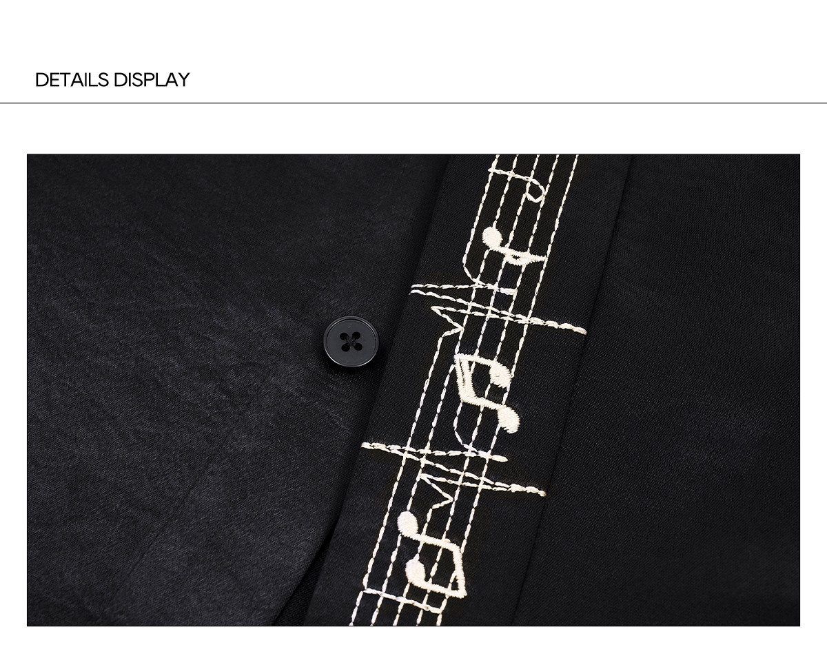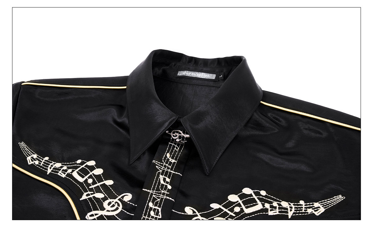 Draped Wrinkle-Resistant Note Embroidery Shoulder-Pad Long Sleeve Shirt WN23276