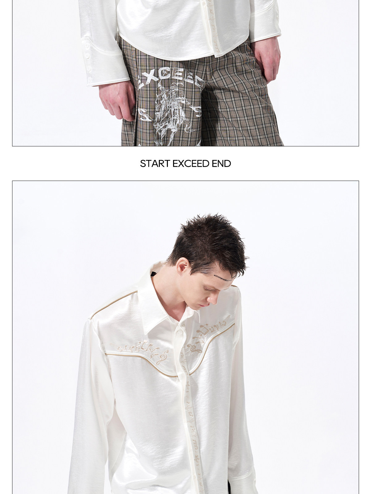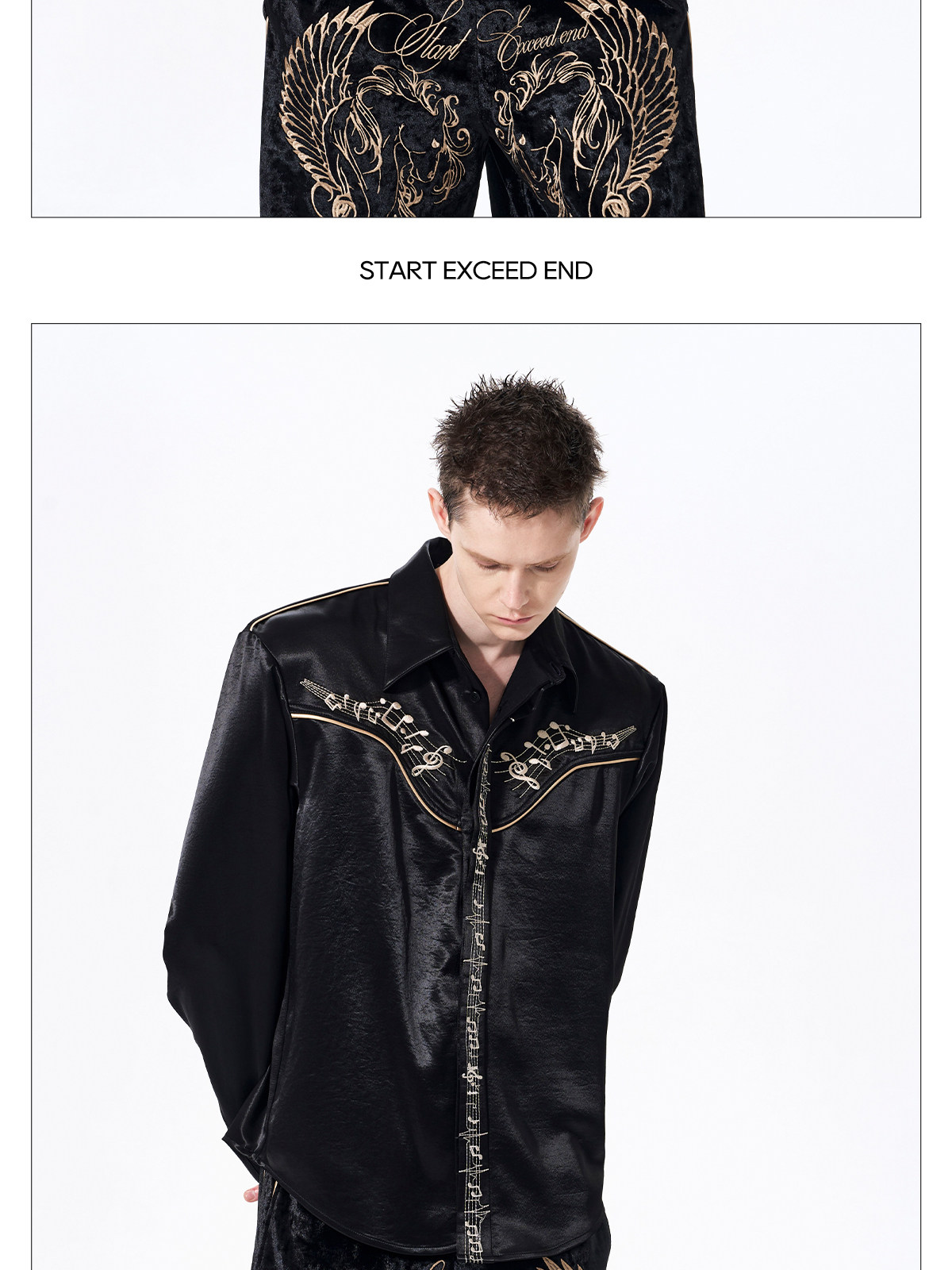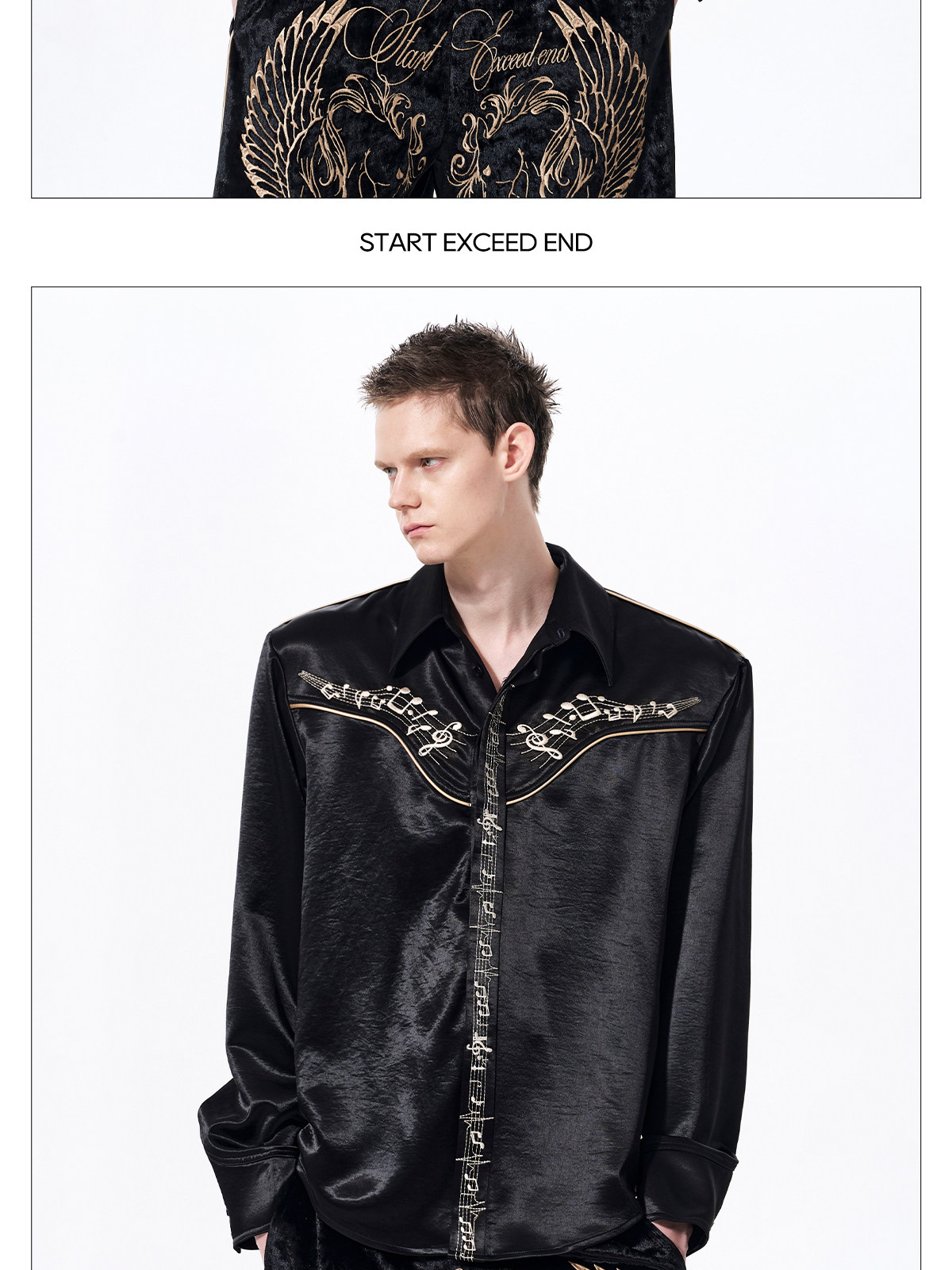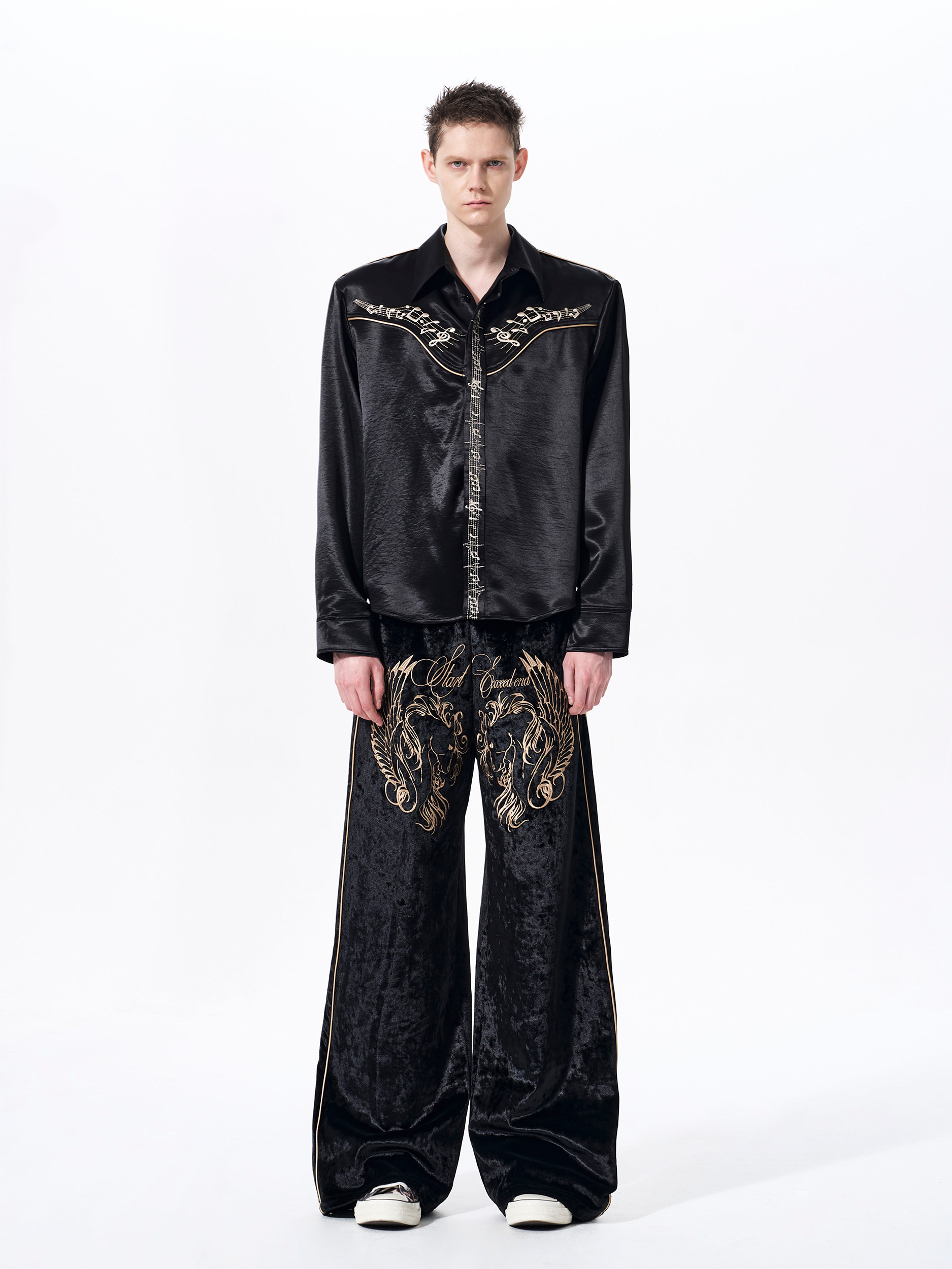 Draped Wrinkle-Resistant Note Embroidery Shoulder-Pad Long Sleeve Shirt WN23276