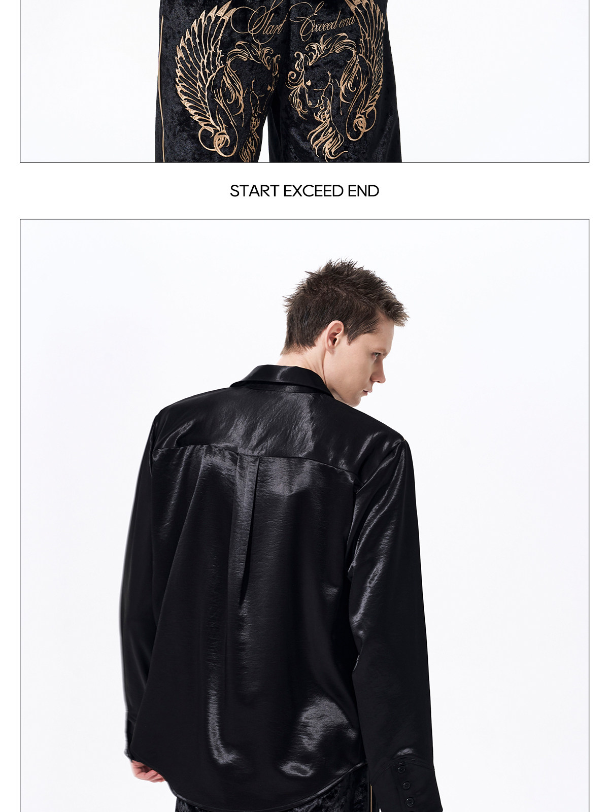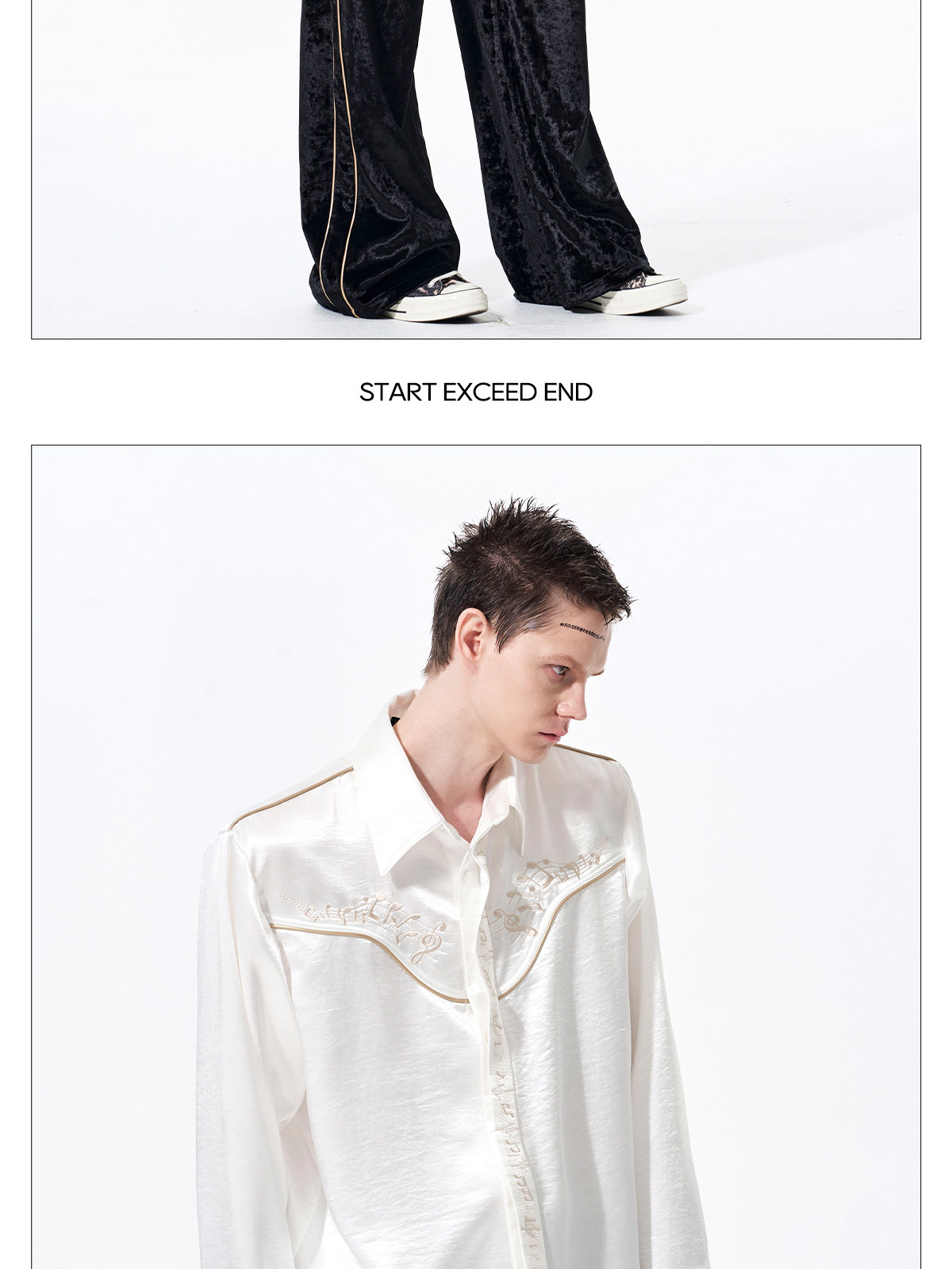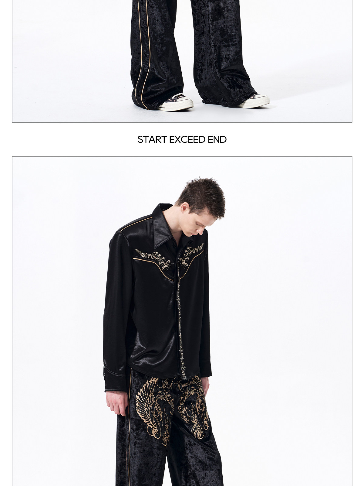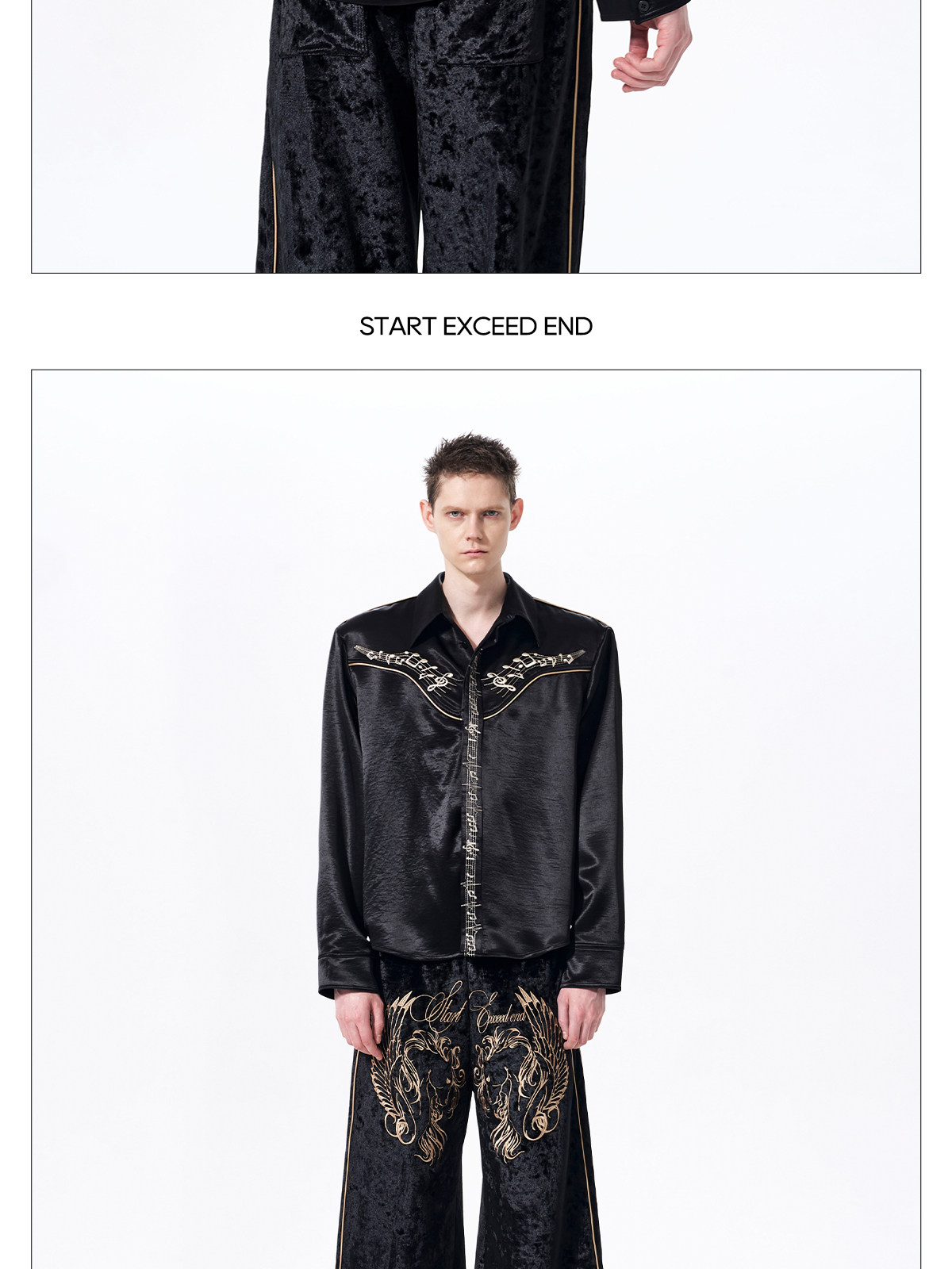 Draped Wrinkle-Resistant Note Embroidery Shoulder-Pad Long Sleeve Shirt WN23276