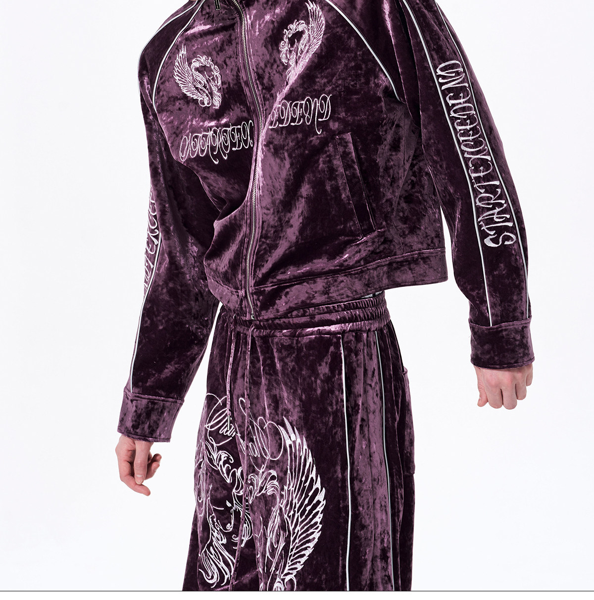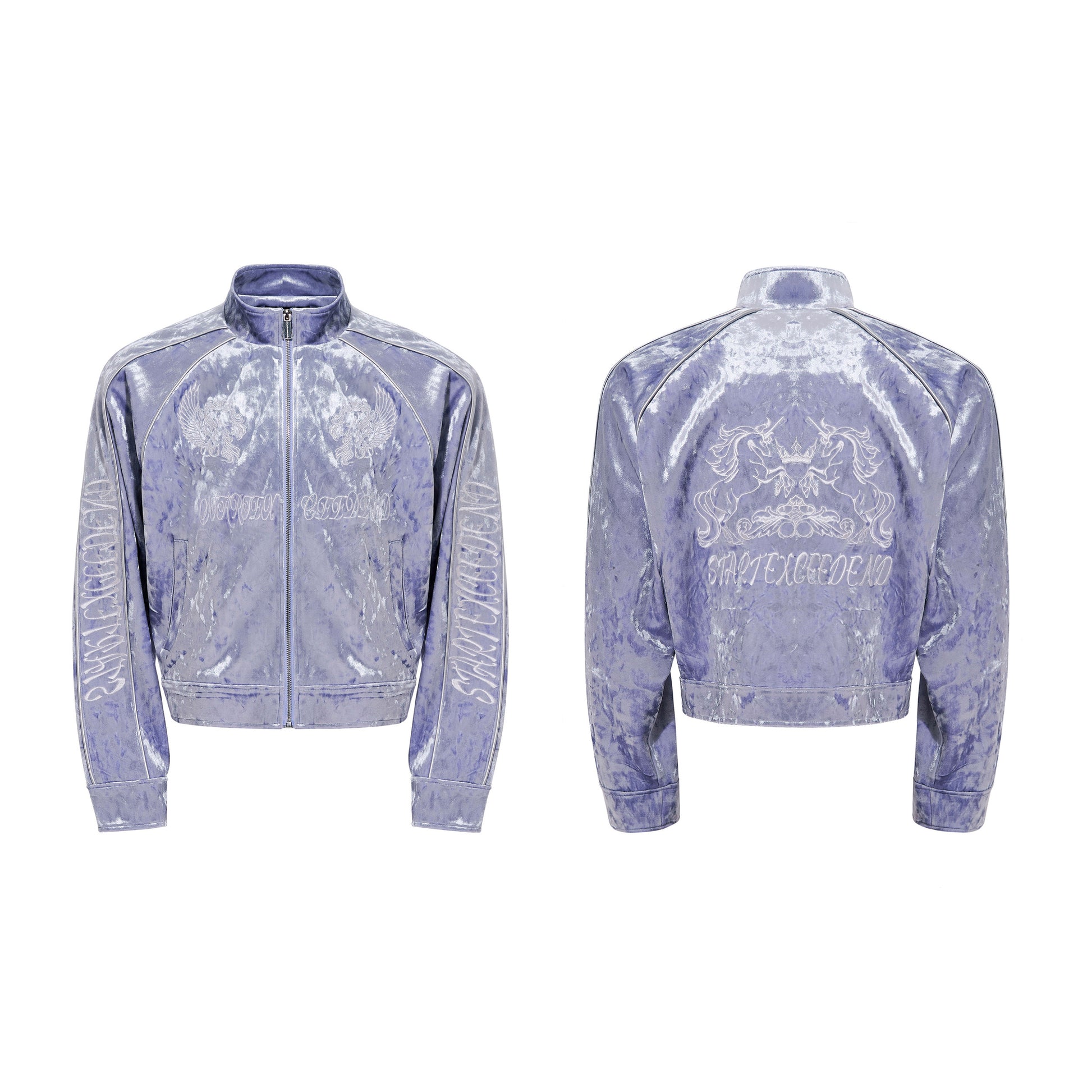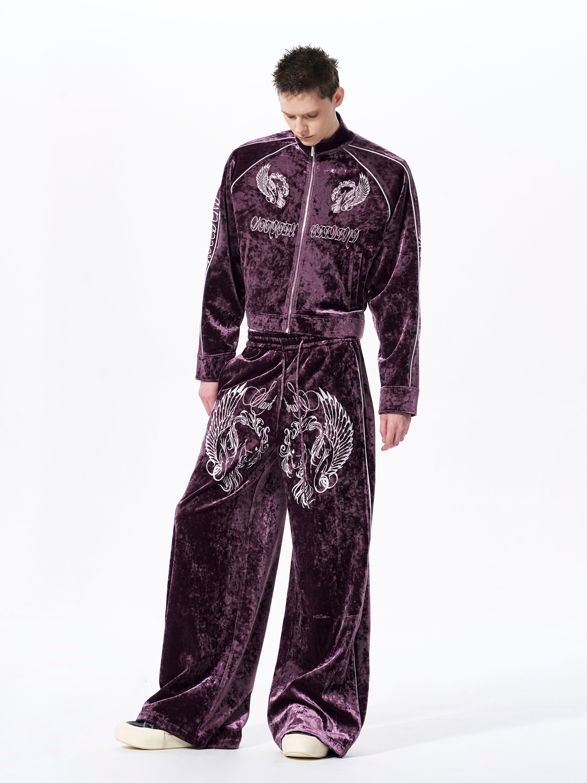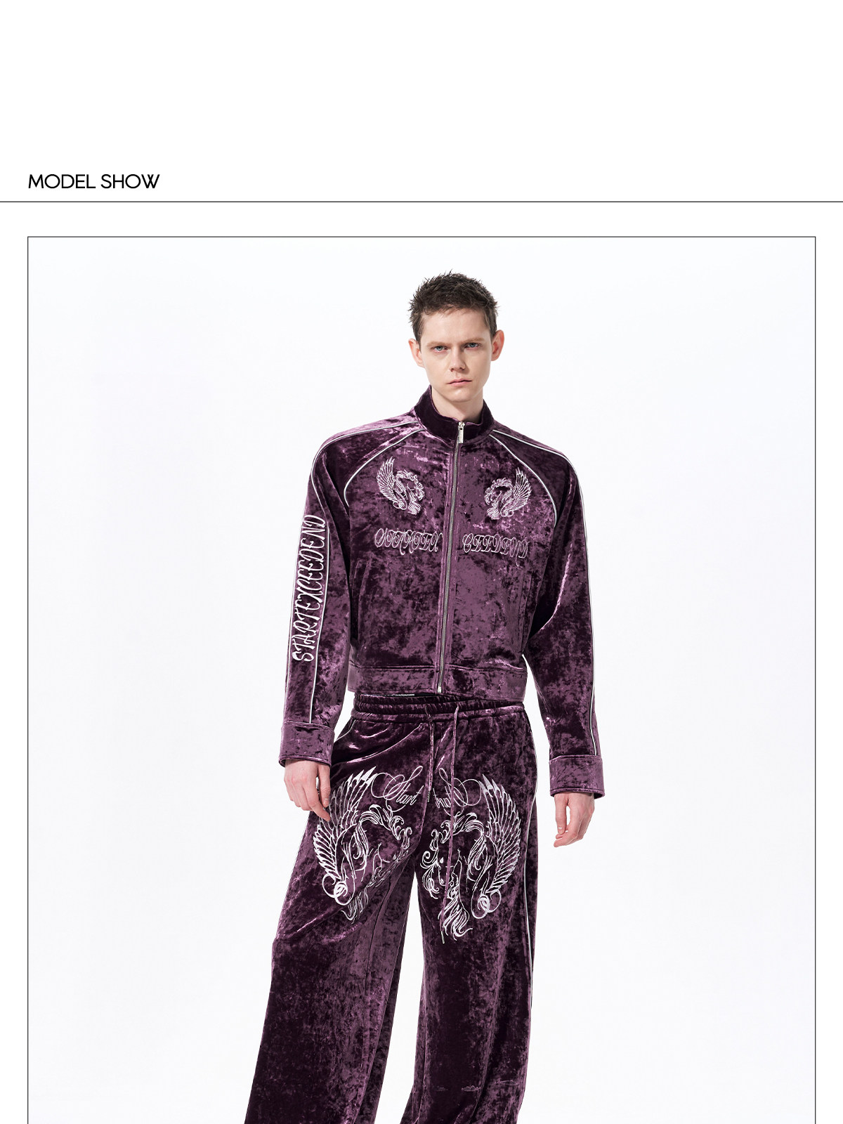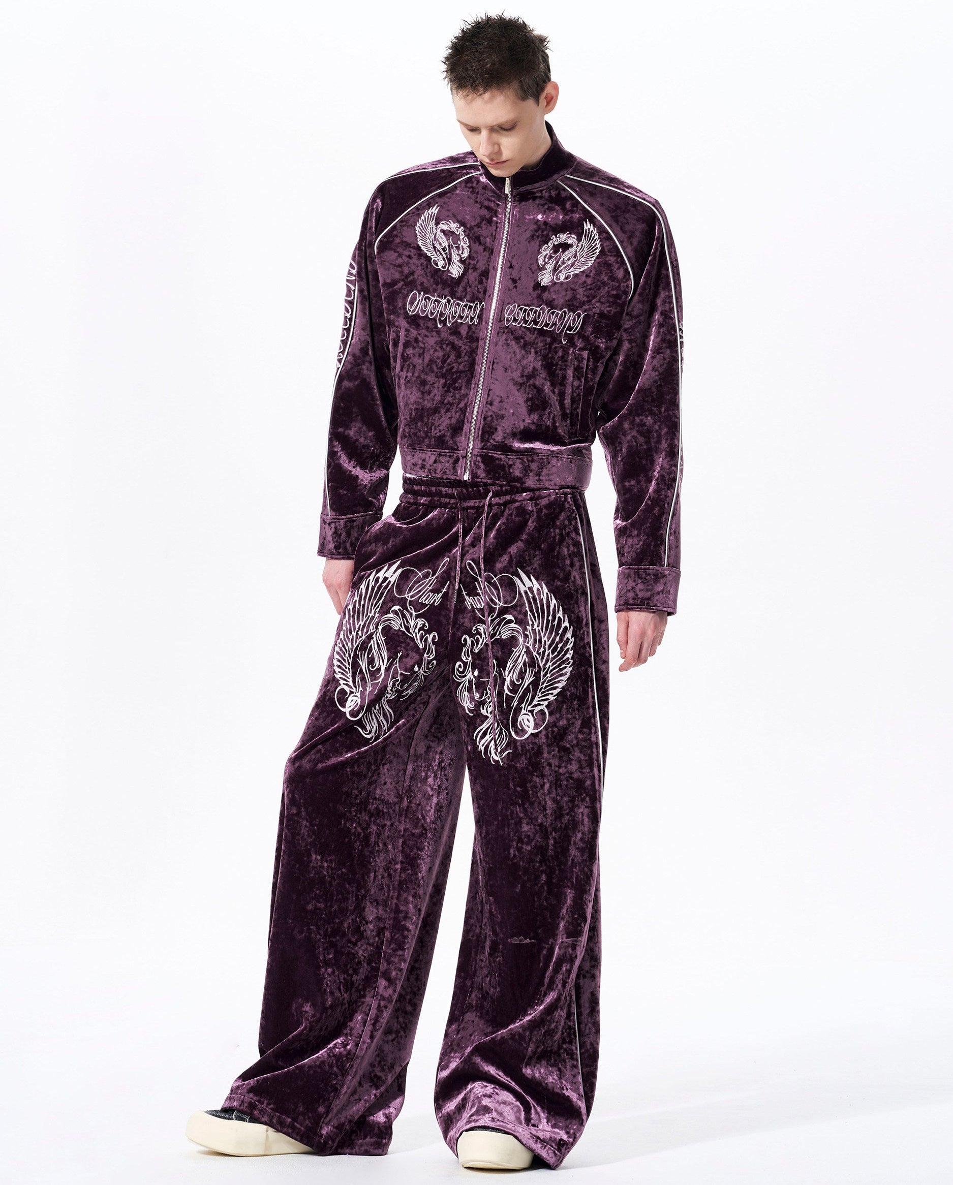 War Horse Embroidery Velvet Stand Neck Short Jacket & Pants Setup WN23277