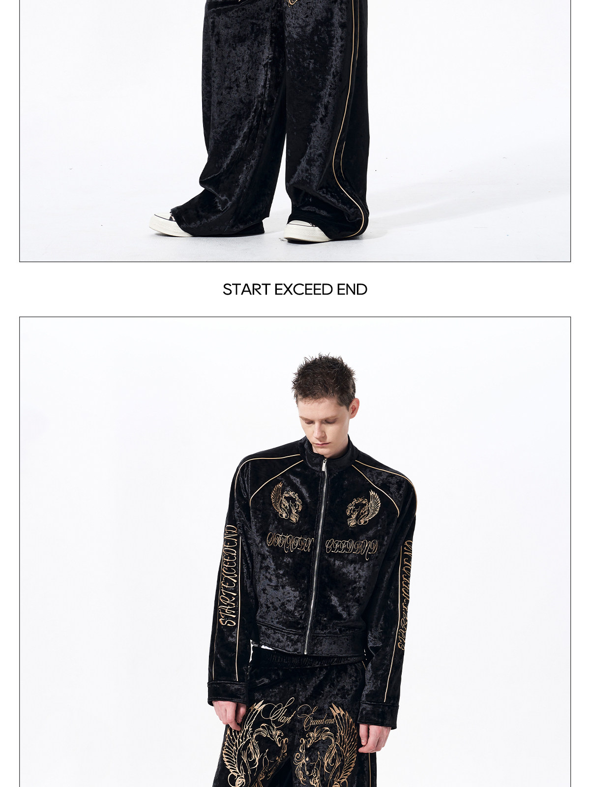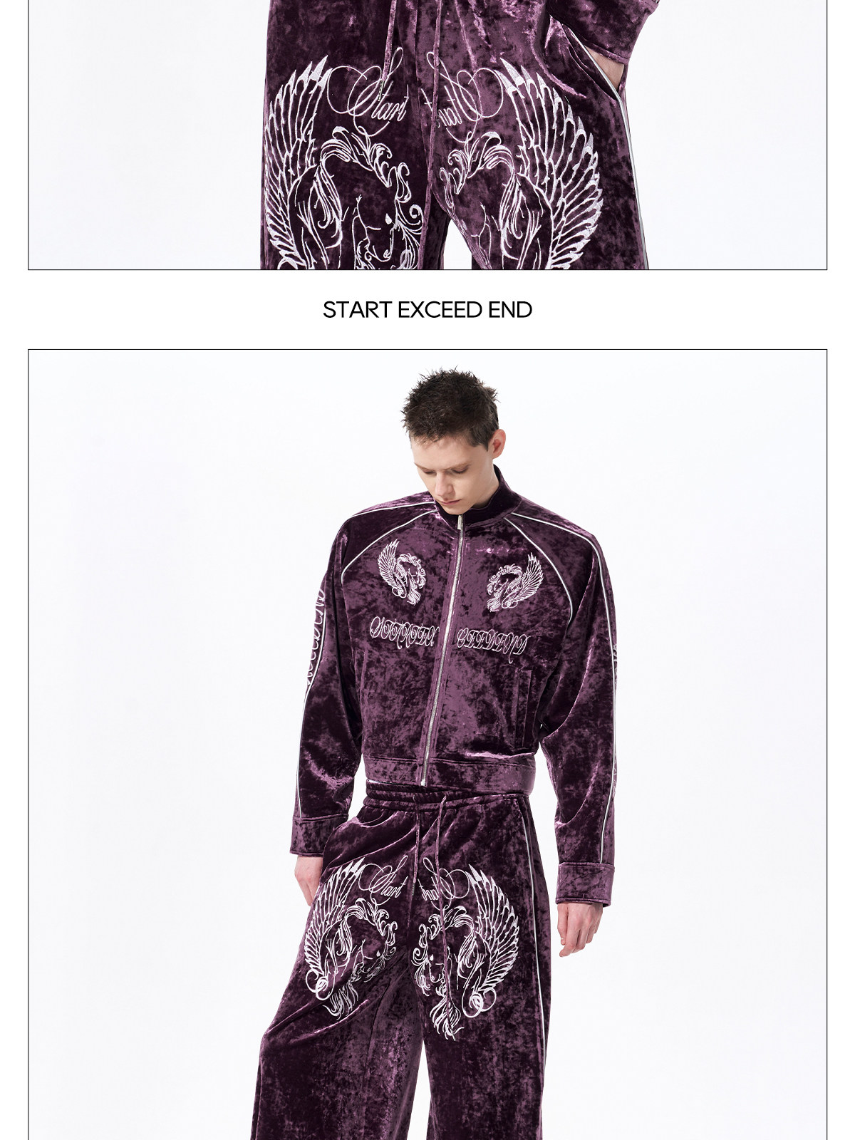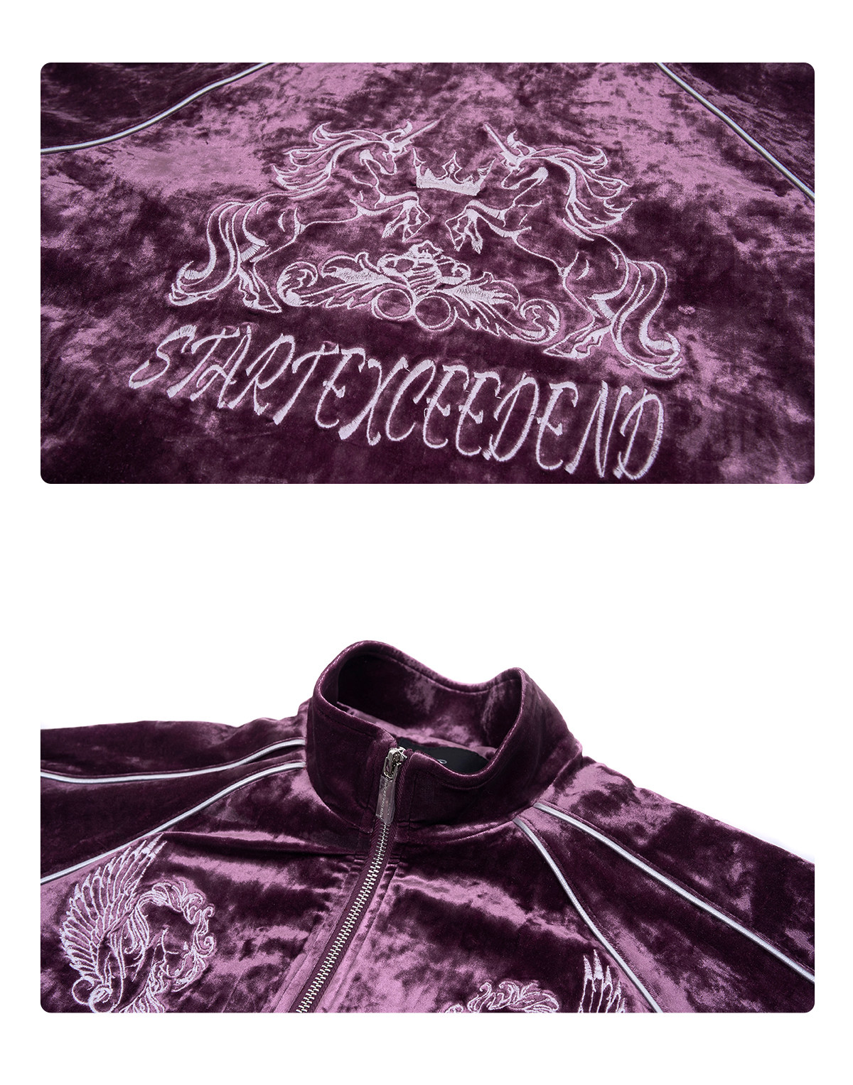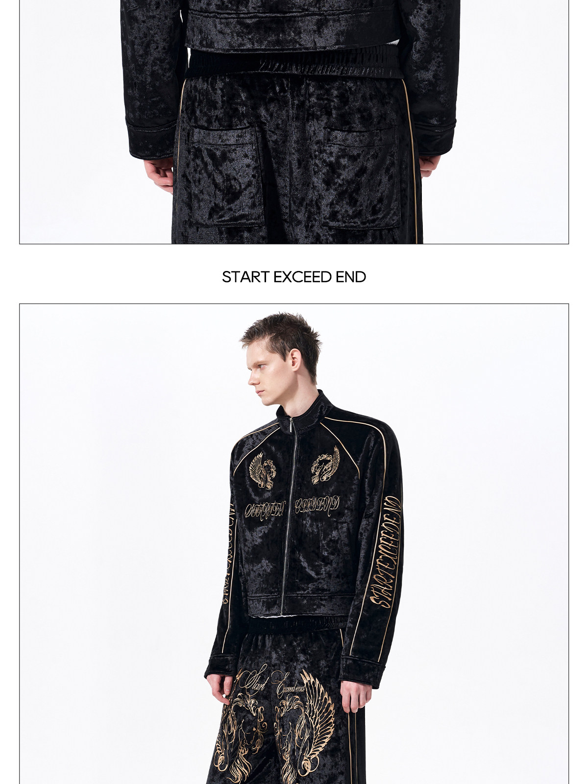 War Horse Embroidery Velvet Stand Neck Short Jacket & Pants Setup WN23277