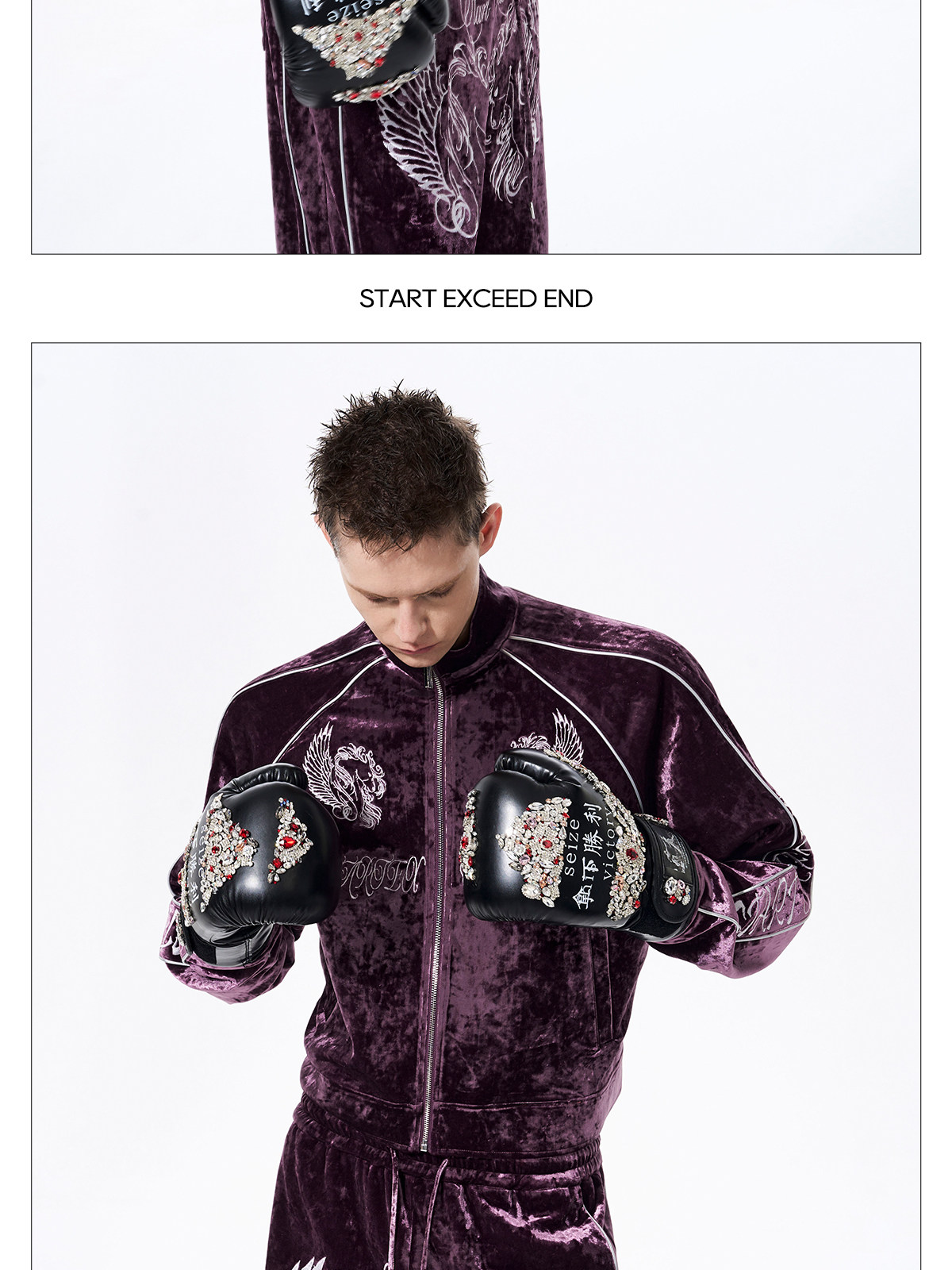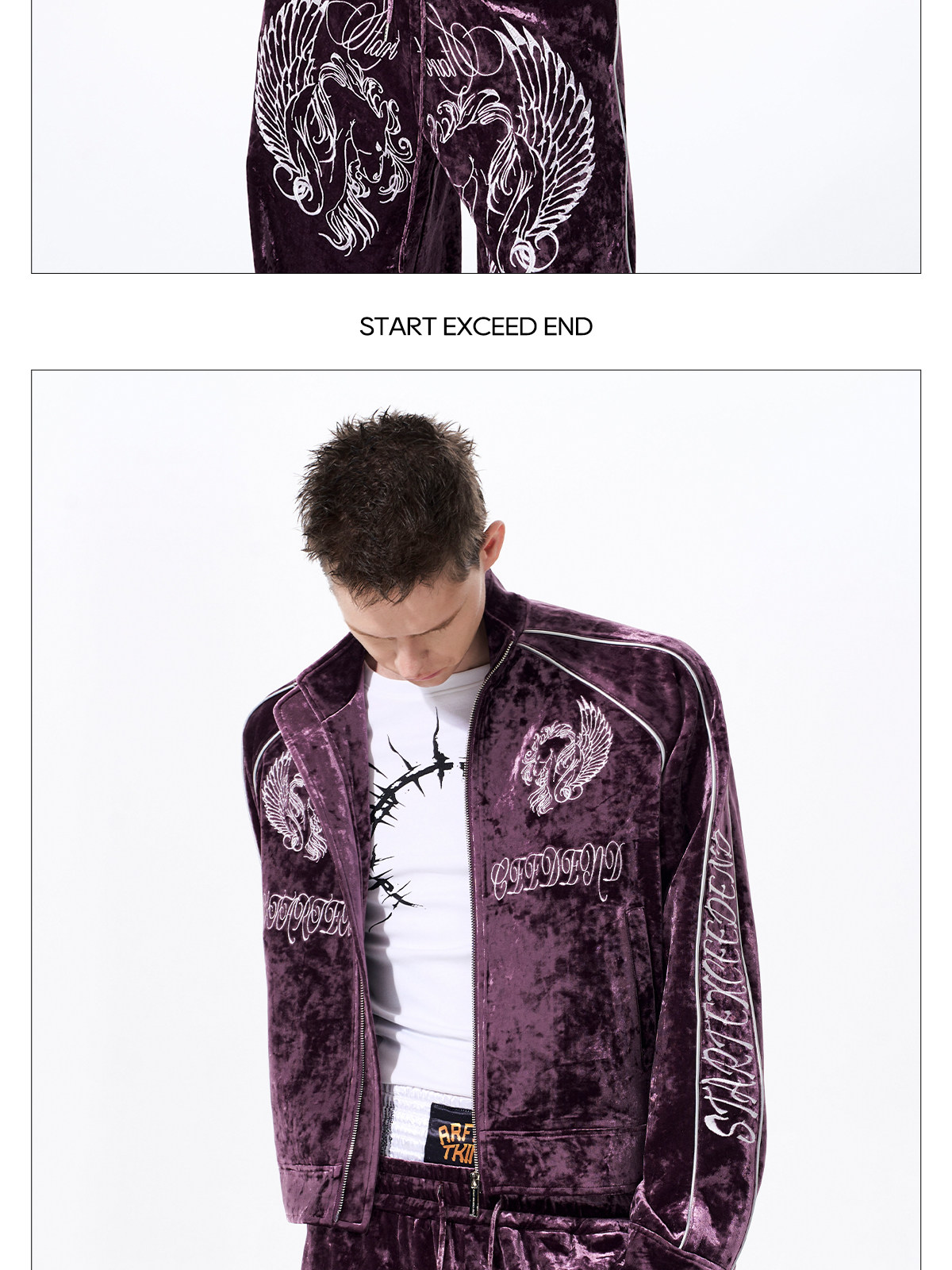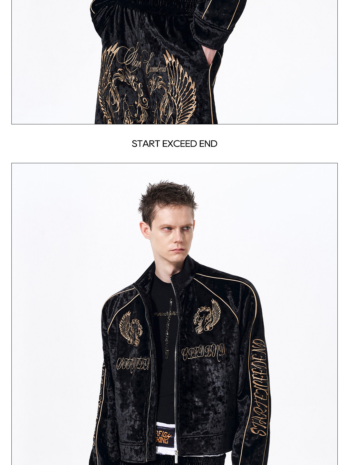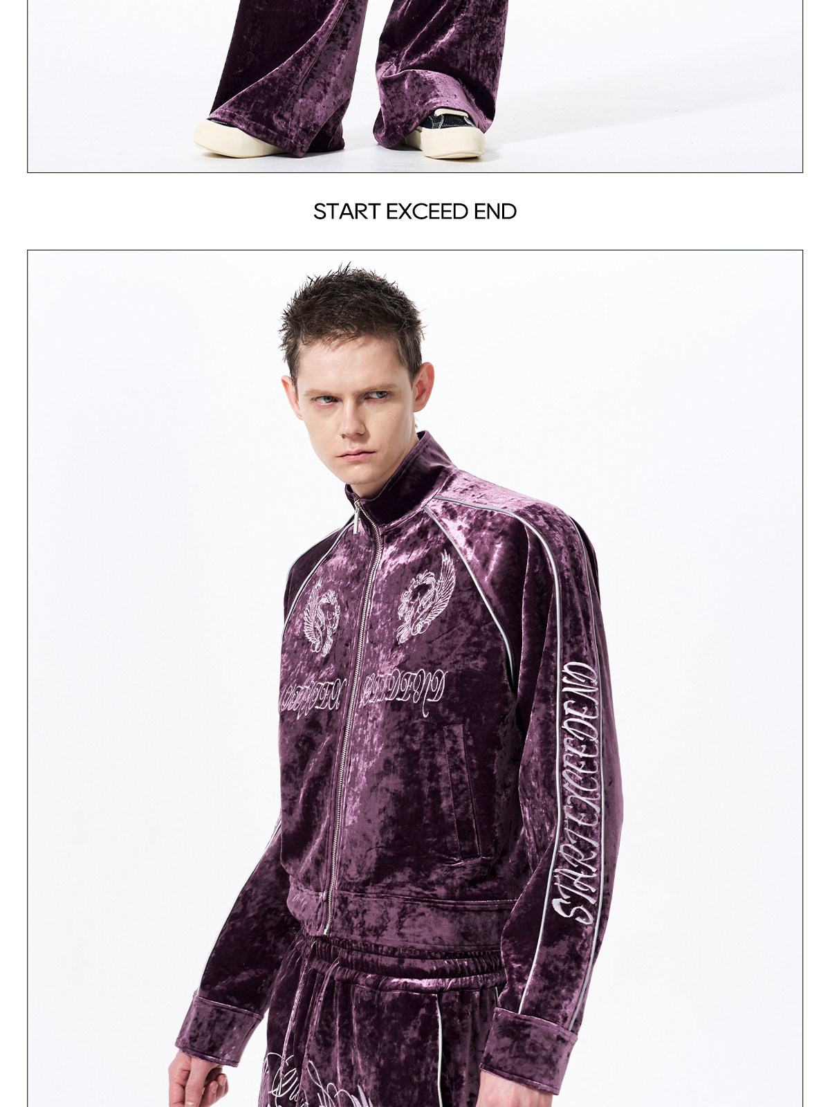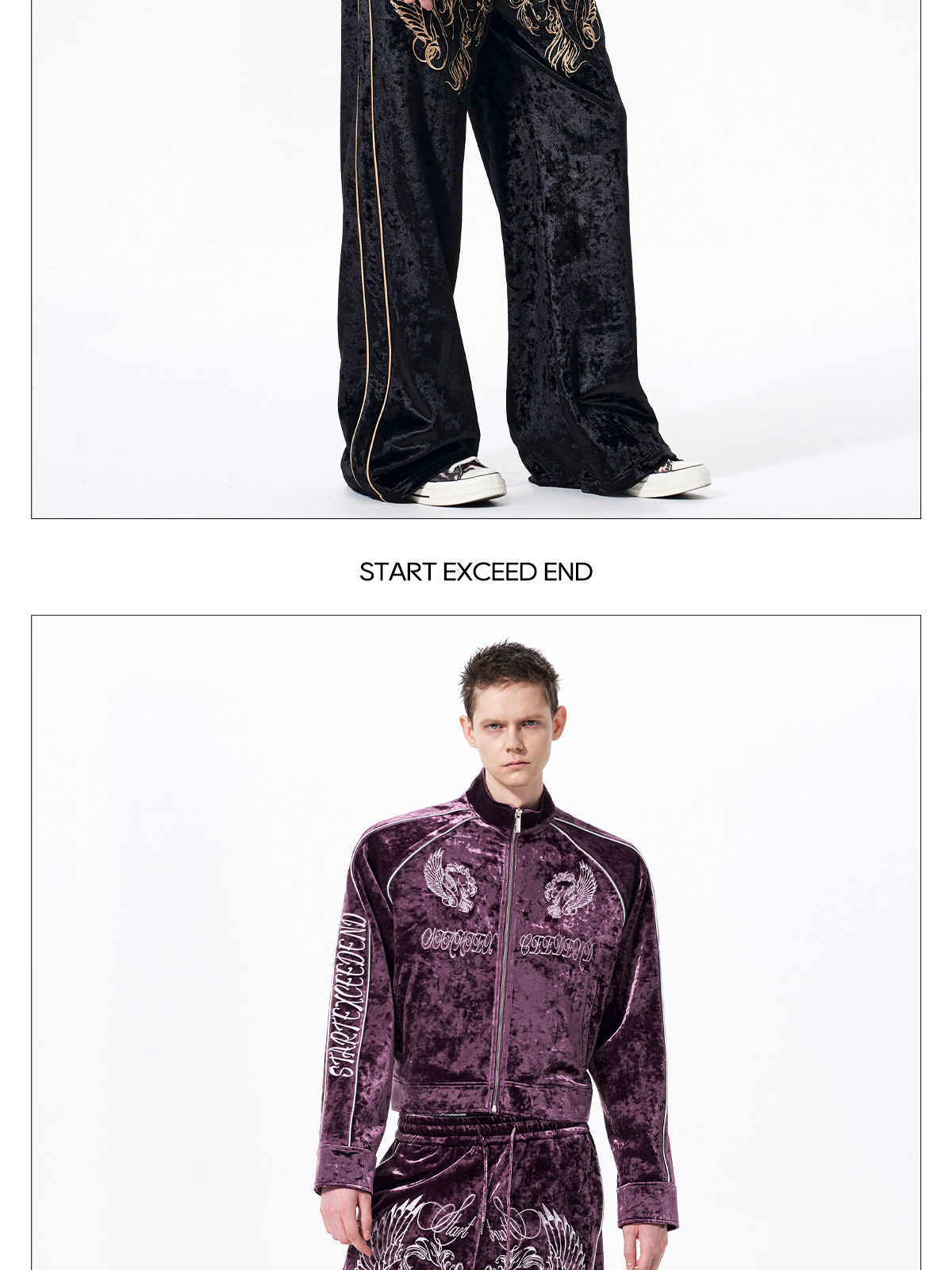 War Horse Embroidery Velvet Stand Neck Short Jacket & Pants Setup WN23277