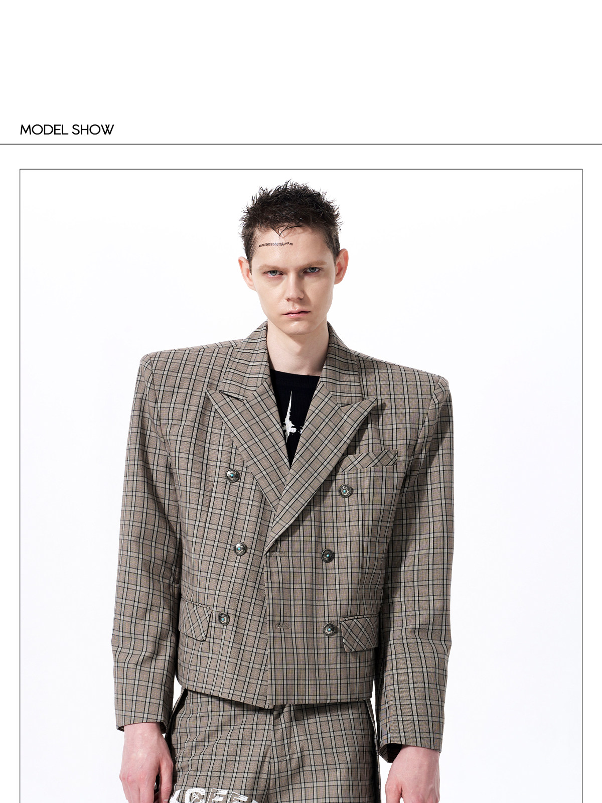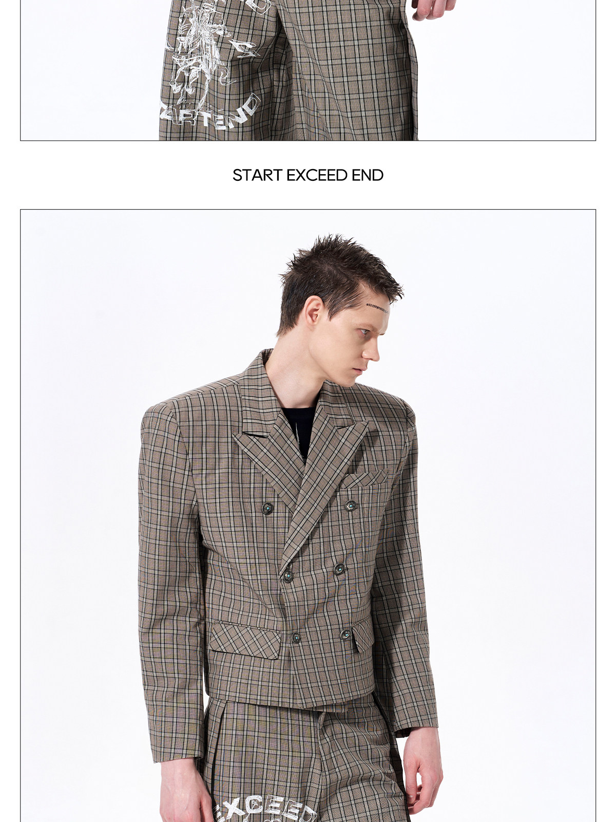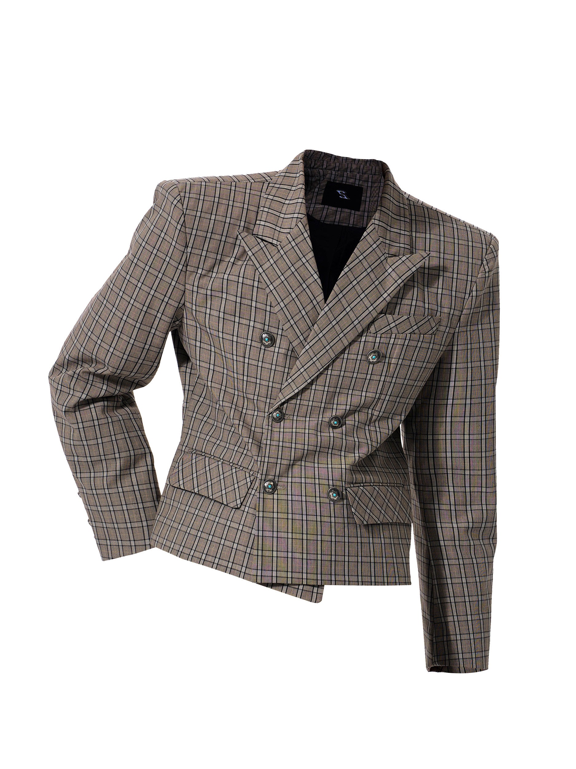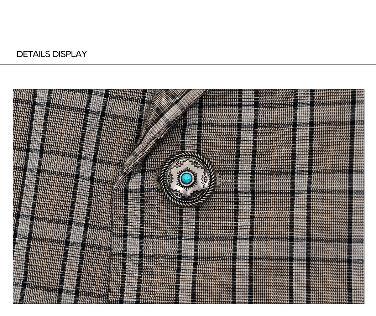 Plaid Double-Breasted Short Tailored Jacket & Trousers Setup WN23282