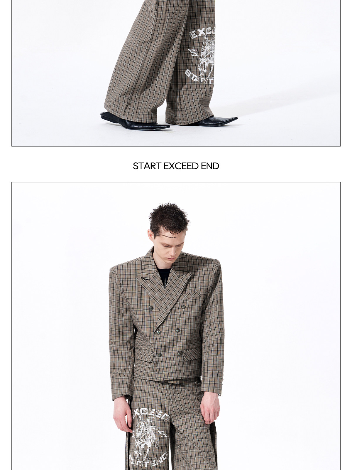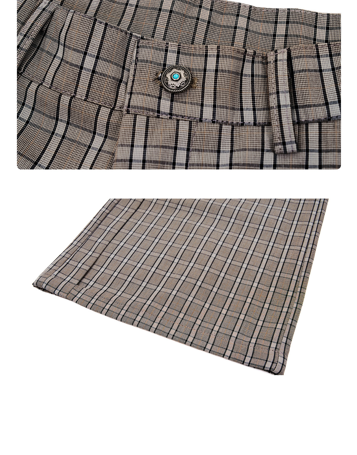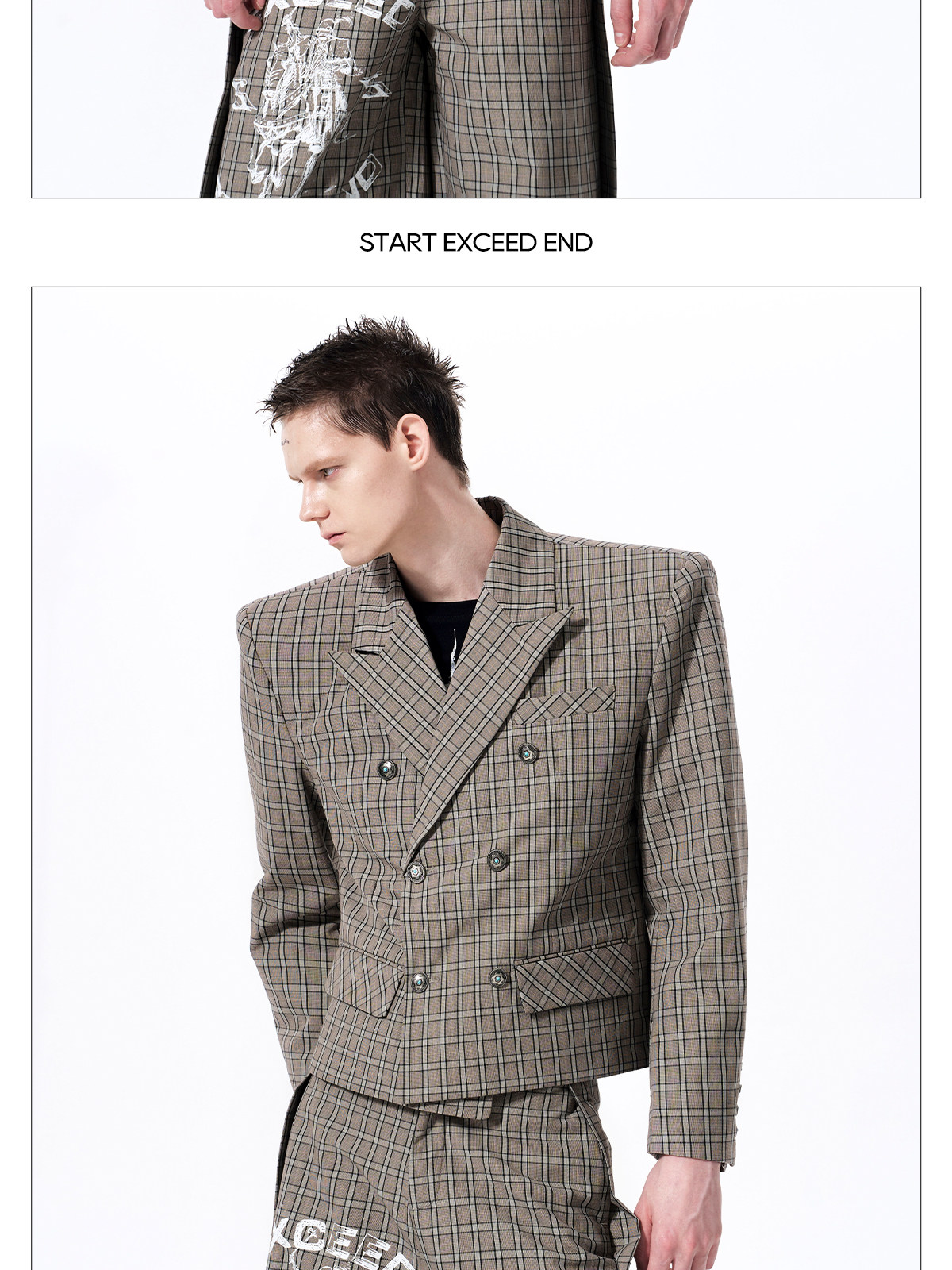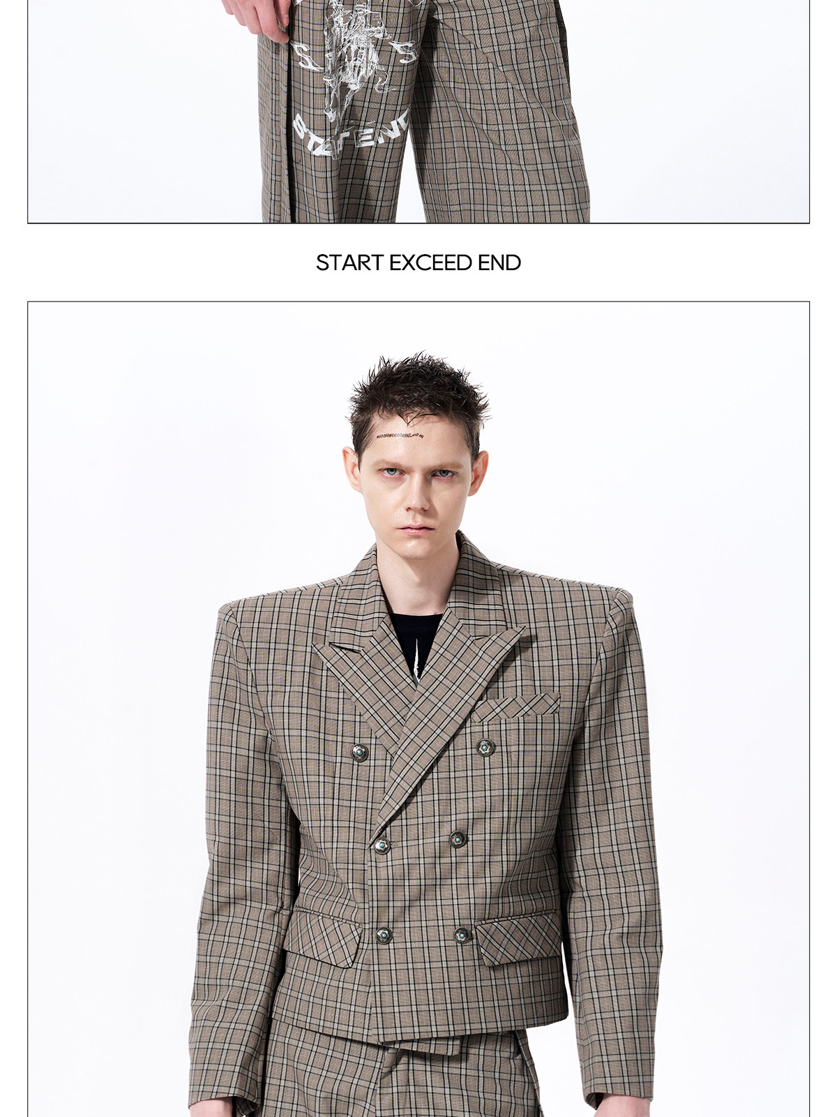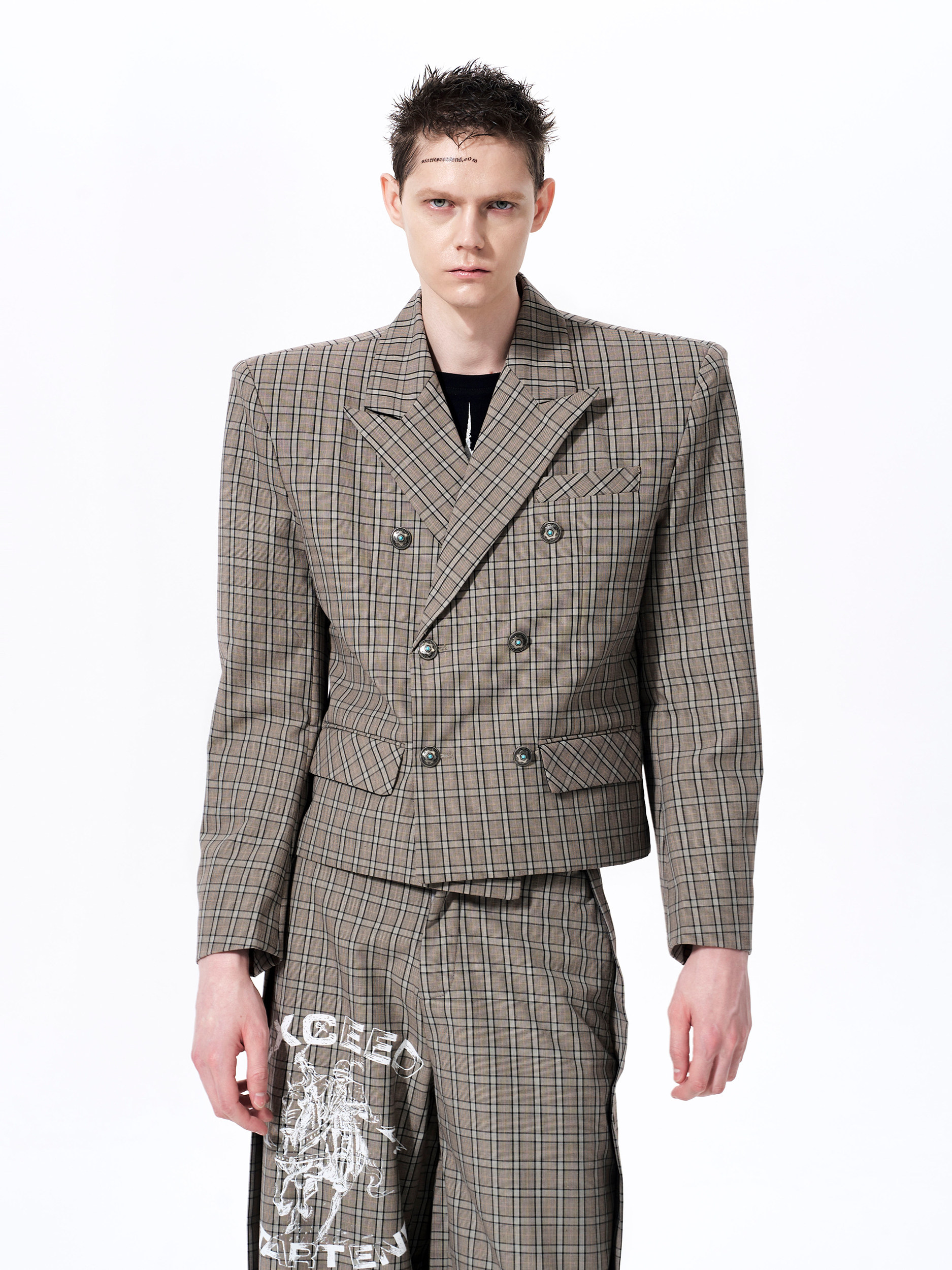 Plaid Double-Breasted Short Tailored Jacket & Trousers Setup WN23282