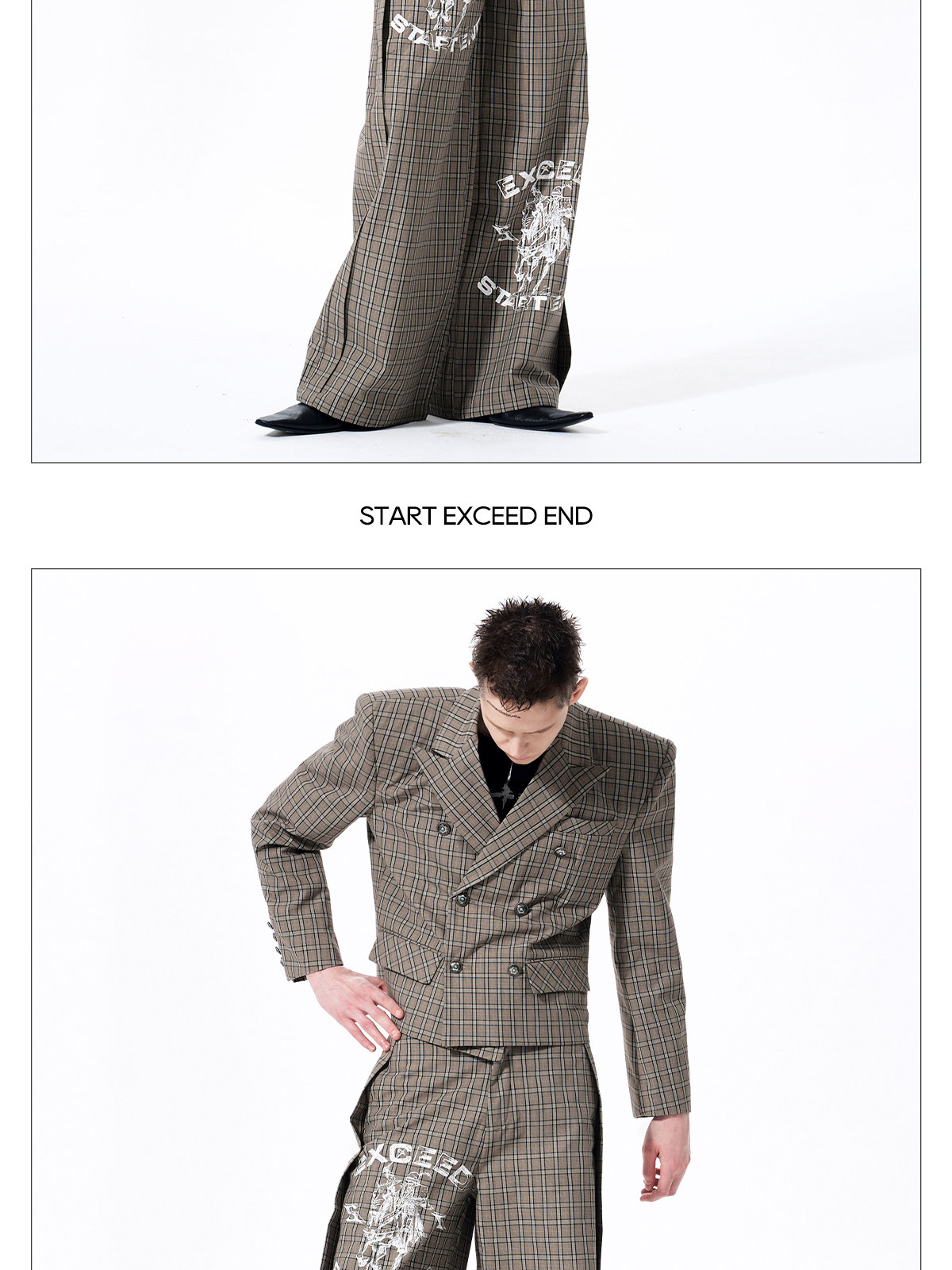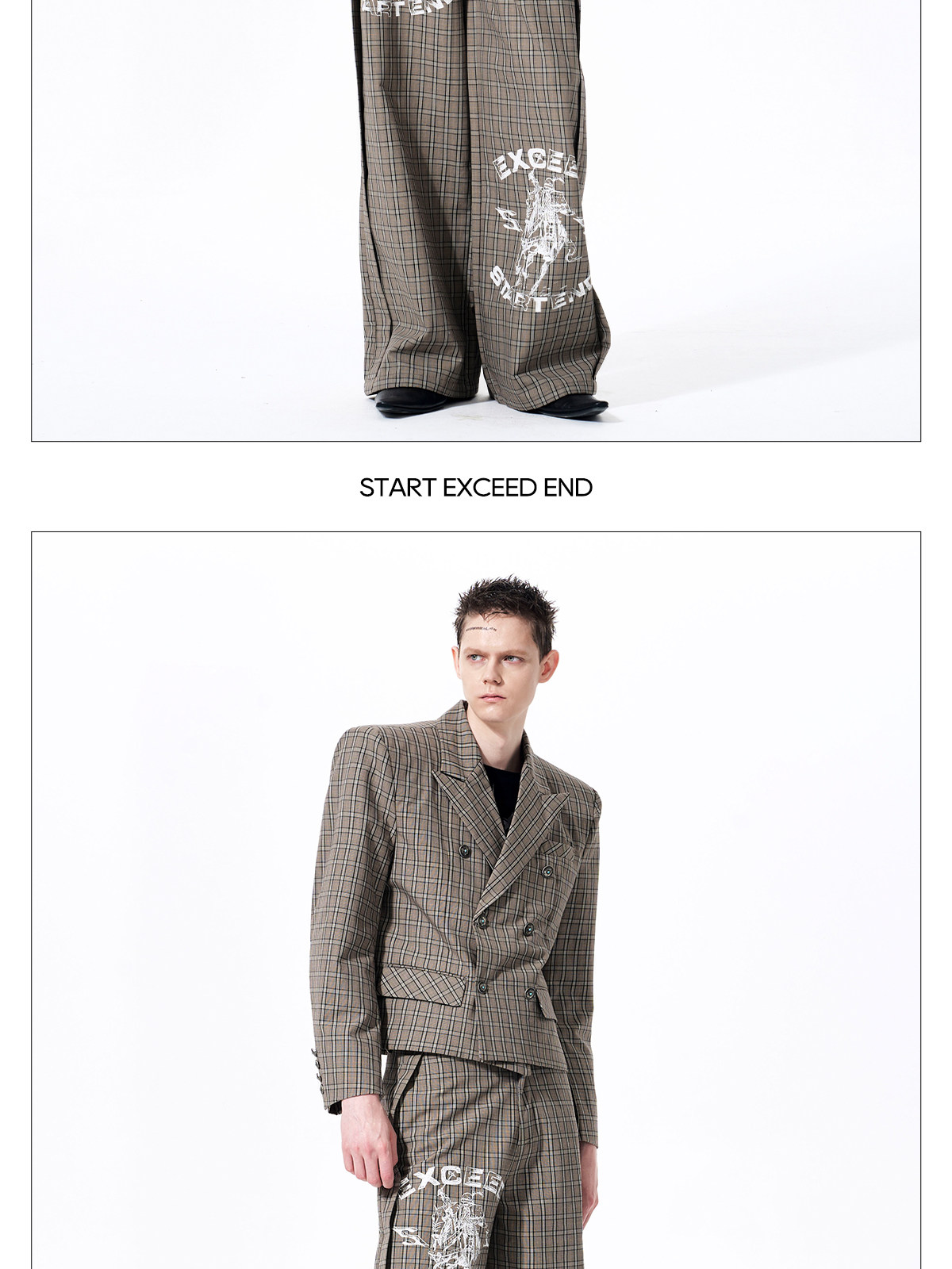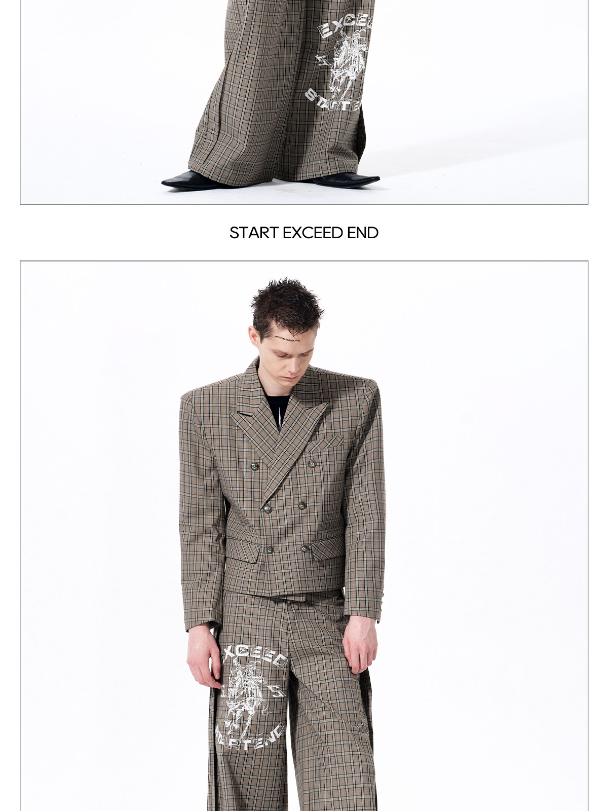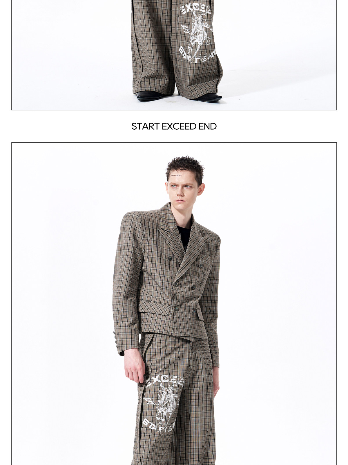 Plaid Double-Breasted Short Tailored Jacket & Trousers Setup WN23282