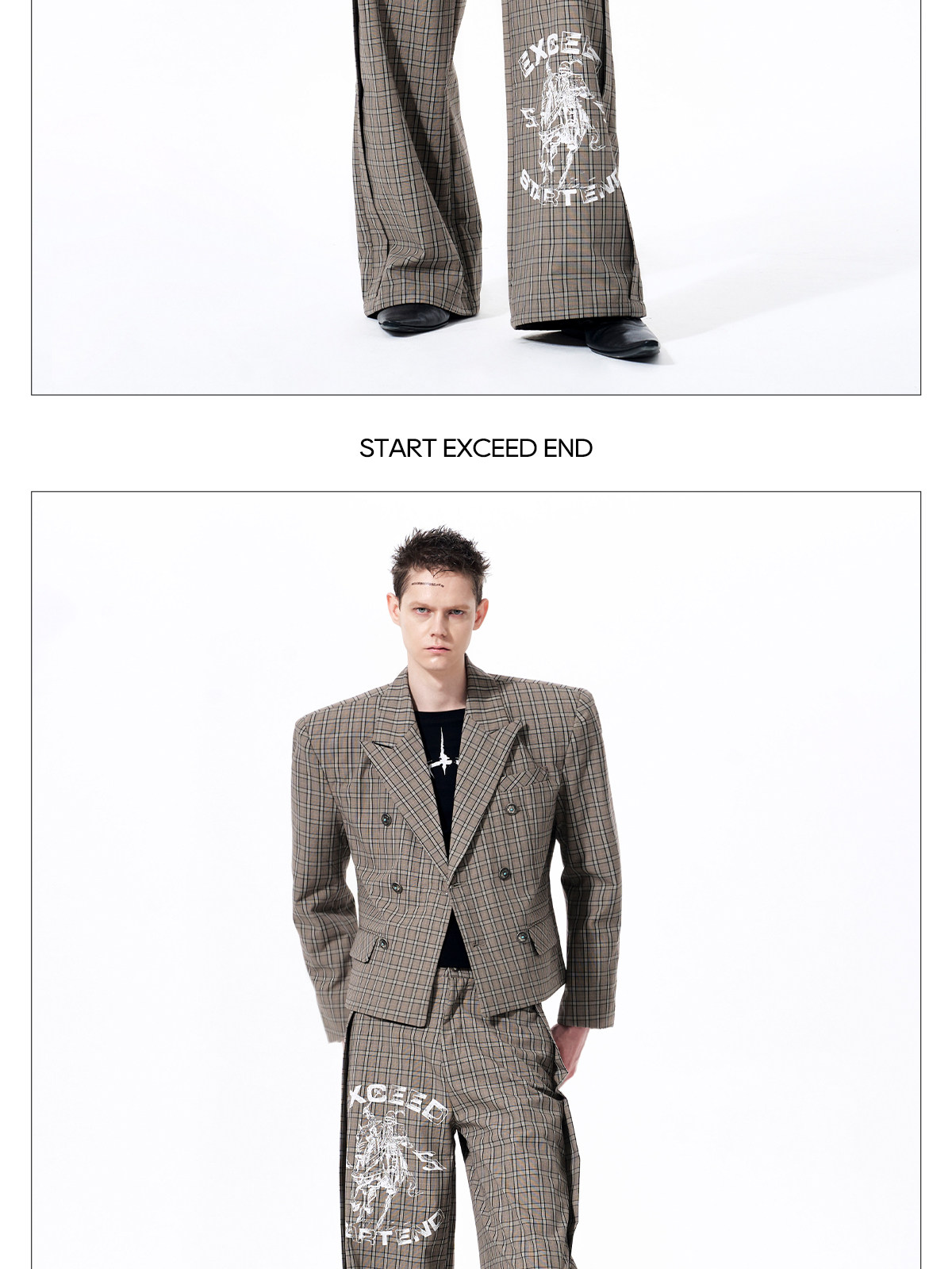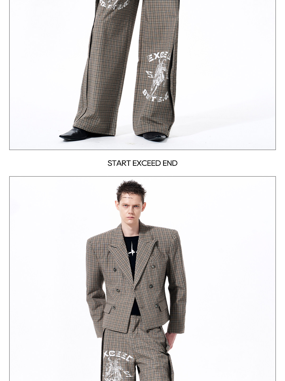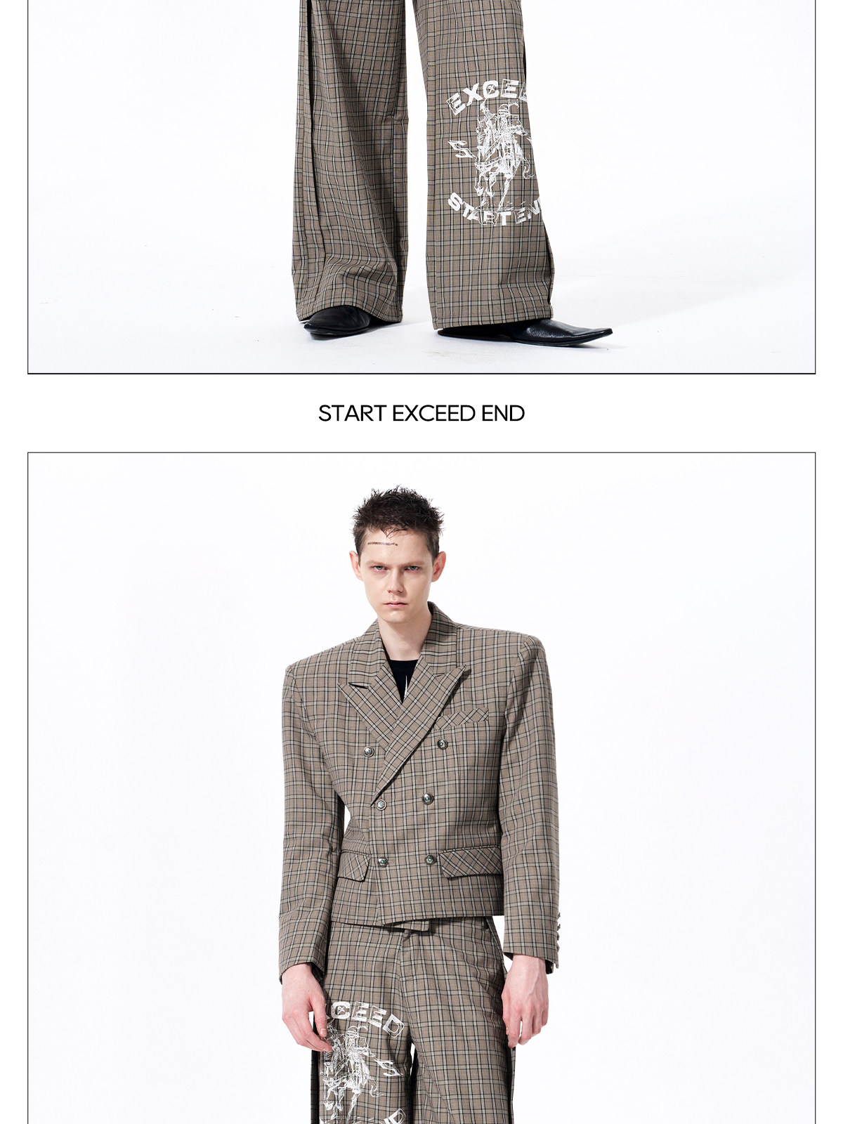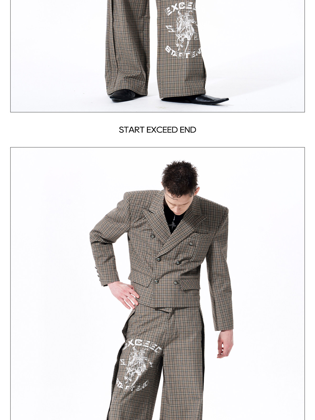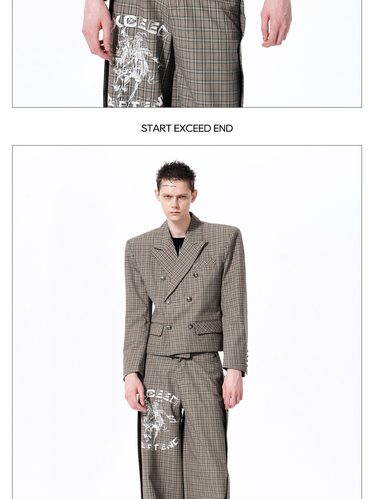 Plaid Double-Breasted Short Tailored Jacket & Trousers Setup WN23282