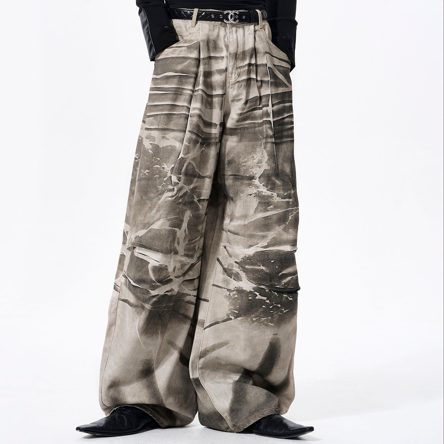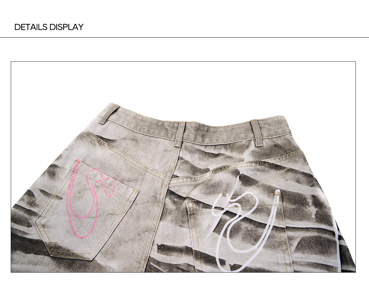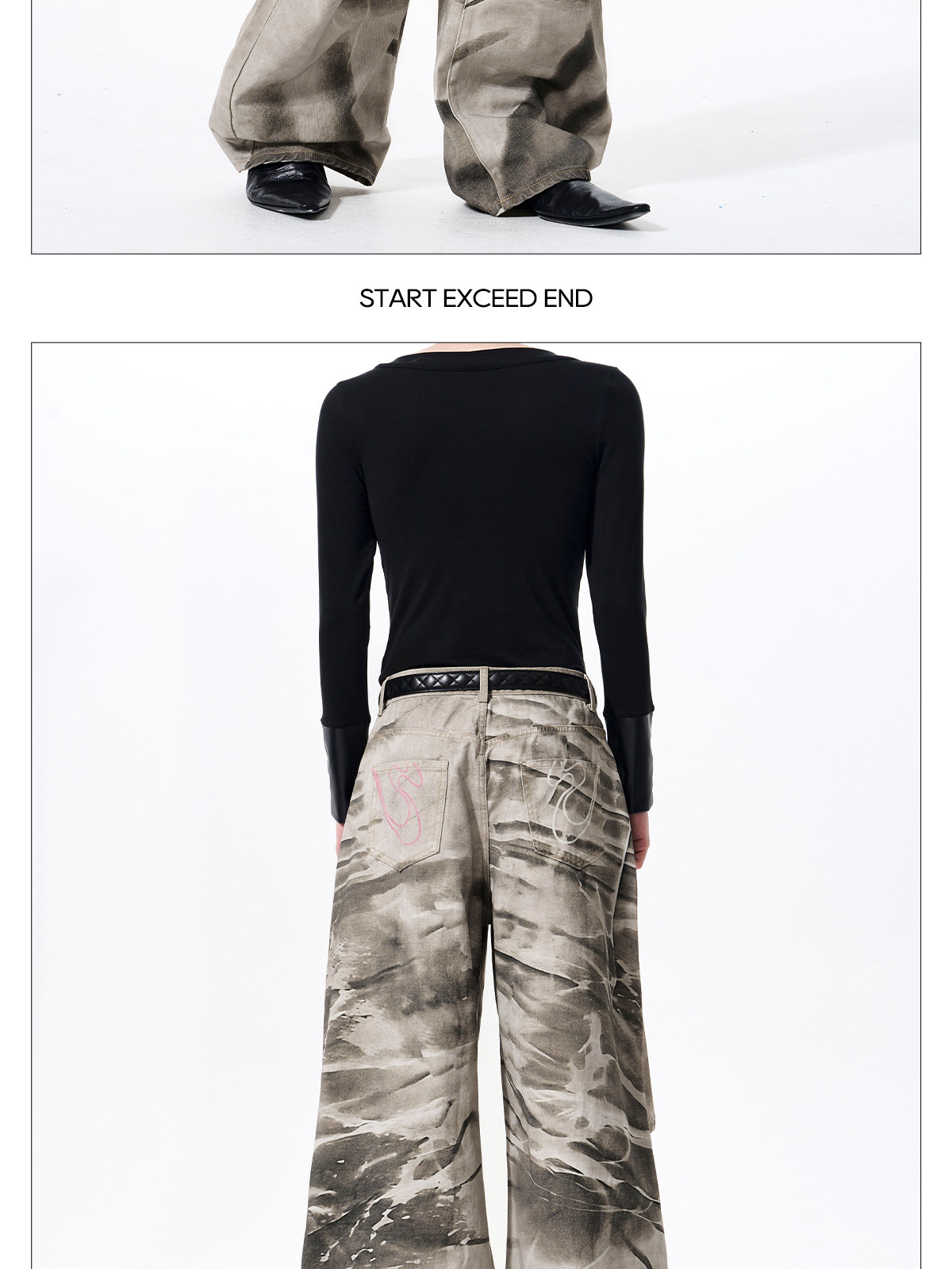 Tie-Dye Damage Wide Leg Denim Jeans WN23284