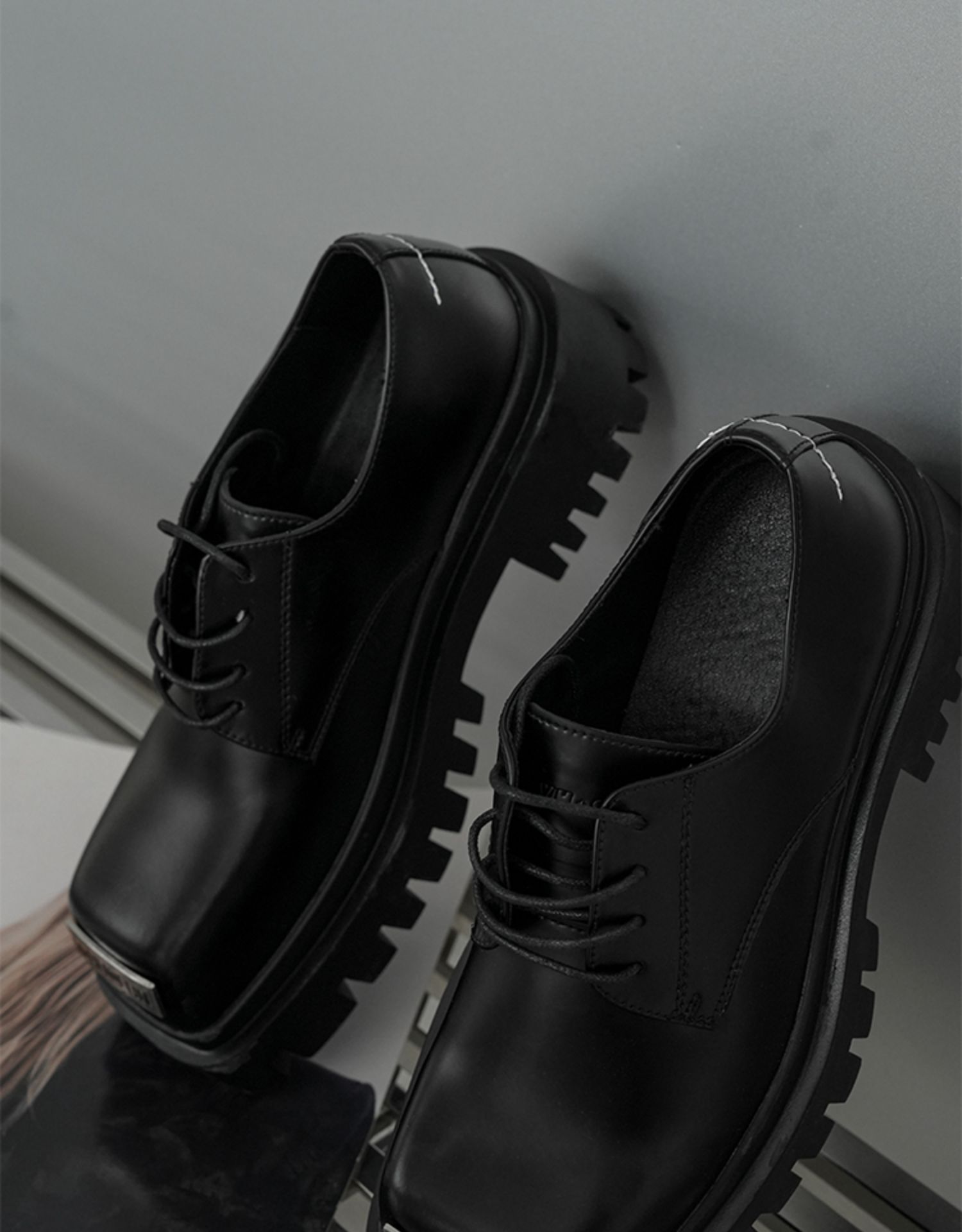 Metal Design Thick Soled Leather Shoes WN6873