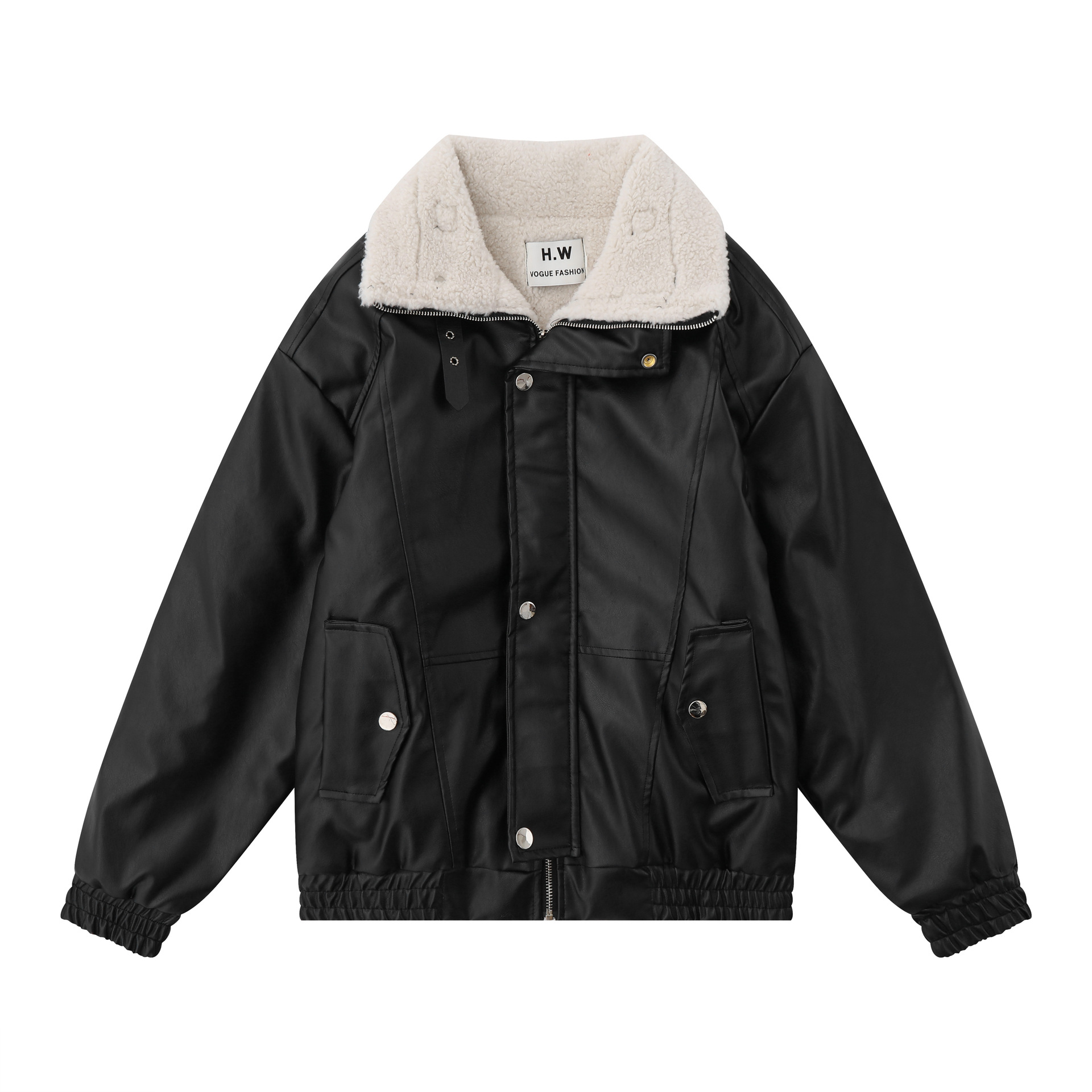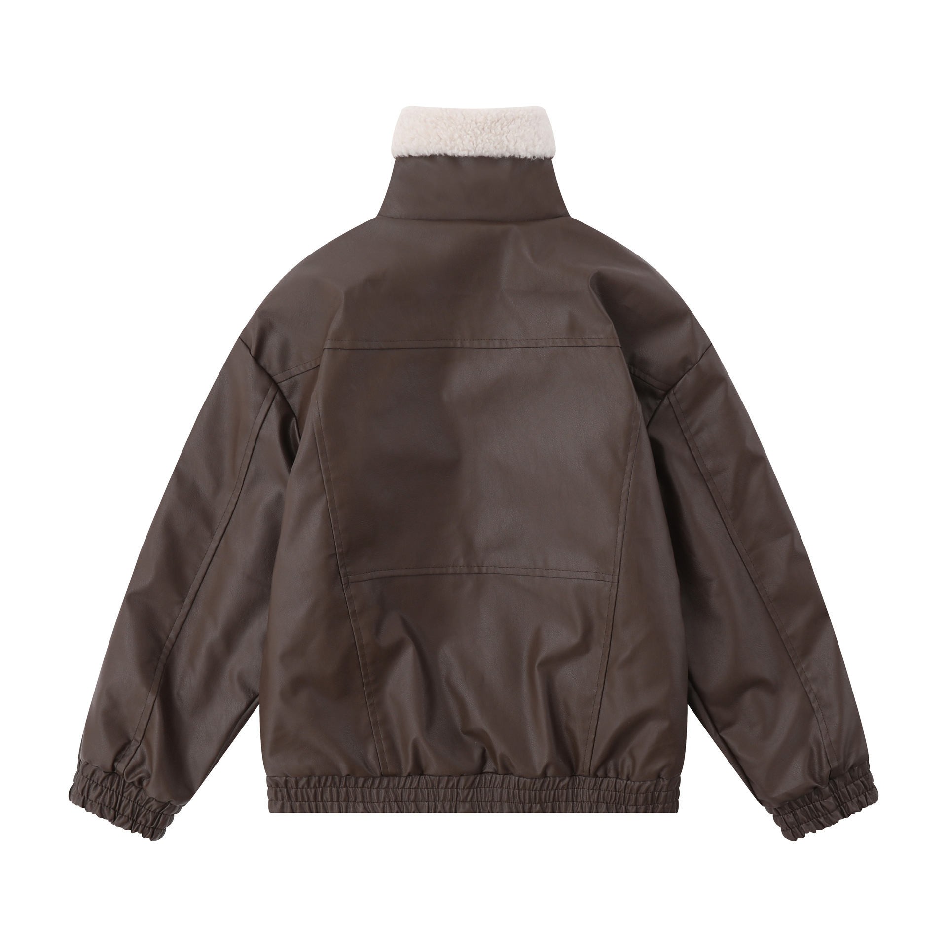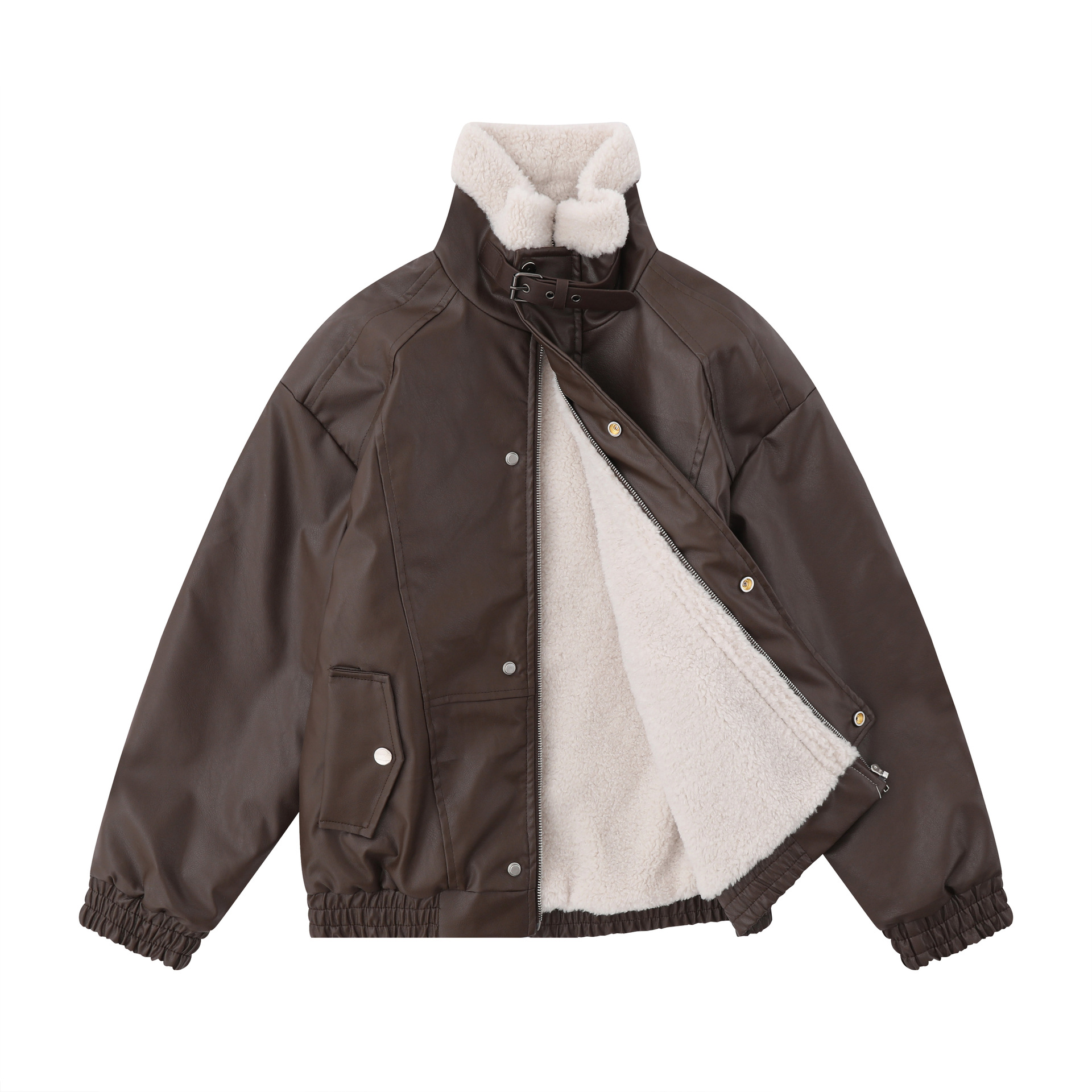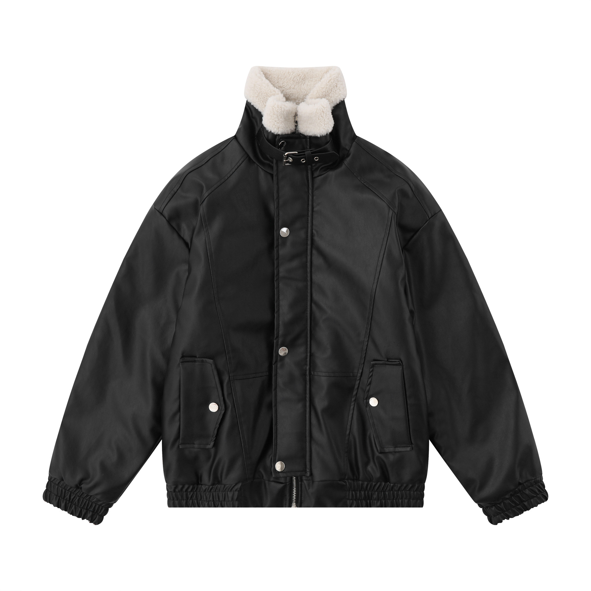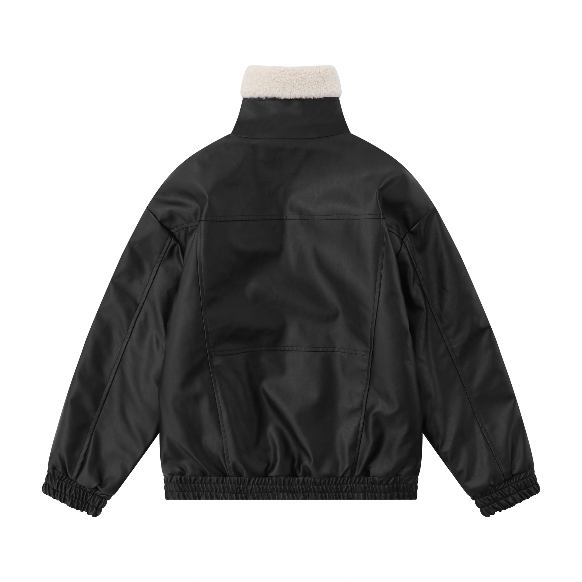 PU Leather Sherpa-Lined Oversize Jacket WN11141
