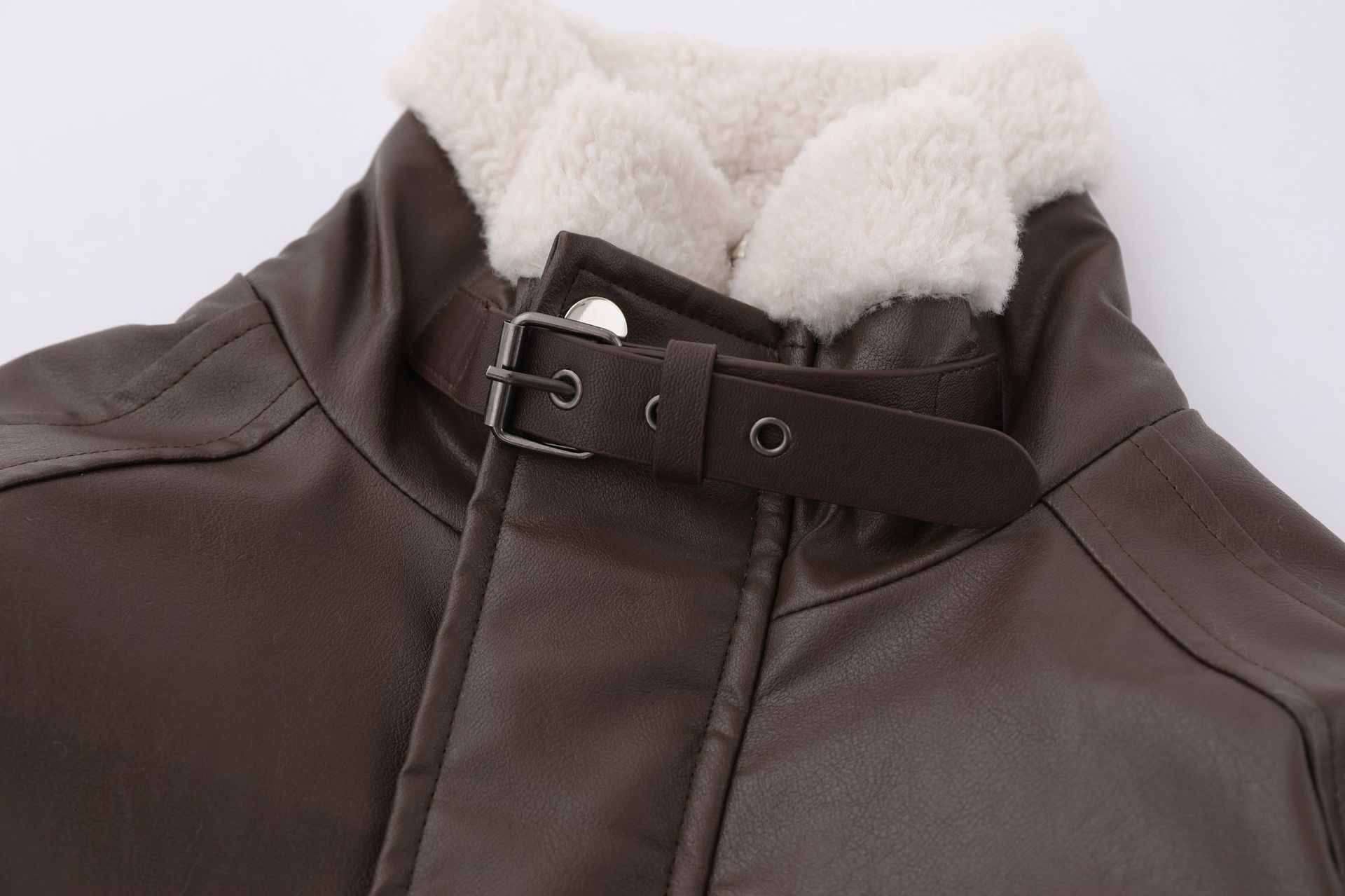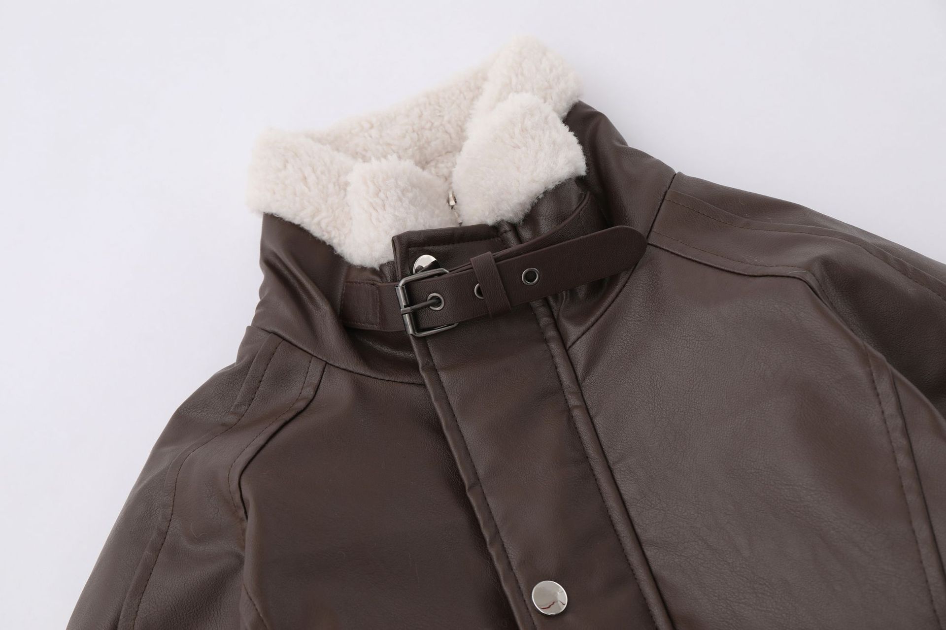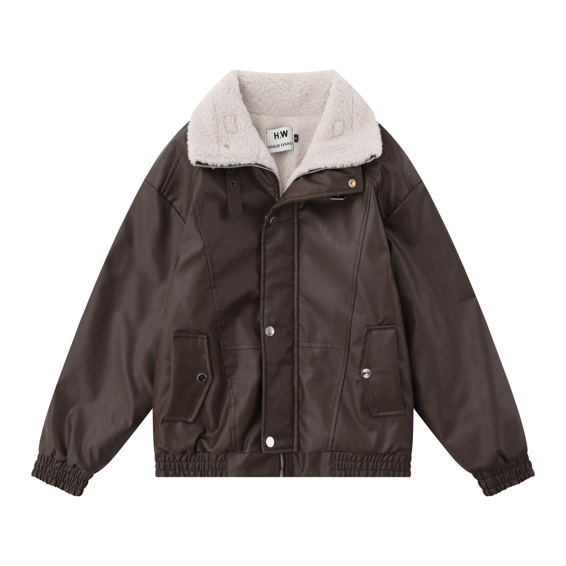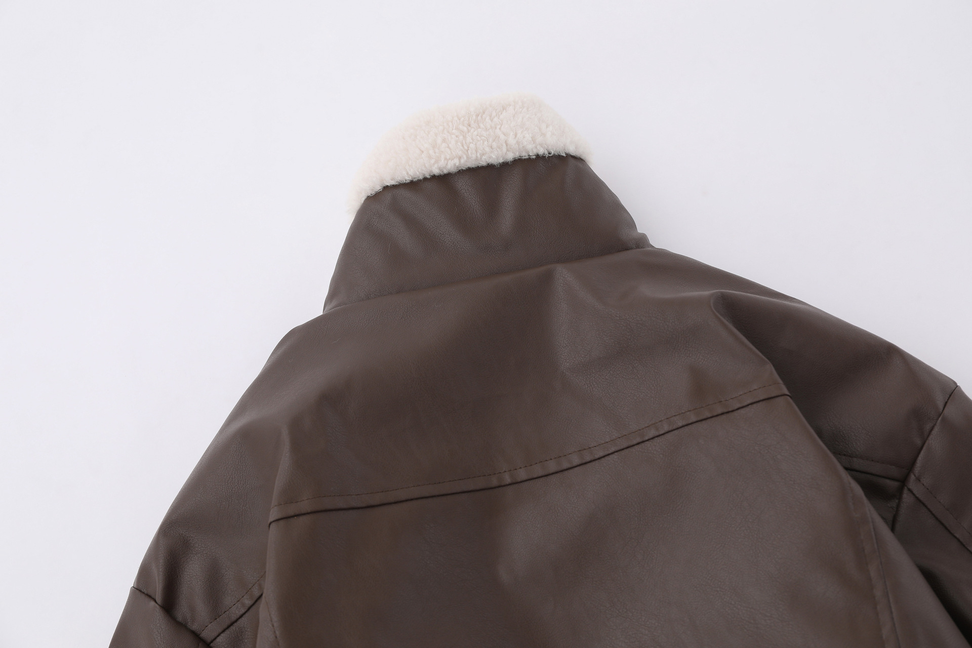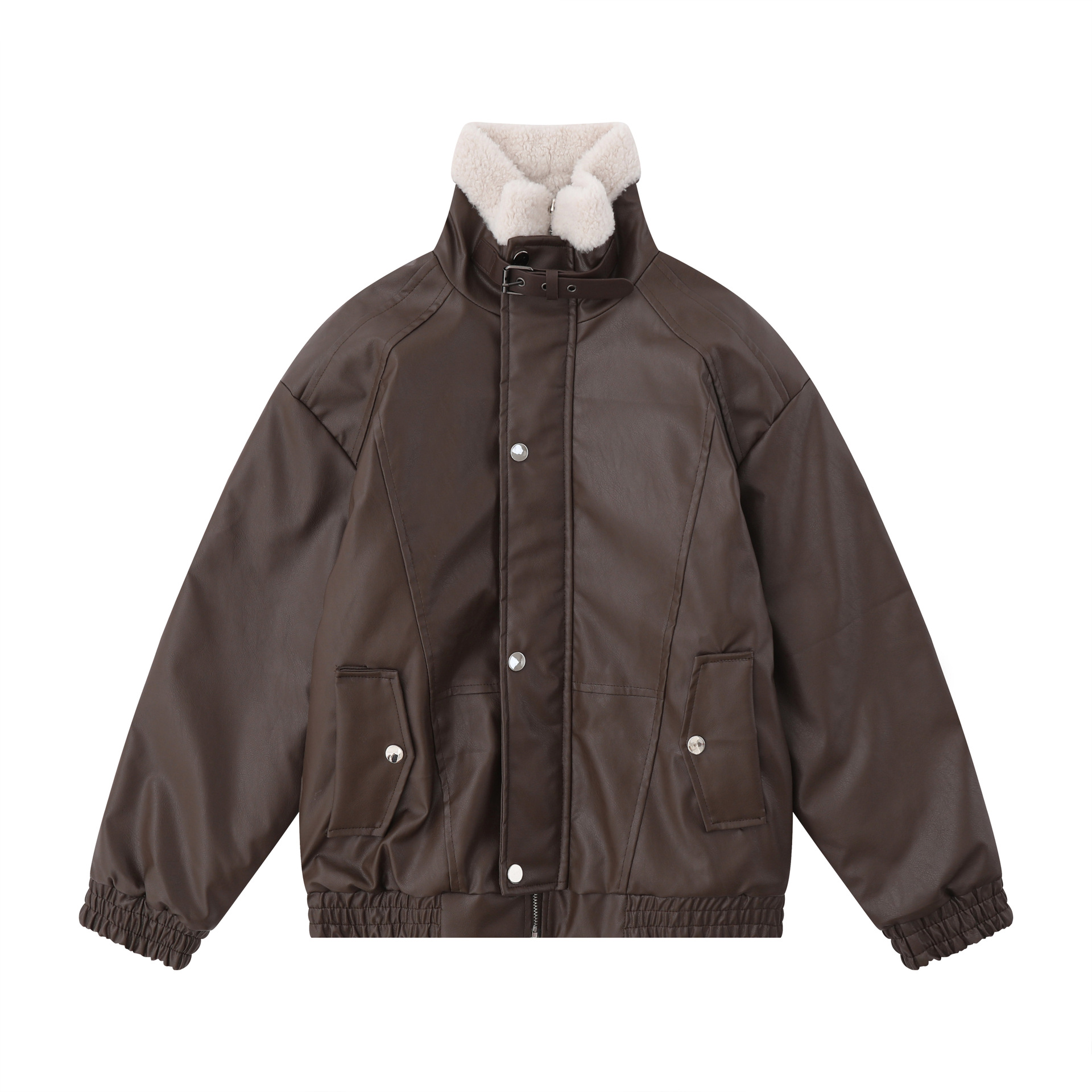 PU Leather Sherpa-Lined Oversize Jacket WN11141