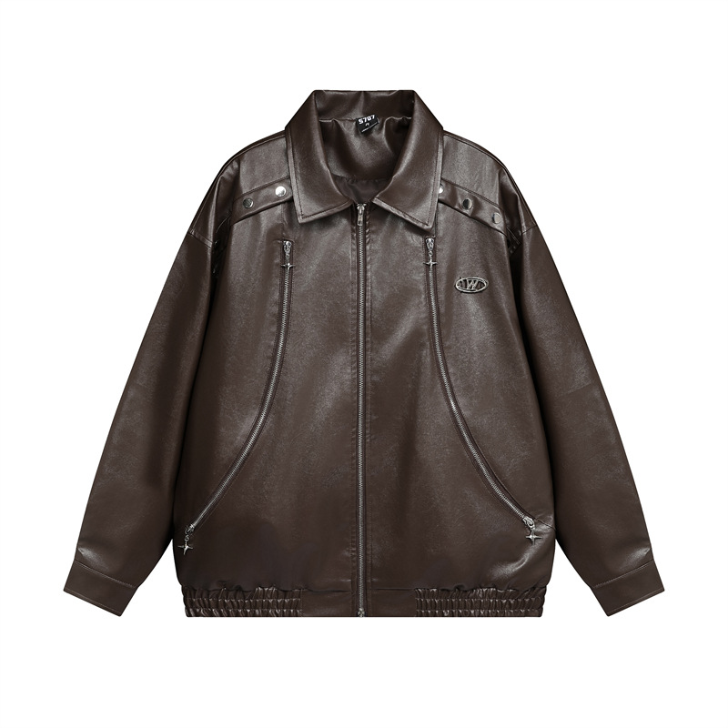 Multi-Zipper PU Leather Oversize Jacket WN11151