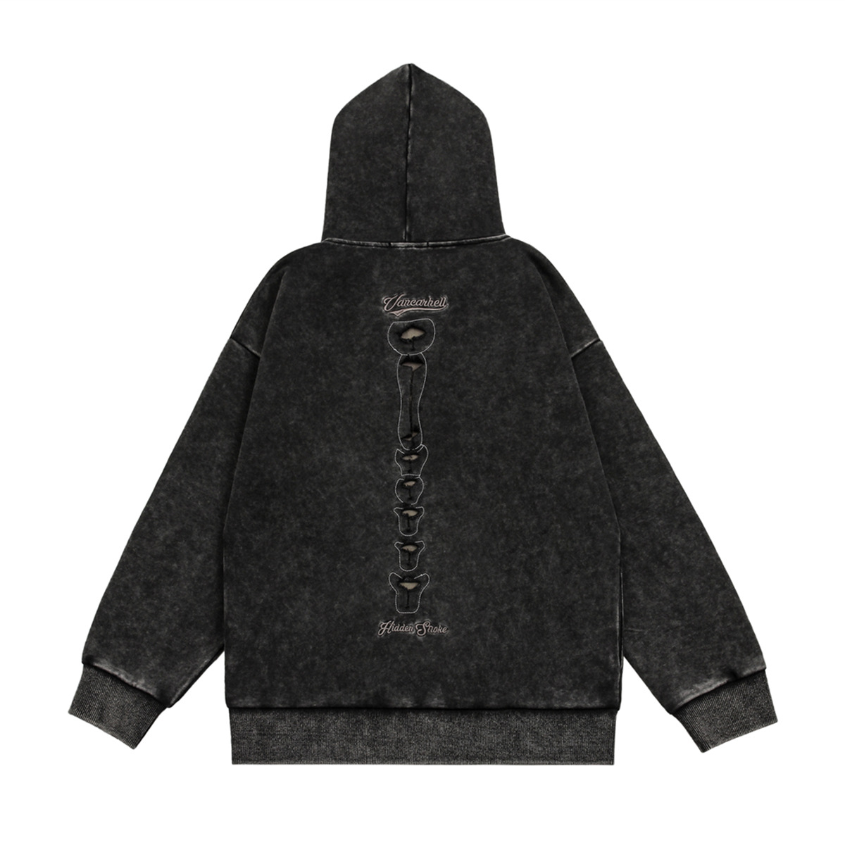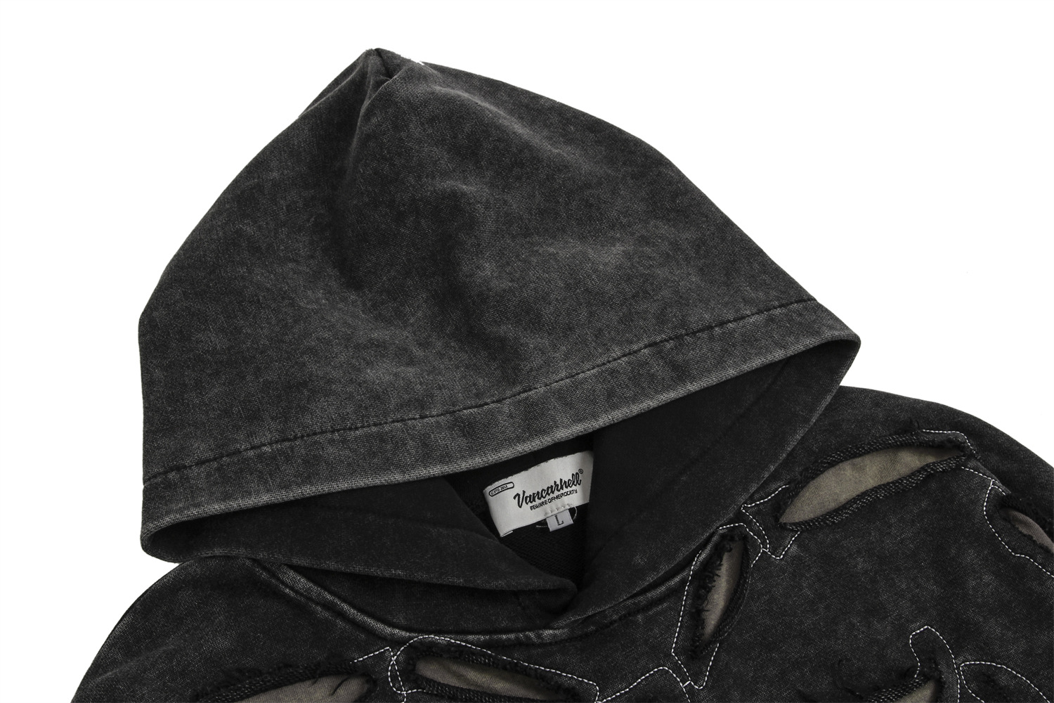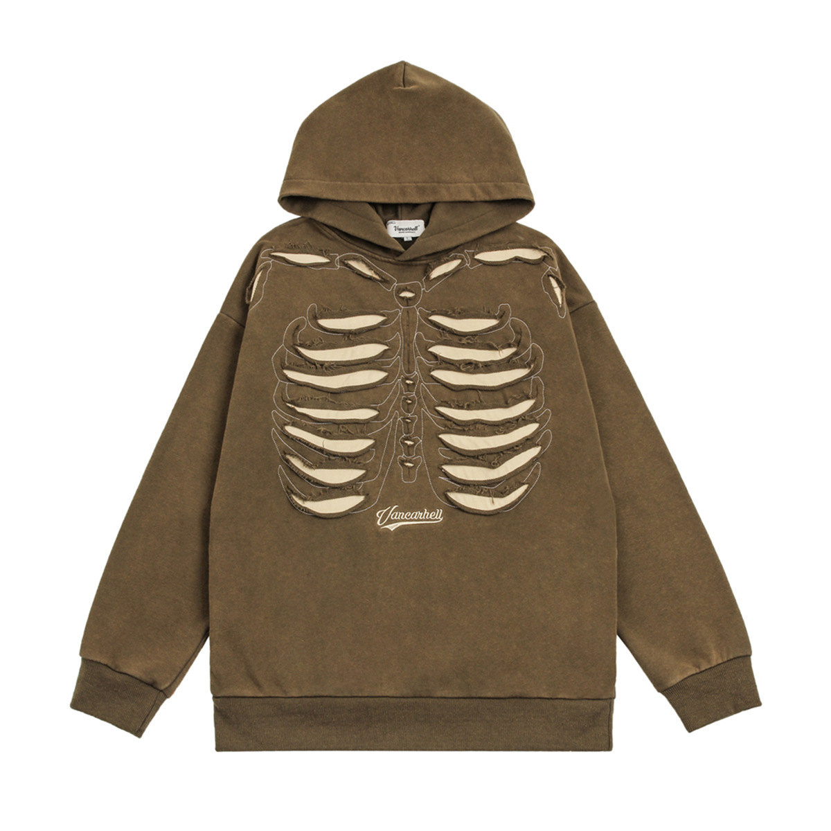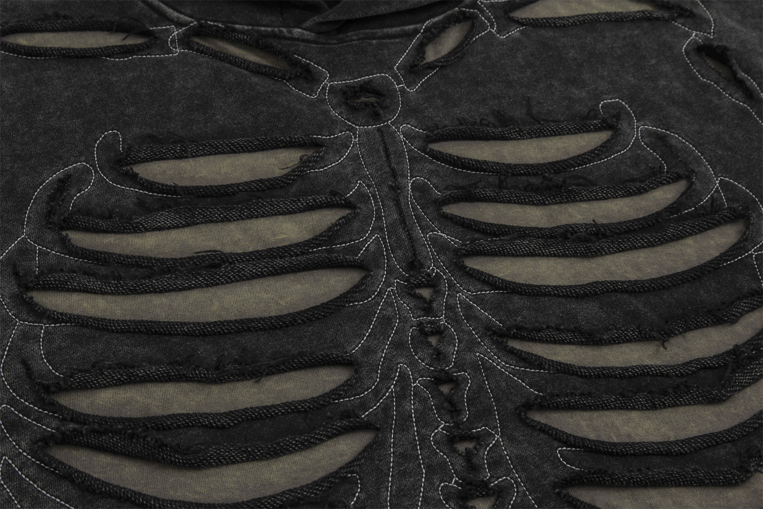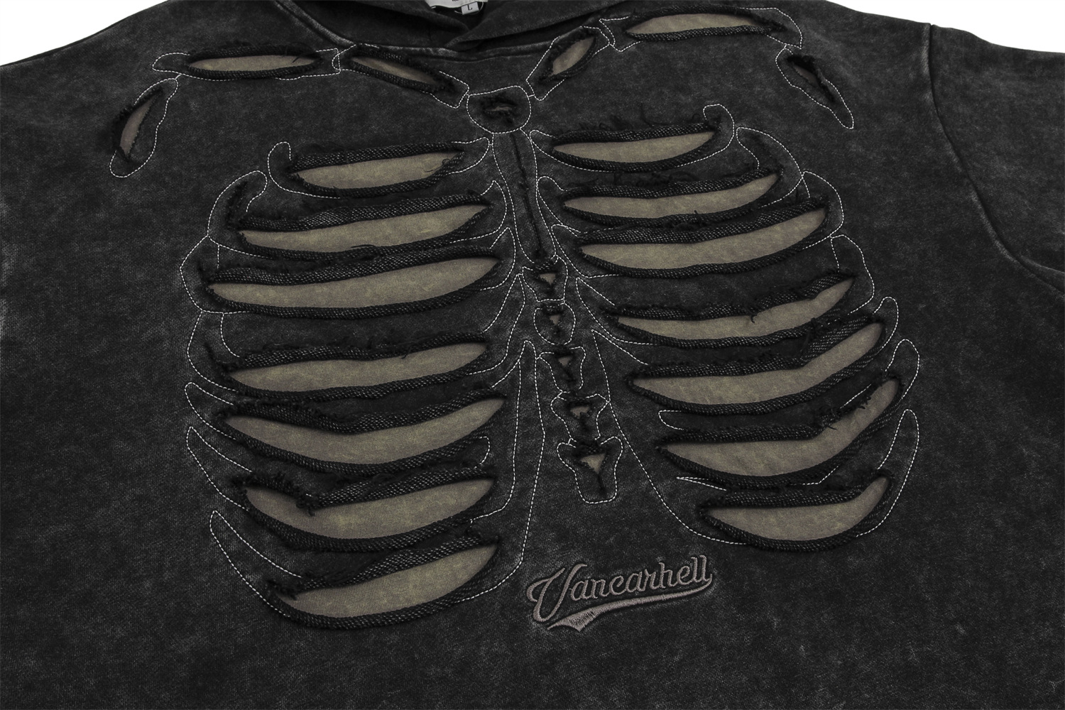Patchwork Damage Skeleton Oversize Pullover Hoodie WN11187